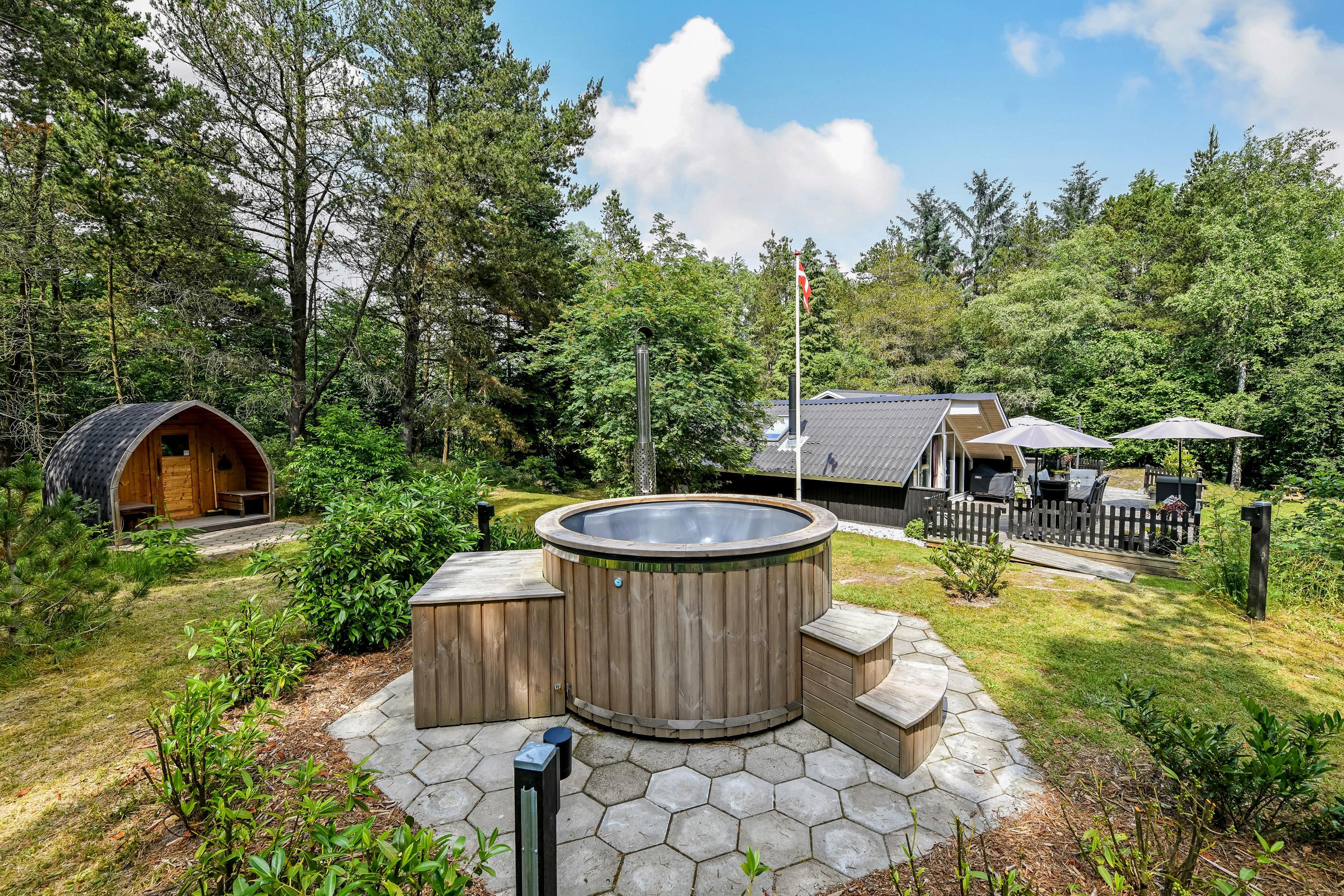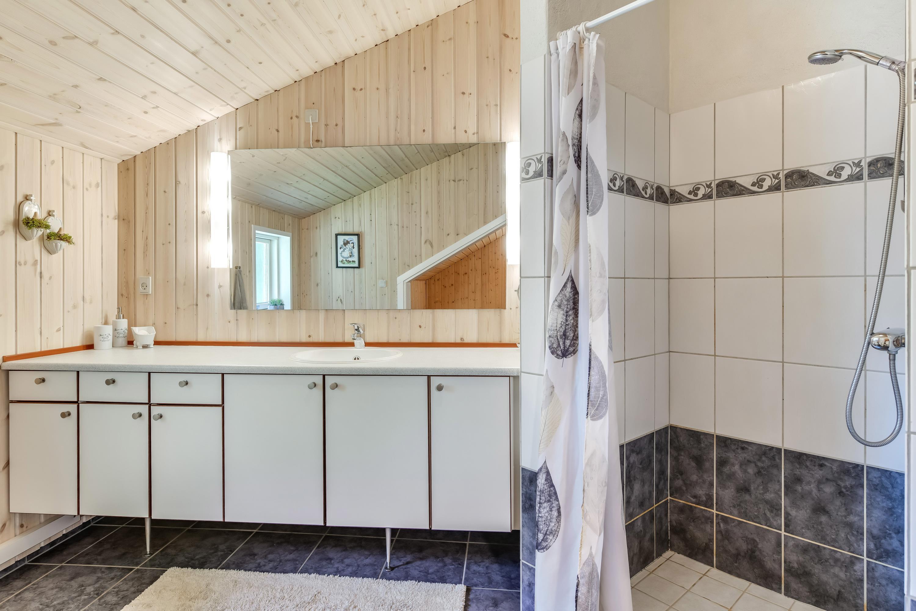 Det er ikke kun udendørs, I finder skønne faciliteter, der lægger op til en afslappende ferie – på sommerhusets badeværelse finder I nemlig et lækkert spabad, hvor I kan læne jer tilbage og slappe fuldstændig af i det varme vand og de skønne bobler.