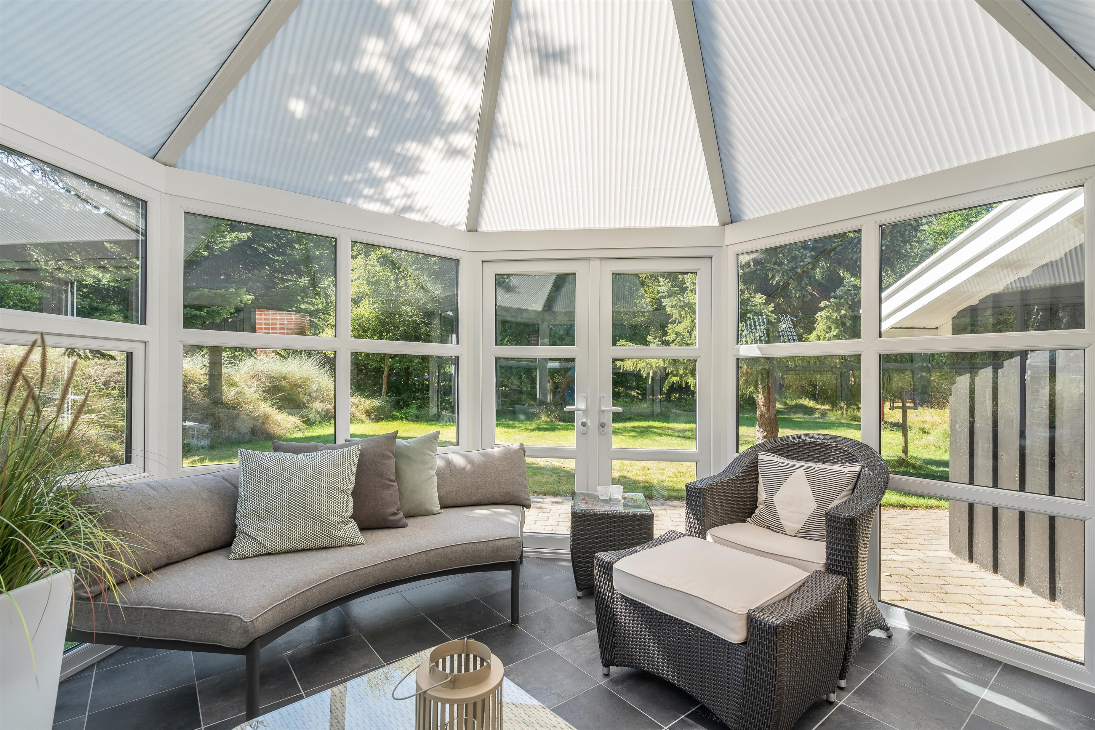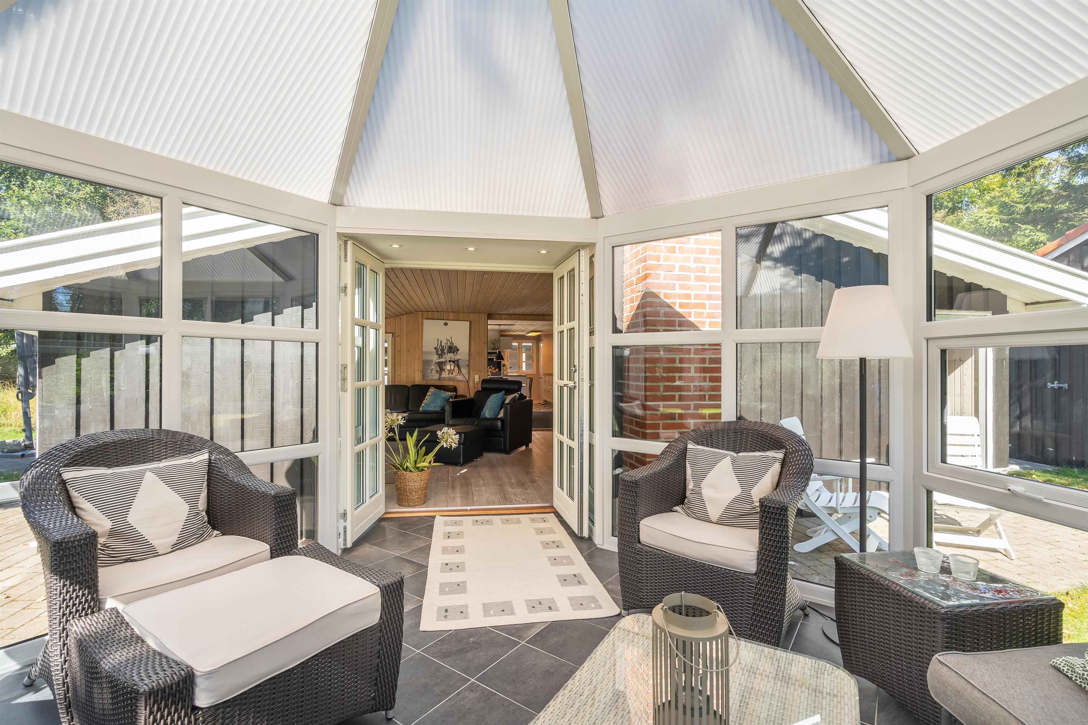 Sommerhuset byder på en ekstra overraskelse; der er nemlig lavet en udestue med udsyn til de naturskønne omgivelser. Det perfekte sted at sidde og få en varm kop kaffe på en regnfuld dag!