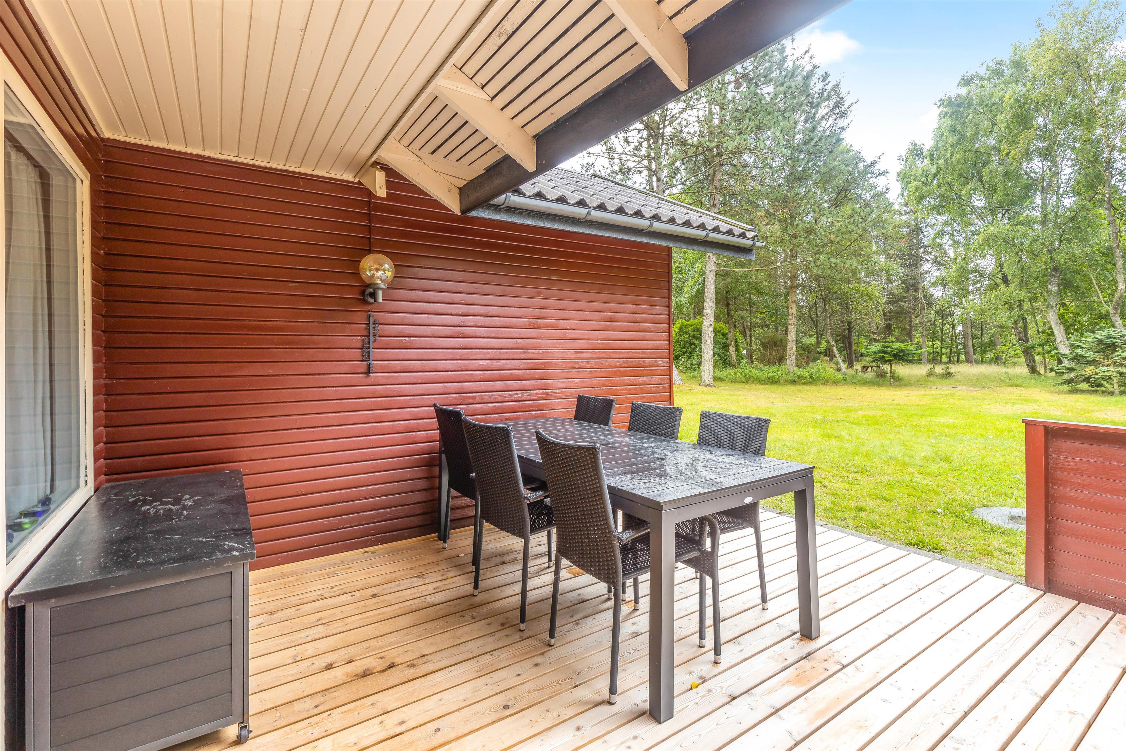 På solrige dage kan I rykke ud på terrassen og nyde roen og den grønne natur - måske med en god bog og lidt koldt at drikke? De høje træer skærmer hele grunden af og gør dagene rolige og ugenerede med fuglenes sang i trætoppene som den eneste baggrundsstøj. På de lune sommeraftener er det desuden oplagt at tænde op i grillen og slippe den indre feriekok løs!