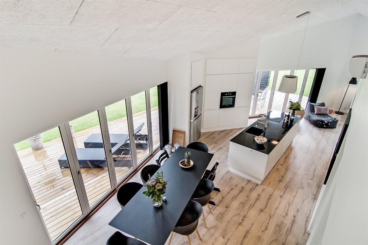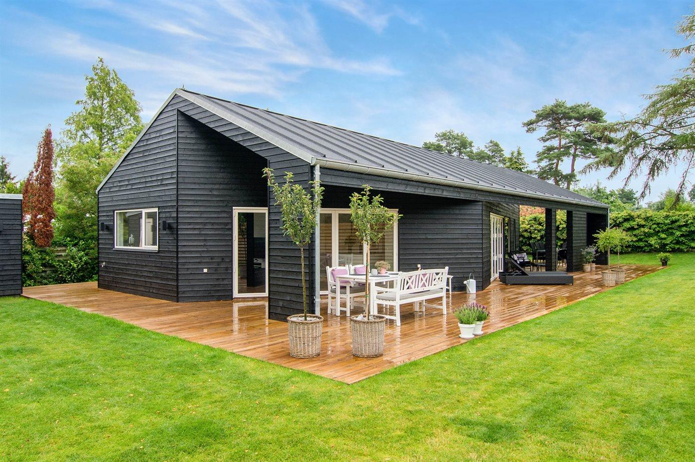 Moderne sommerhus i Hornbæk med energivenlige løsninger og stor terrasse nær havet.