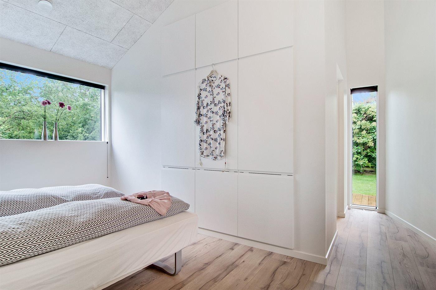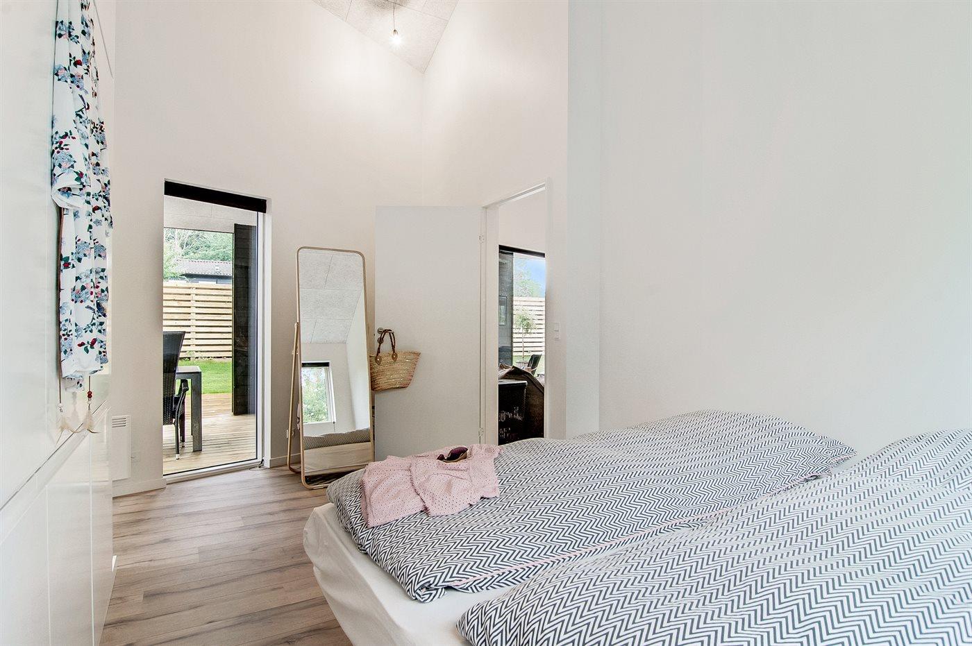Der er i alt 3 soveværelser. Sovepladserne fordeler sig på: 4 sovepladser i dobbeltsenge. 2 sovepladser i køjeseng. 2 sovepladser på madrasser. 2 af disse sovepladser befinder sig på husets hems.