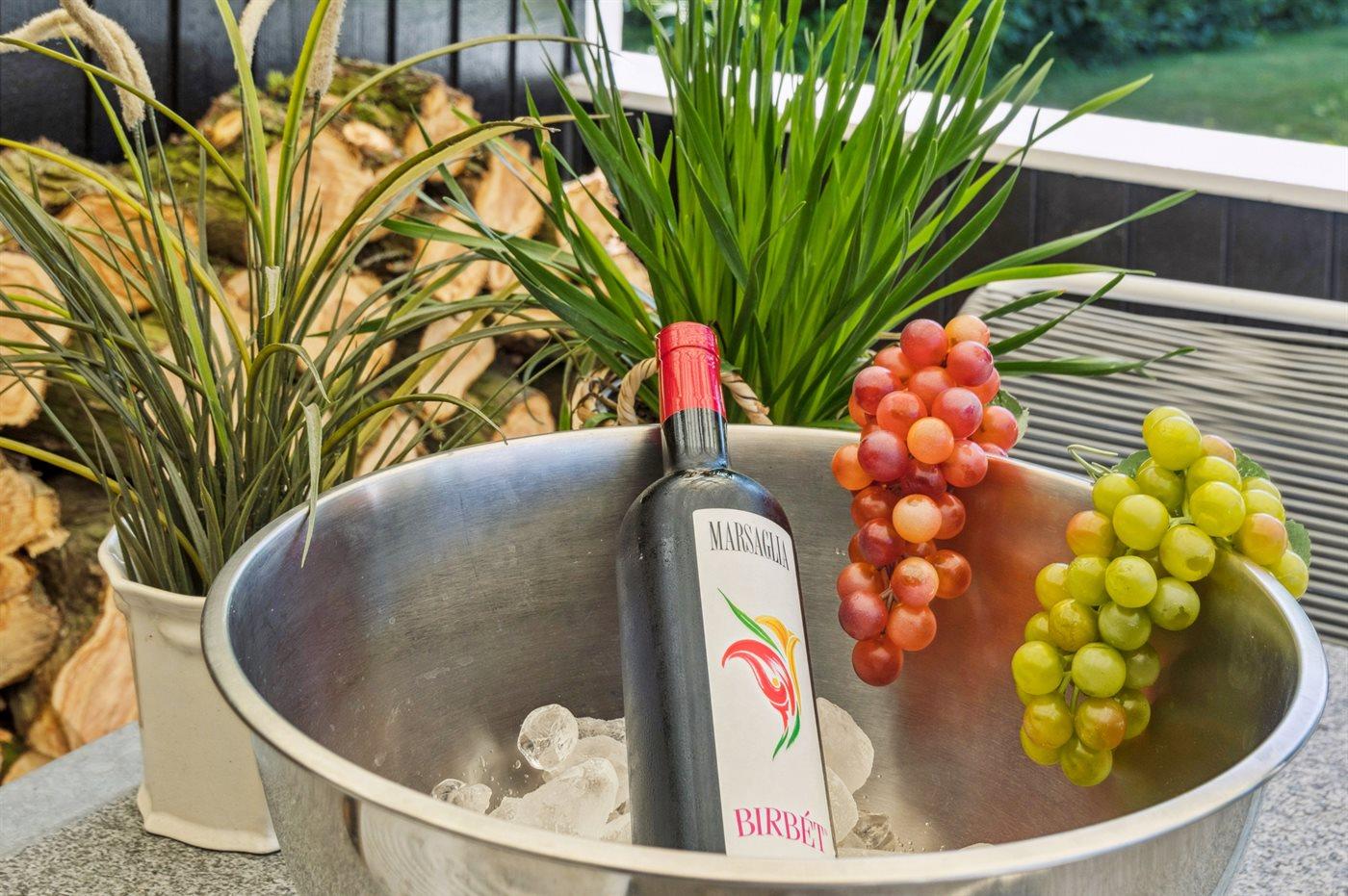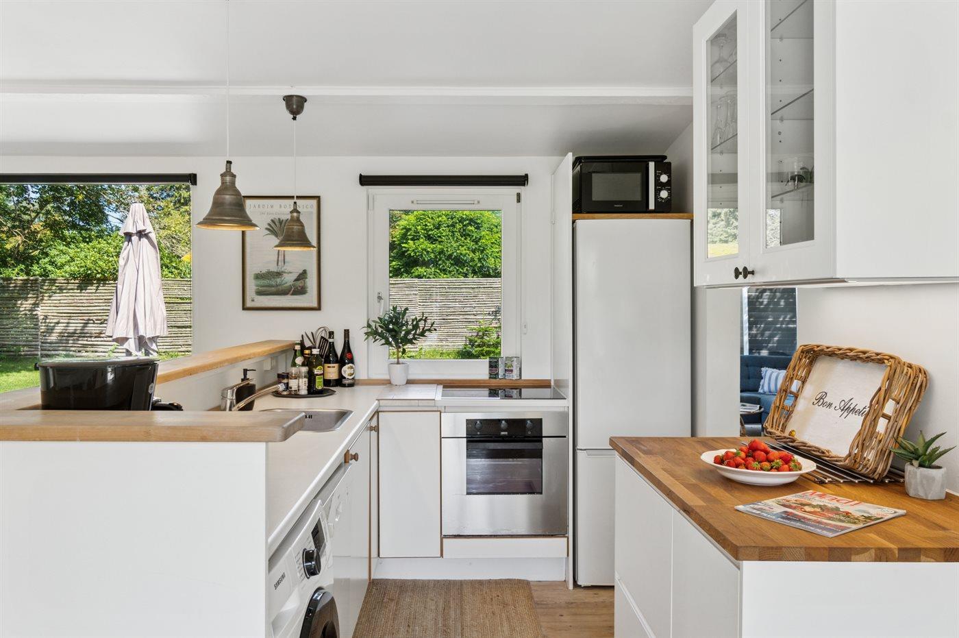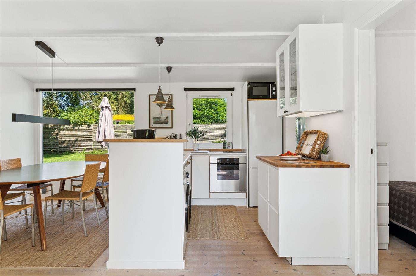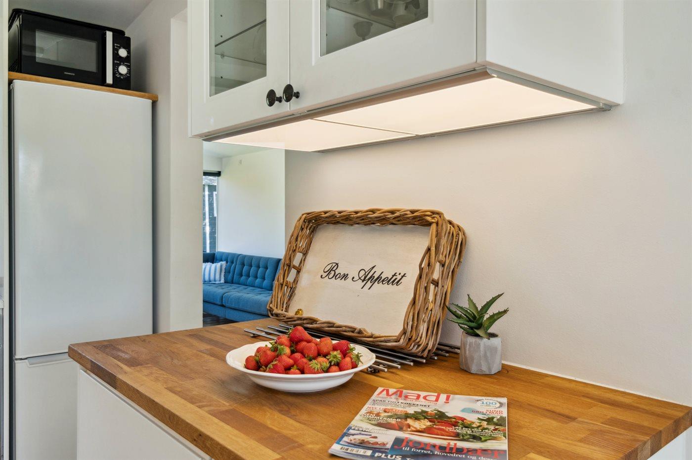 Køkkenet er udstyret med 1 køleskab. Der er 4 induktionskogeplader, varmluftovn, mikrobølgeovn samt opvaskemaskine.
