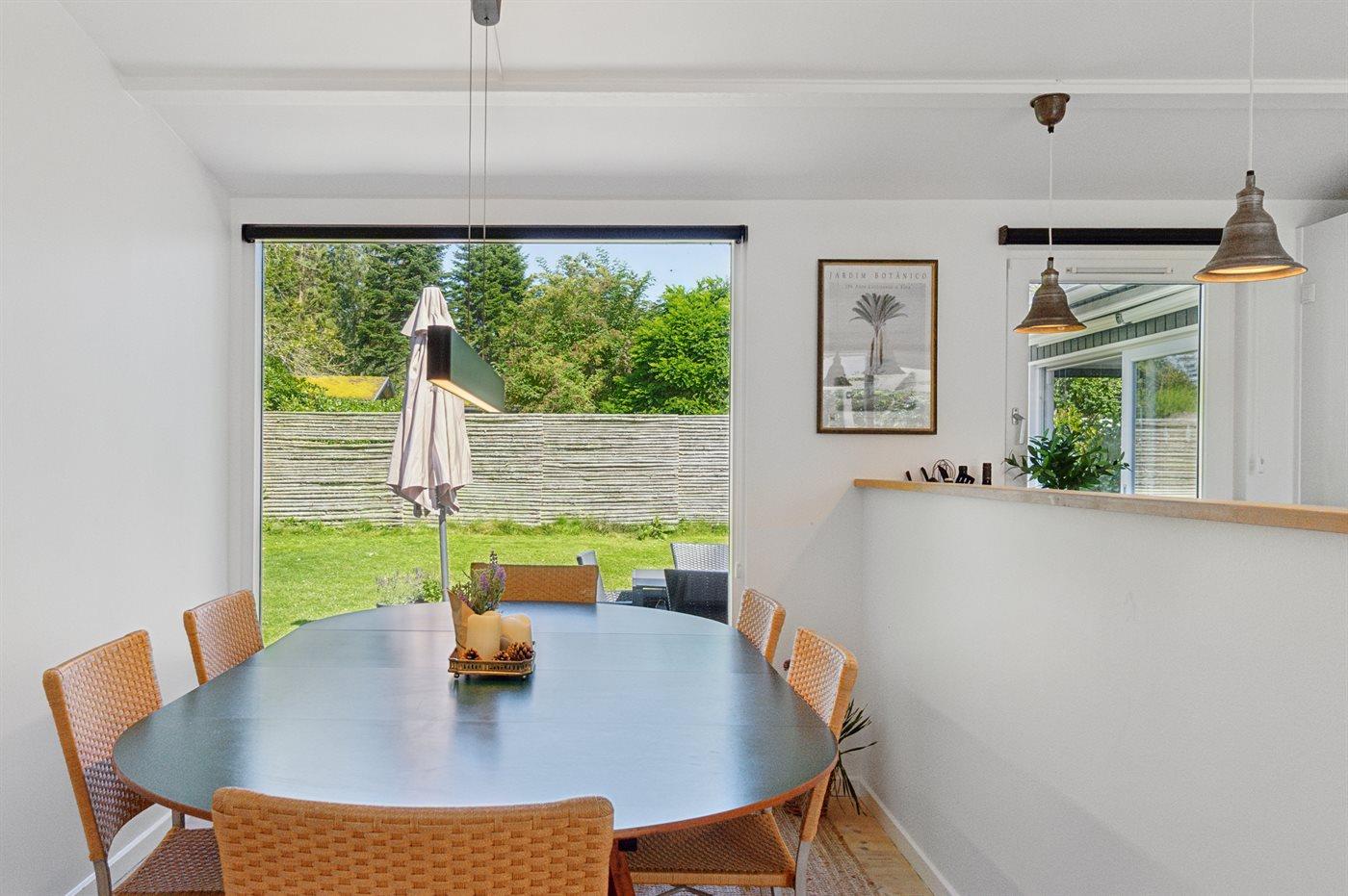 Indretningen byder på et åbent køkken-alrum i forbindelse med stuen, flere soveværelser samt badeværelse. Der er direkte udgang til en stor terrasse med gode solforhold – ideel til udendørs spisning og afslapning. Den ugenert beliggende have giver mulighed for både leg og ro.