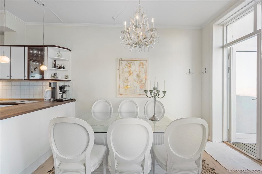 Lejligheden har to dejlige terrasser, hvoraf den ene vender ud mod vandet, perfekt til måltider under åben himmel. Den lukkede terrasse har udsigt til et grønt område, og kun 20 meter væk finder du den skønne sandstrand. Her kan du høre bølgernes beroligende brusen, mens du nyder din morgenkaffe eller en stille aftensmad i det fri.