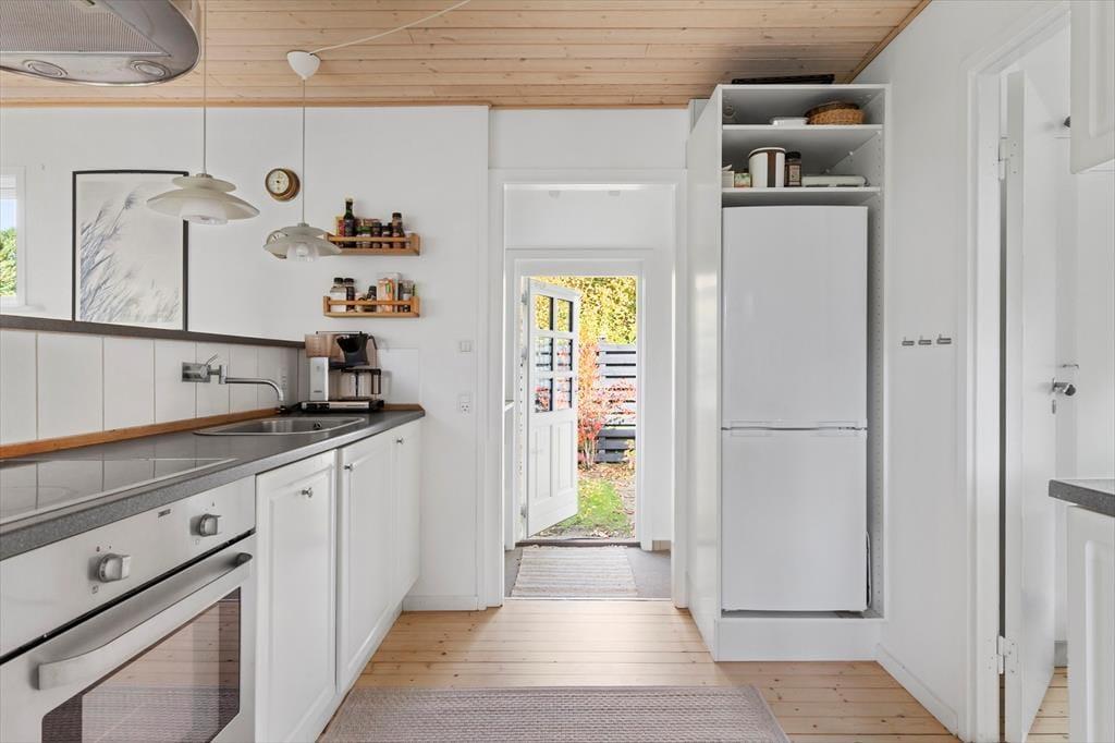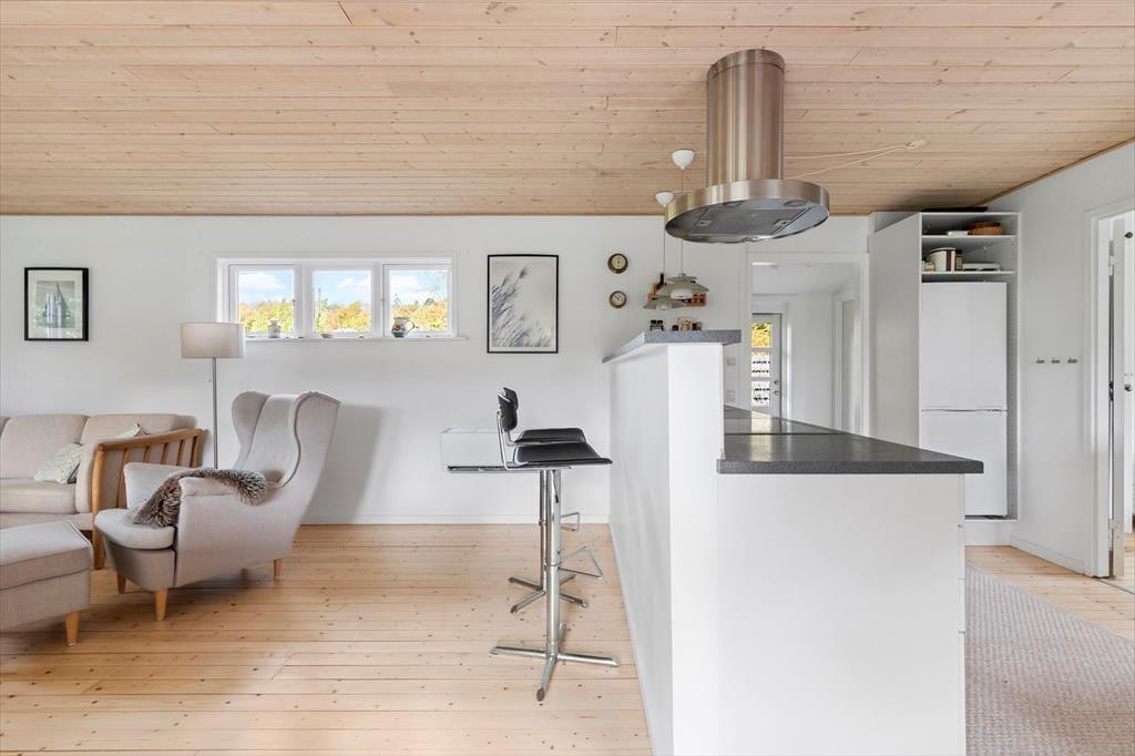 Indenfor mødes I af en afslappet stemning, der indbyder til ro og samvær. Huset er renoveret med sans for detaljen og fremstår lyst og indbydende med et moderne køkken i åben forbindelse med stuen. Her kan I lave mad sammen, spille spil ved spisebordet eller slappe af med en film efter en dag ved stranden. De to gode værelser og det hyggelige anneks giver jer god plads og fleksibilitet – perfekt, når de store børn eller bedsteforældrene er med på ferie.