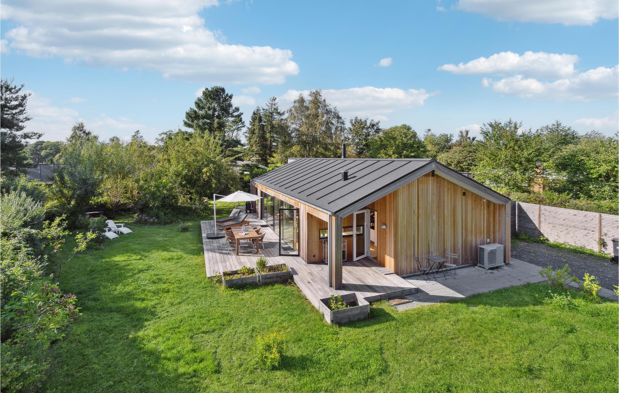 Moderne feriehus i Hornbæk med cedertræsfacade, stor have og kort afstand til strand og hyggelige aktiviteter.