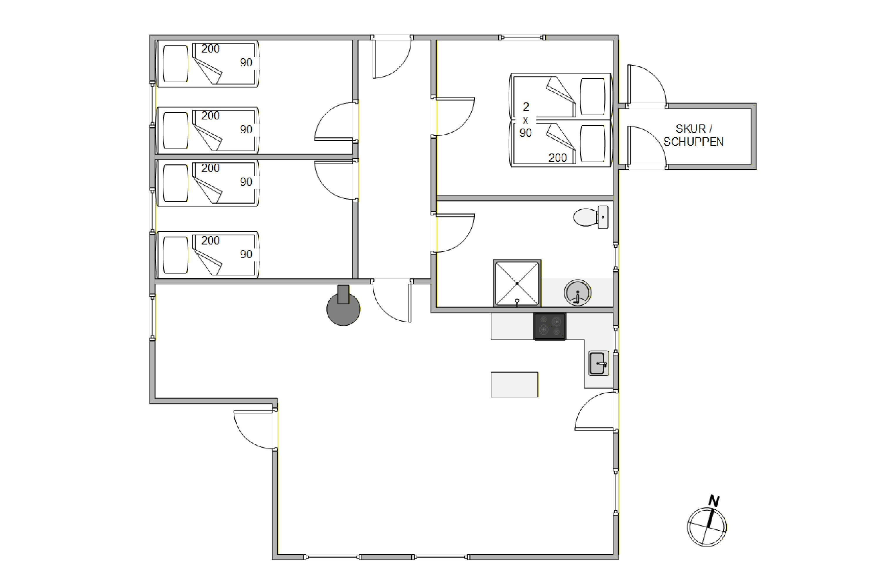 De lyse omgivelser får rummene til at virke endnu større og mere indbydende, og det åbne køkken er perfekt, når der sammen skal tilberedes lækre feriemåltider. Opvaskemaskinen sørger for, at I har så lidt huslige pligter som muligt, og i stedet kan nyde fridagene fuldt ud.