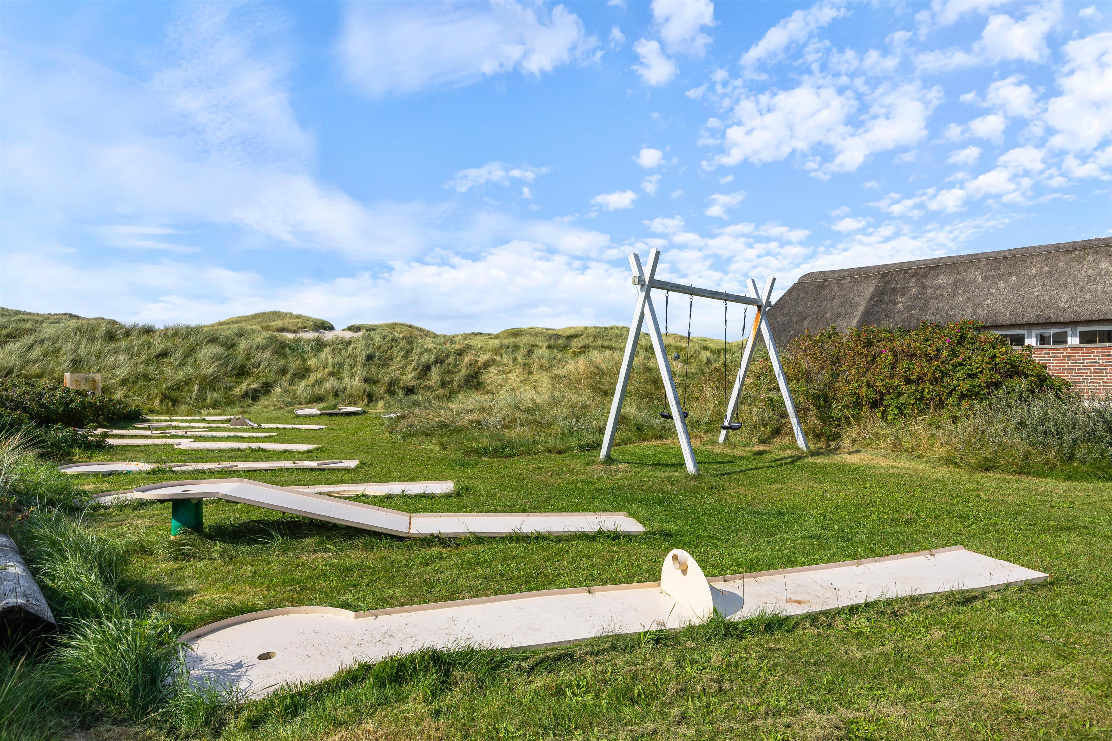 Ved dette sommerhus får I den helt unikke mulighed for at bo i første klitrække i et dejligt poolhus, på en meget stor og kuperet klitgrund tæt på Vesterhavet. Børn, barnlige sjæle og hunde vil sikkert ikke kunne få nok af de dejlige udearealer, som sommerhuset også byder på. Som noget helt særligt, så kan sommerhuset byde på dets egen minigolf bane og en petanquebane, så der er mulighed for mange timers sjov og udendørs leg.