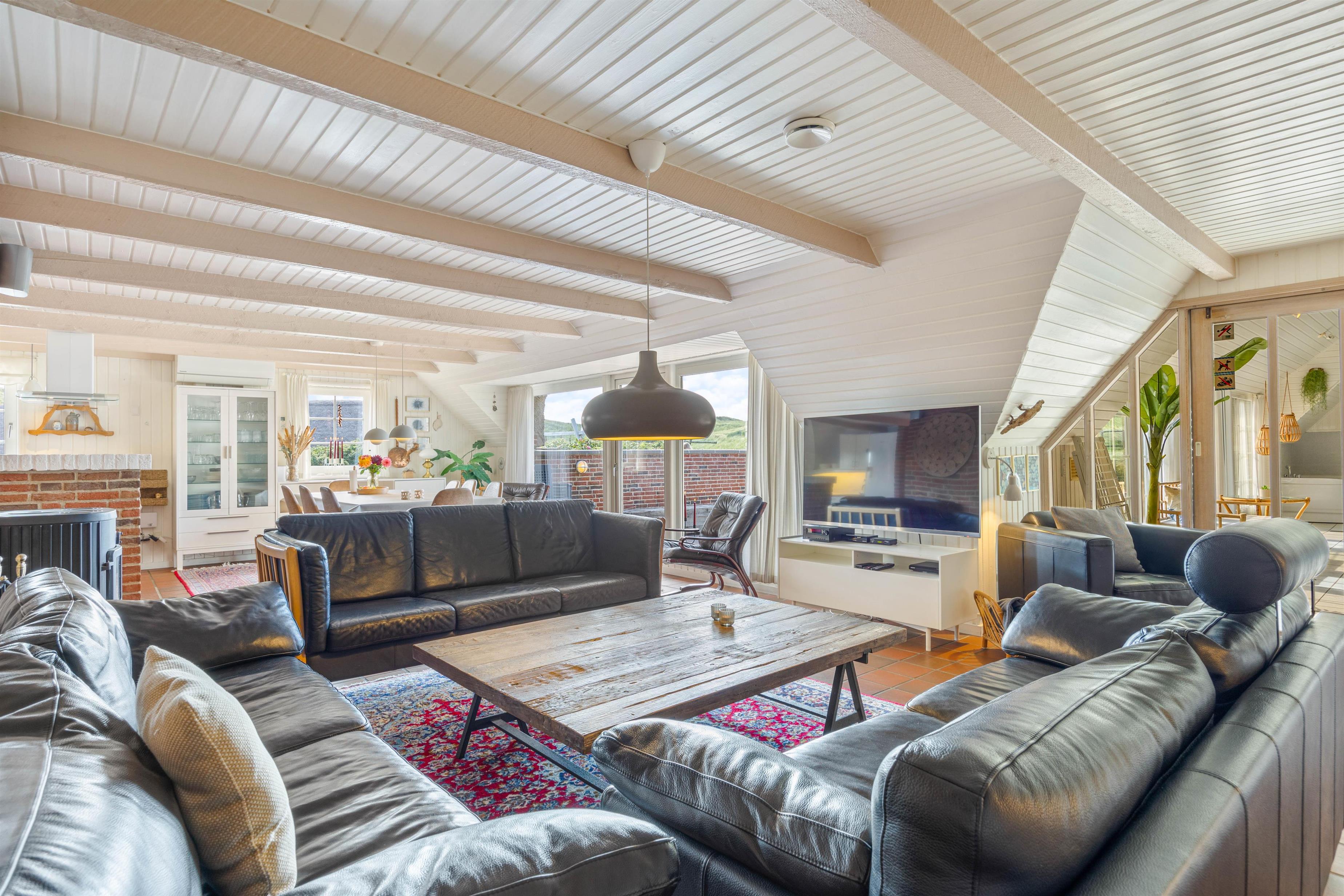 Sommerhuset har 5 værelser, hvoraf de 4 af dem er med dobbeltsenge, og det sidste er med 2 enkelsenge. De mange kvadratmeter og gode værelser sikrer, at alle kan have deres safespace og trække sig tilbage og bare slappe af. Sommerhusets opholdsrum er dejlig stort, og der er i den grad skruet op for hyggen. Her er der god plads til, at alle kan få en plads i de behagelige sofaer, og det er oplagt at spille jeres medbragte brætspil her ved sofamøblementet. Det store fladskærms-tv giver jer endvidere mulighed for at hygge jer med en god film eller serie.