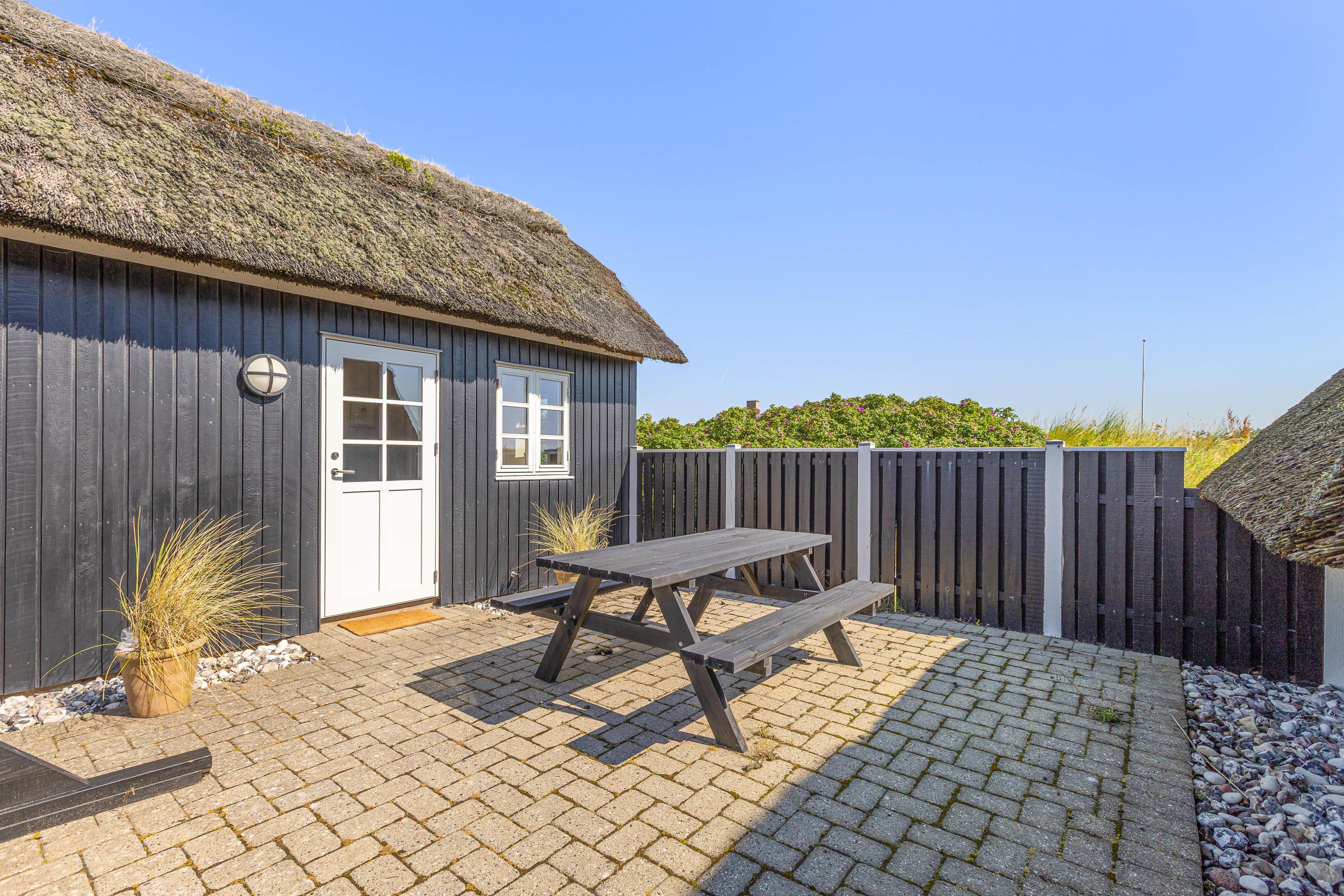På terrassen er der også både grill og havemøbler. Måske kan I endda høre havets brusen i baggrunden mens I griller, da feriehuset kun ligger 200 meter fra stranden.