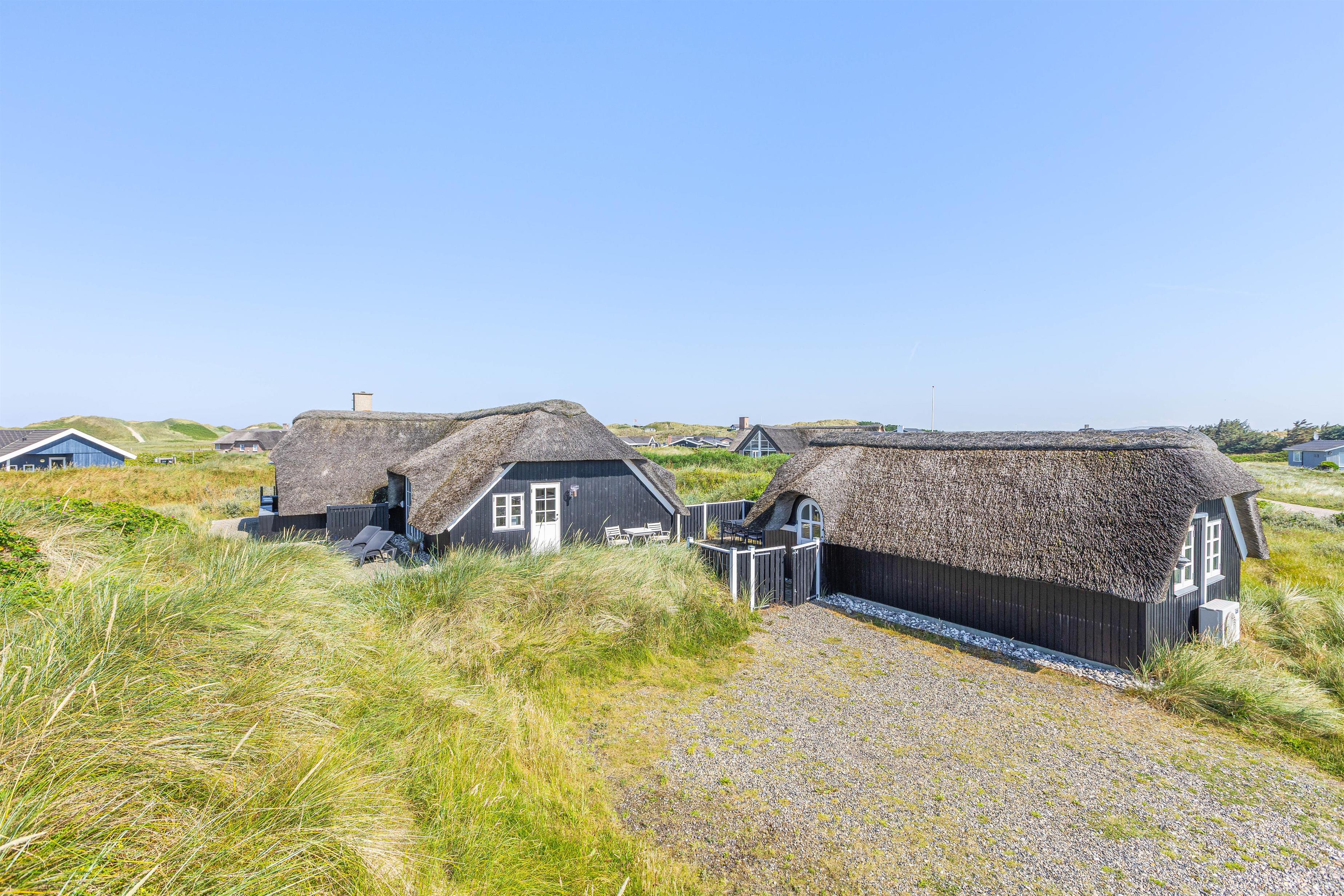 De åbne, delvist overdækkede terrasser med udsigt over klitterne giver masser af plads til, at man kan følge solen rundt om sommerhuset. Derudover er terrasserne også afskærmede, så man kan sidde og nyde sin morgenkaffe i fred og ro.