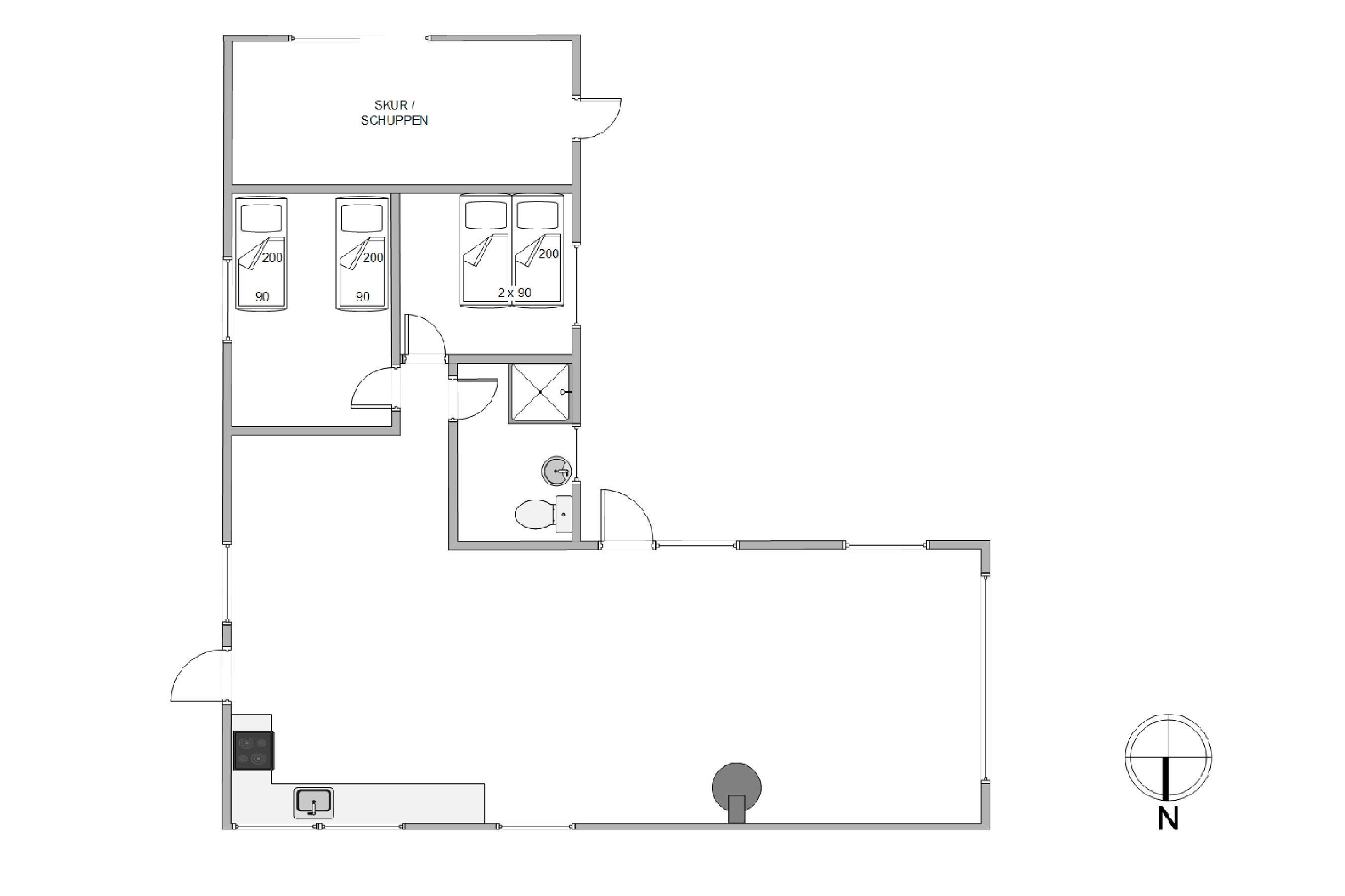 Sommerhuset har 2 gode soveværelser, hvor det ene er med en dobbeltseng og det andet med 2 enkeltsenge. For at skabe et godt indeklima hele året rundt, er der også installeret en luft til luft varmepumpe