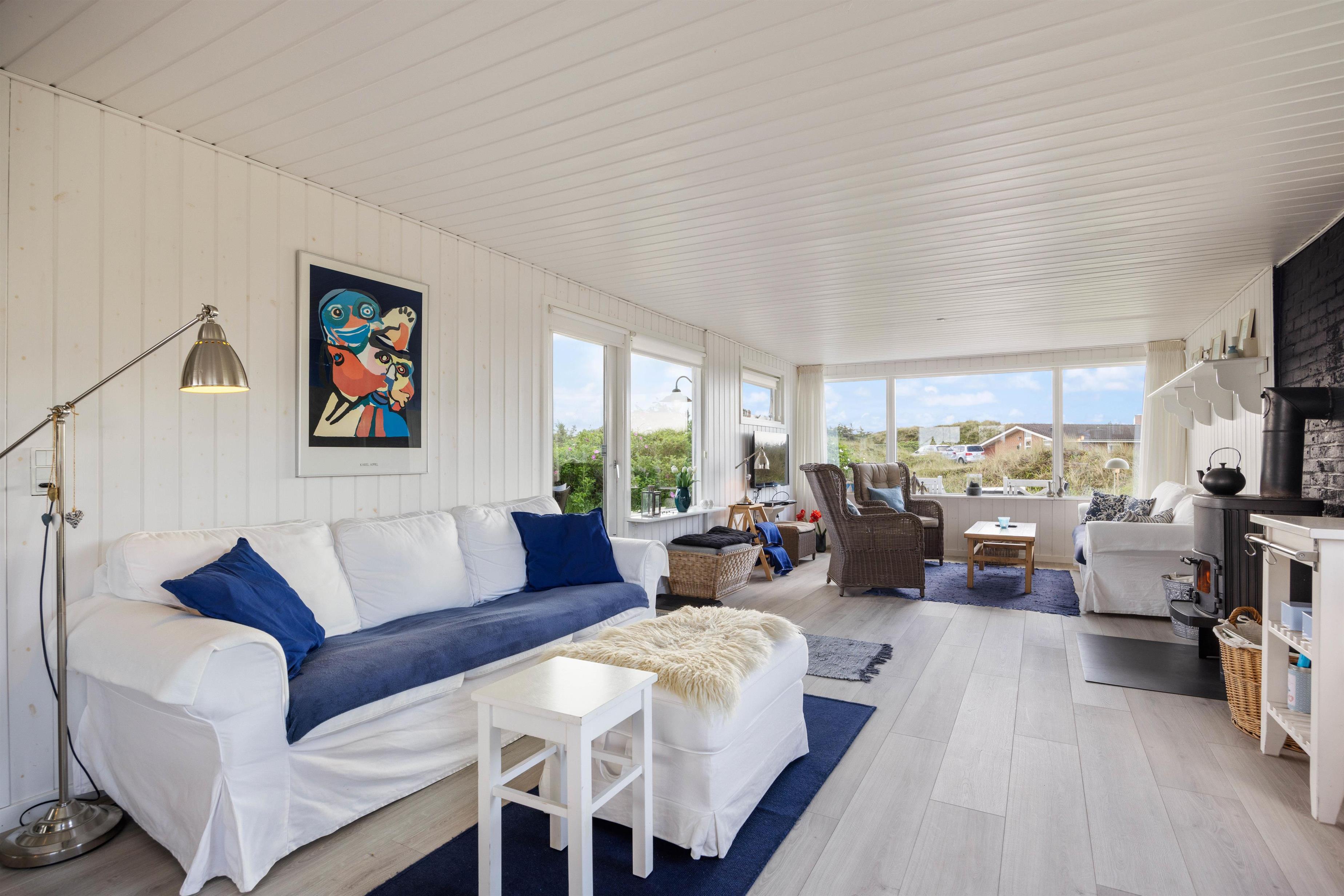 Lys indretning, dejlig klitgrund og gode hyggekroge alt sammen på Sortebærdalen 21