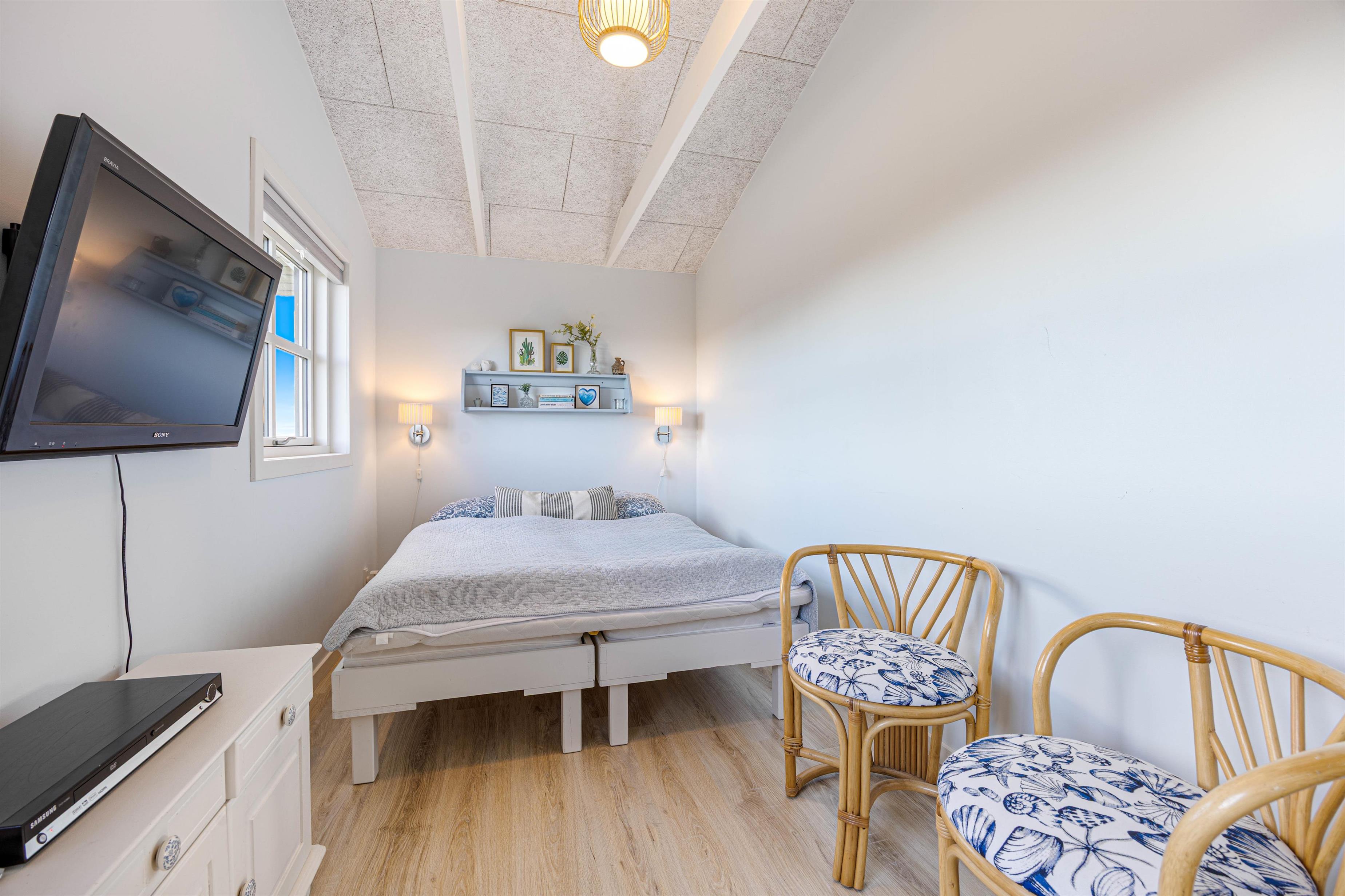 Dette flotte sommerhus rummer plads til 8 gæster og er i den grad indrettet med kærlighed og sans for detaljen. Ud over et indbydende indre får I her et lækkert udendørsareal med flere terrasser, gode havemøbler og ikke mindst jeres helt egen saunahytte. Stranden ligger kun 350 meter væk, og få minutters kørsel bringer jer ind til Søndervigs hyggelige centrum. Hund er tilladt.