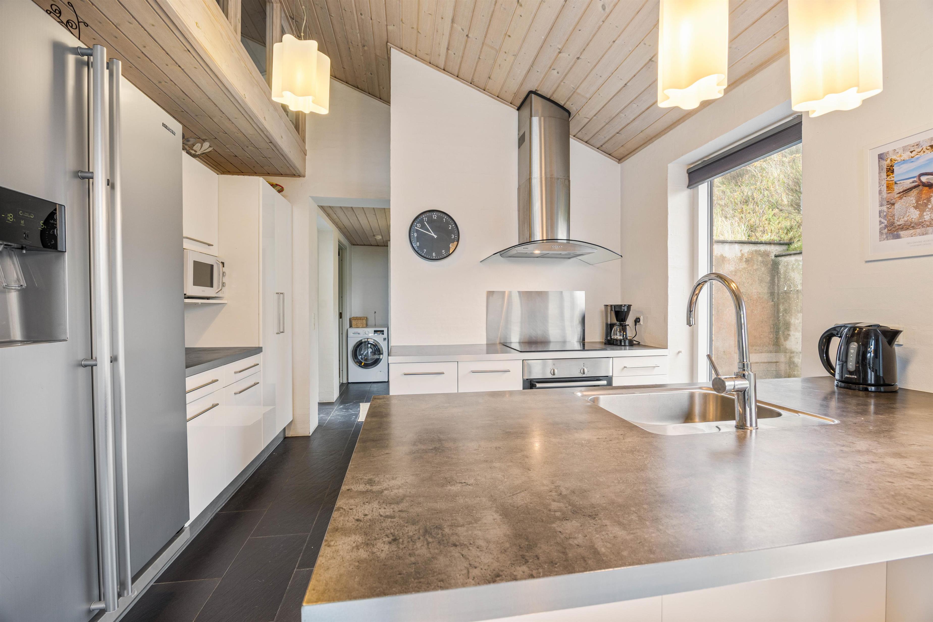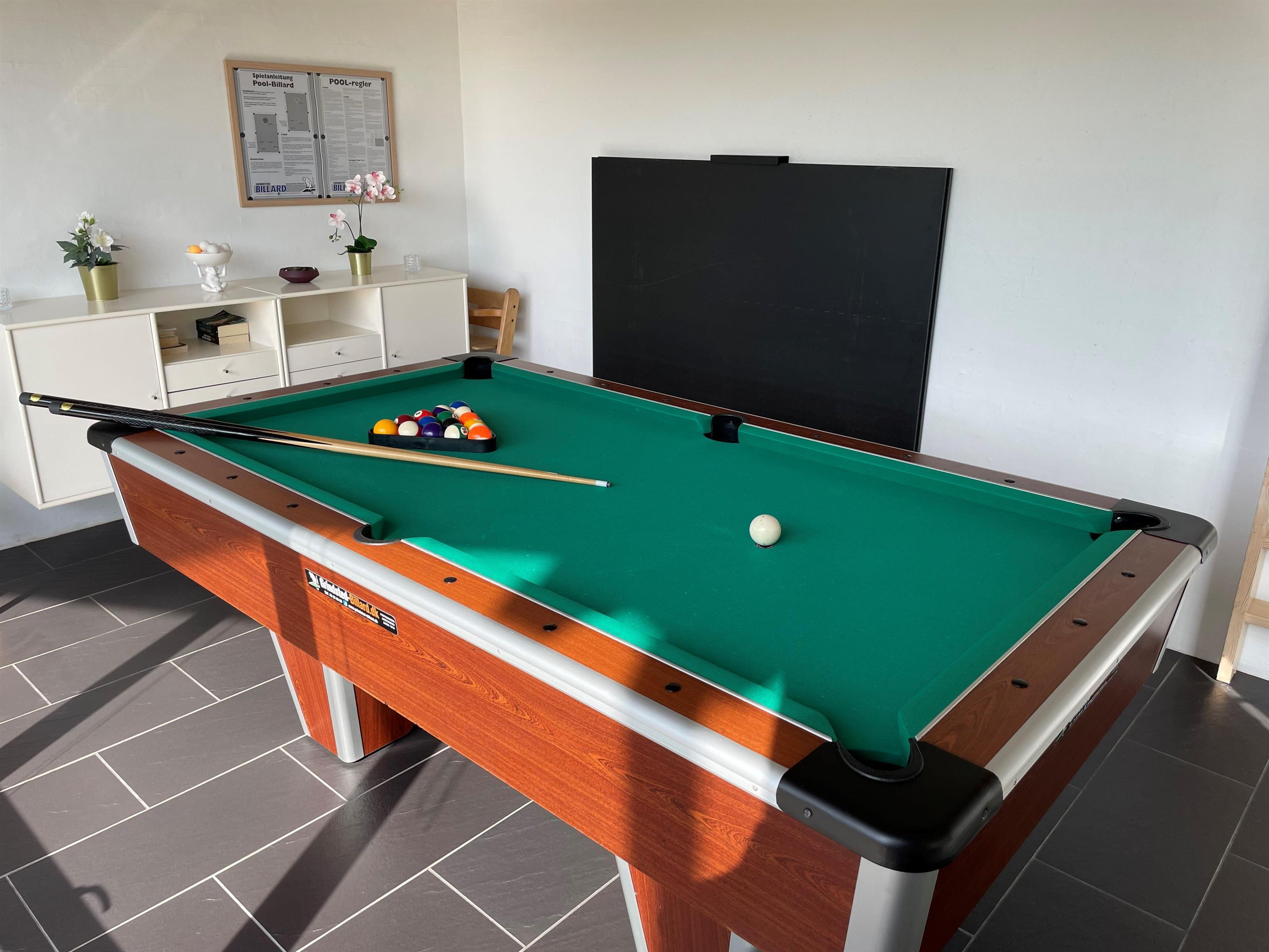 Her på Mågedalen 41 finder I et fantastisk flot feriehus med en god og meget smagfuld indretning. Feriehuset har plads til den store familie på 8 og med det flotte aktivitetsrum med bl.a. poolbord og plade til, så man kan spille bordtennis, er der mange muligheder for sjov og hygge, hvis vejret skulle vise sig fra sin dårlige side af. De 4 dejlige værelser som feriehuset råder over, er alle med komfortable dobbeltsenge der sikrer en god nats søvn.