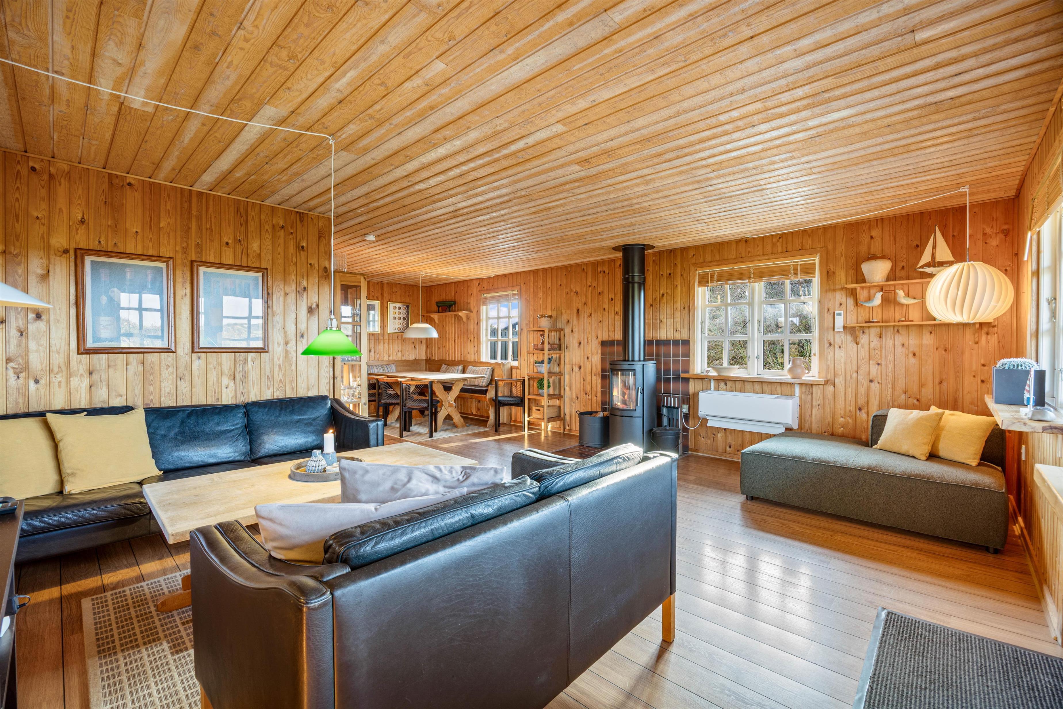 Efter en lang dag i den friske havluft er I hurtigt hjemme igen, og her kan I tanke energi til en ny dag på sofaen med en god bog og den knitrende brændeovn i baggrunden, der spreder masser af varme og hyggelig feriestemning. Huset fremstår velholdt, og vil med sine indvendige træbeklædning giver jer en autentisk sommerhusfornemmelse.