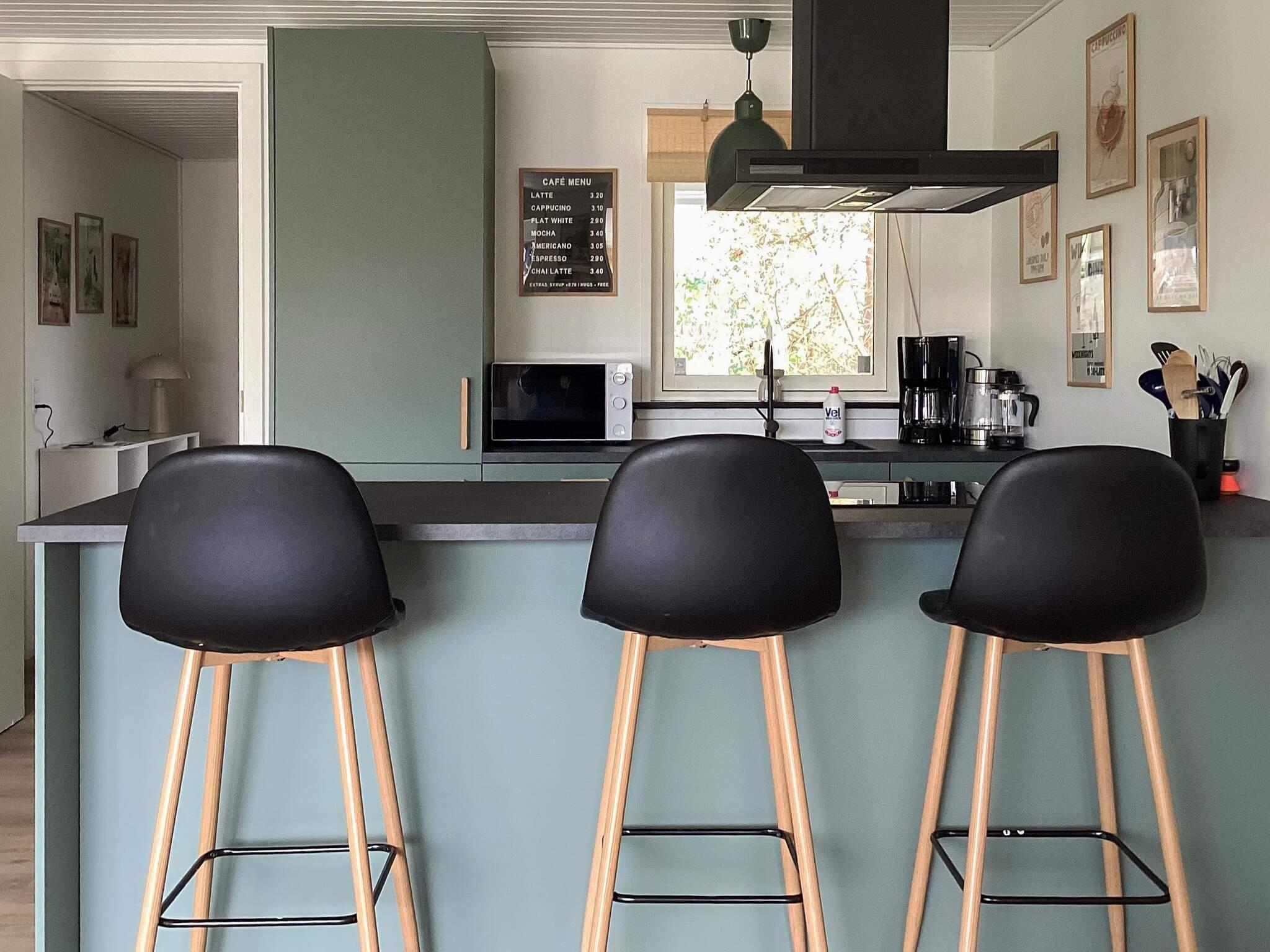 Indenfor finder du en hyggelig og rummelig stue i åben forbindelse med et veludstyret køkken – perfekt til fælles madlavning og samvær. Sommerhuset rummer fire soveværelser: tre med dobbeltsenge og ét med enkeltseng.