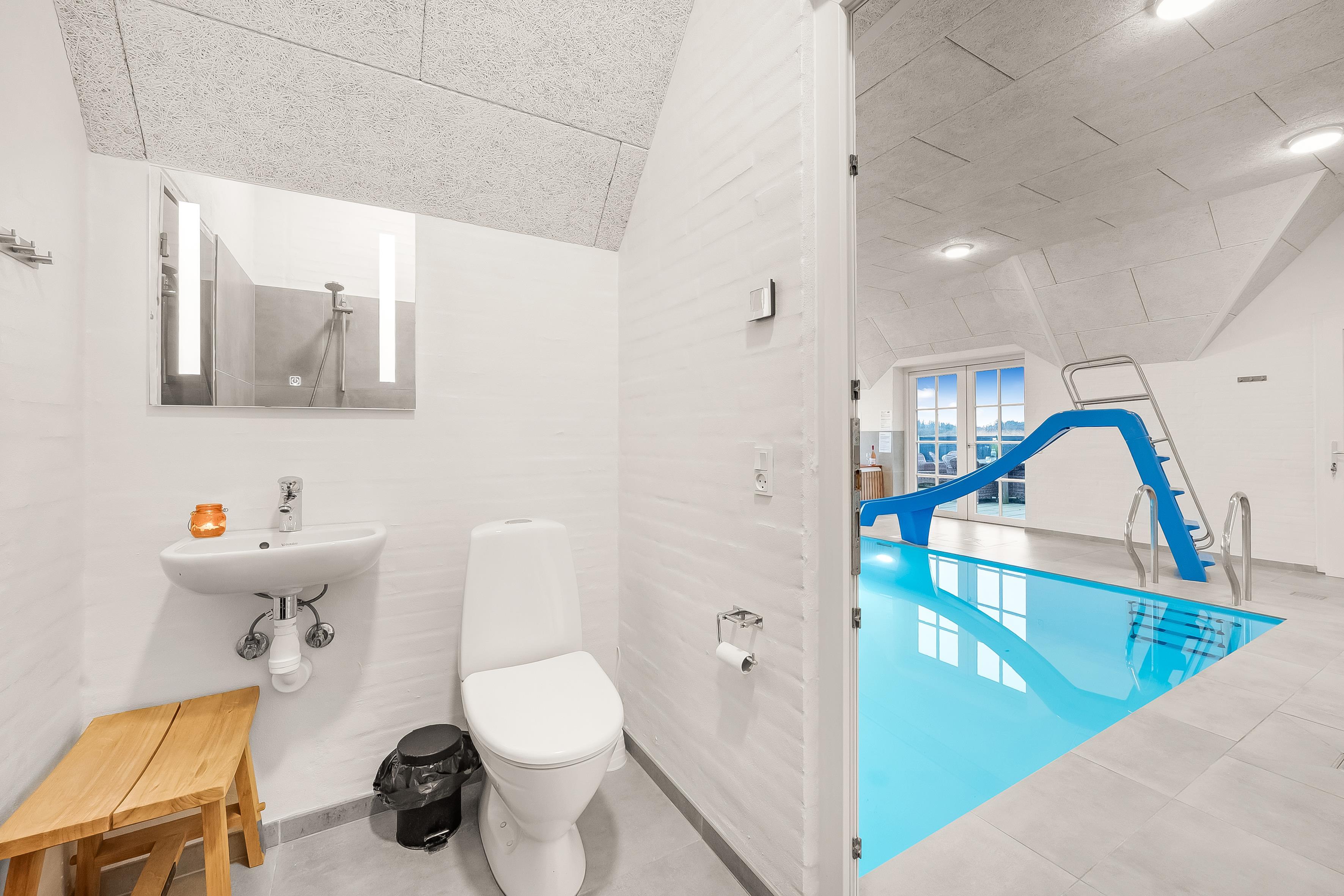 De tre moderne badeværelser er udstyret med brusere og gulvvarme, hvilket sikrer en behagelig oplevelse uanset vejret udenfor. For dem, der elsker at slappe af, tilbyder huset både indendørs og udendørs spa, hvor op til 6 personer kan nyde en beroligende stund. Den indendørs sauna er perfekt til at varme sig op efter en dag udendørs, og det store udendørs spa med plads til 4 personer giver mulighed for skønne stunder under stjernerne.