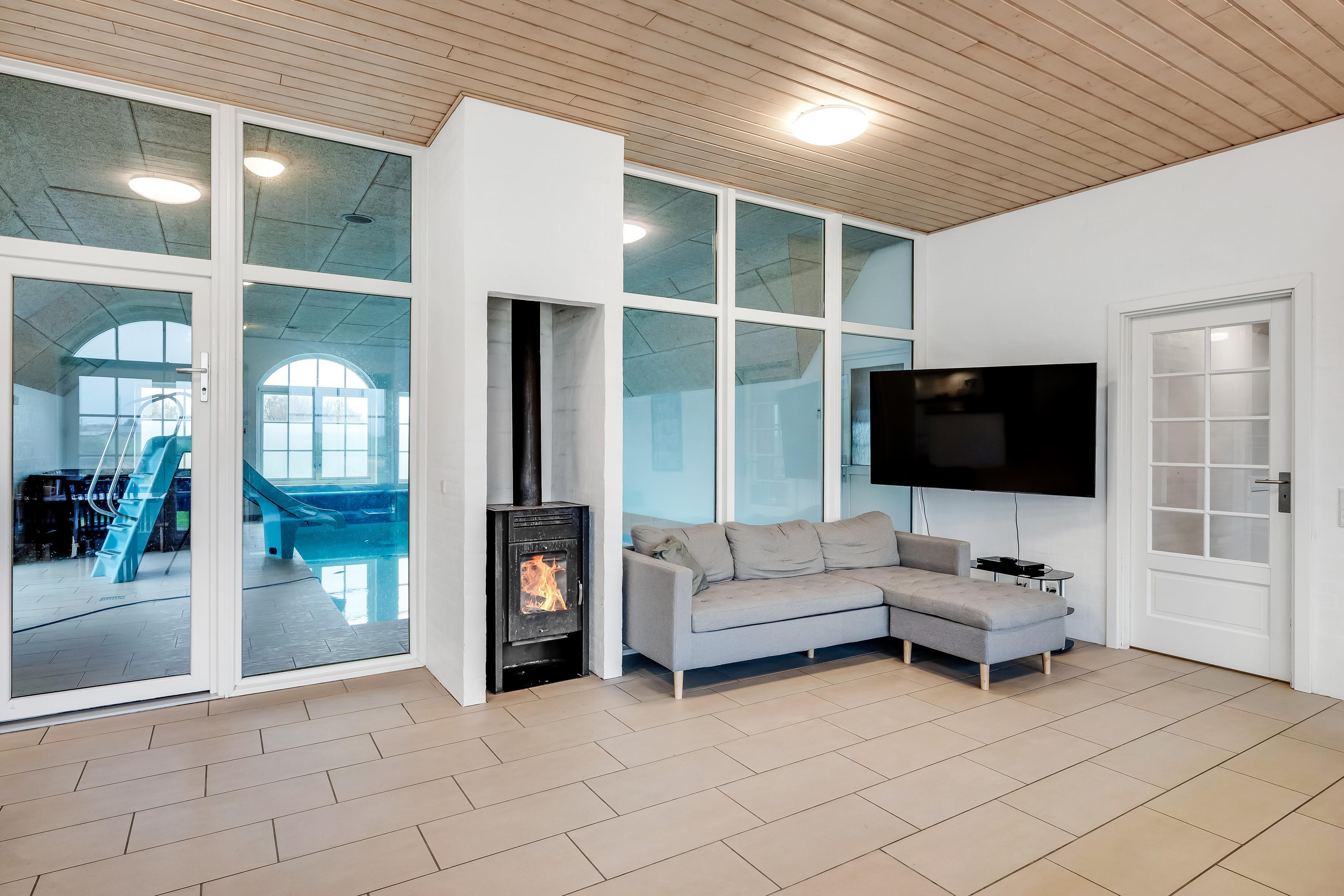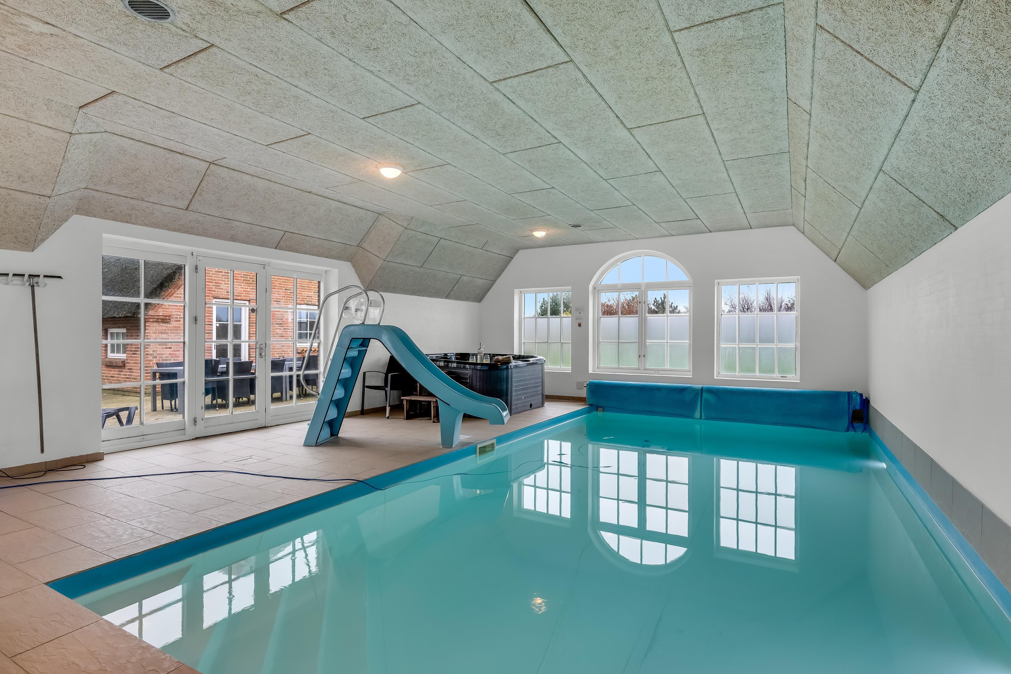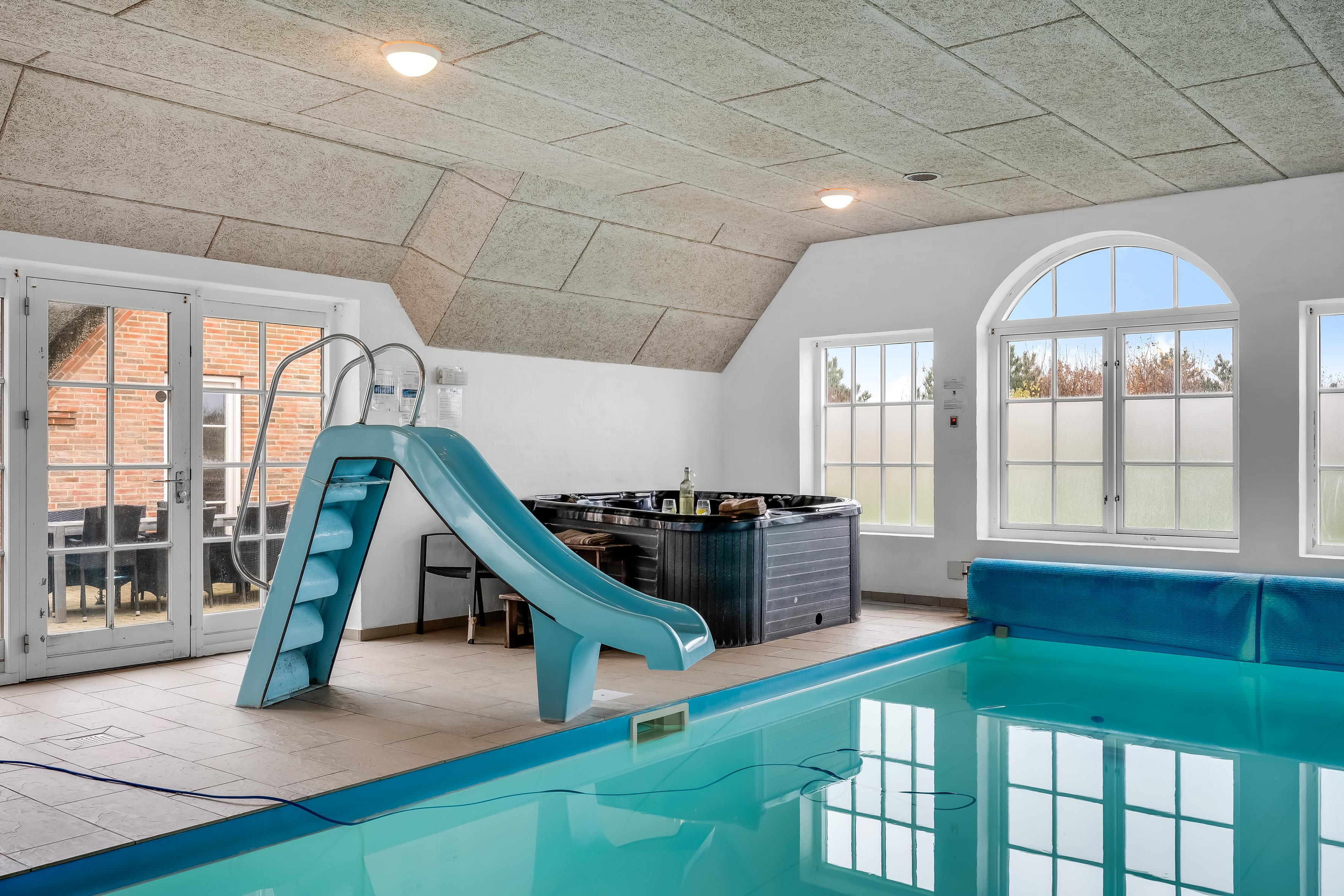 Udenfor finder du en stor terrasse, hvor du kan nyde solen og den friske luft. Der er en grill til rådighed, så du kan tilberede lækre måltider udendørs. Børnene vil elske legepladsen med gynger og sandkasse, mens de voksne kan slappe af ved poolen, der også har en sjov vandrutsjebane. For dem, der ønsker at forkæle sig selv, er der et indendørs spa, der kan rumme op til syv personer, samt en infrarød sauna til afslapning efter en lang dag.