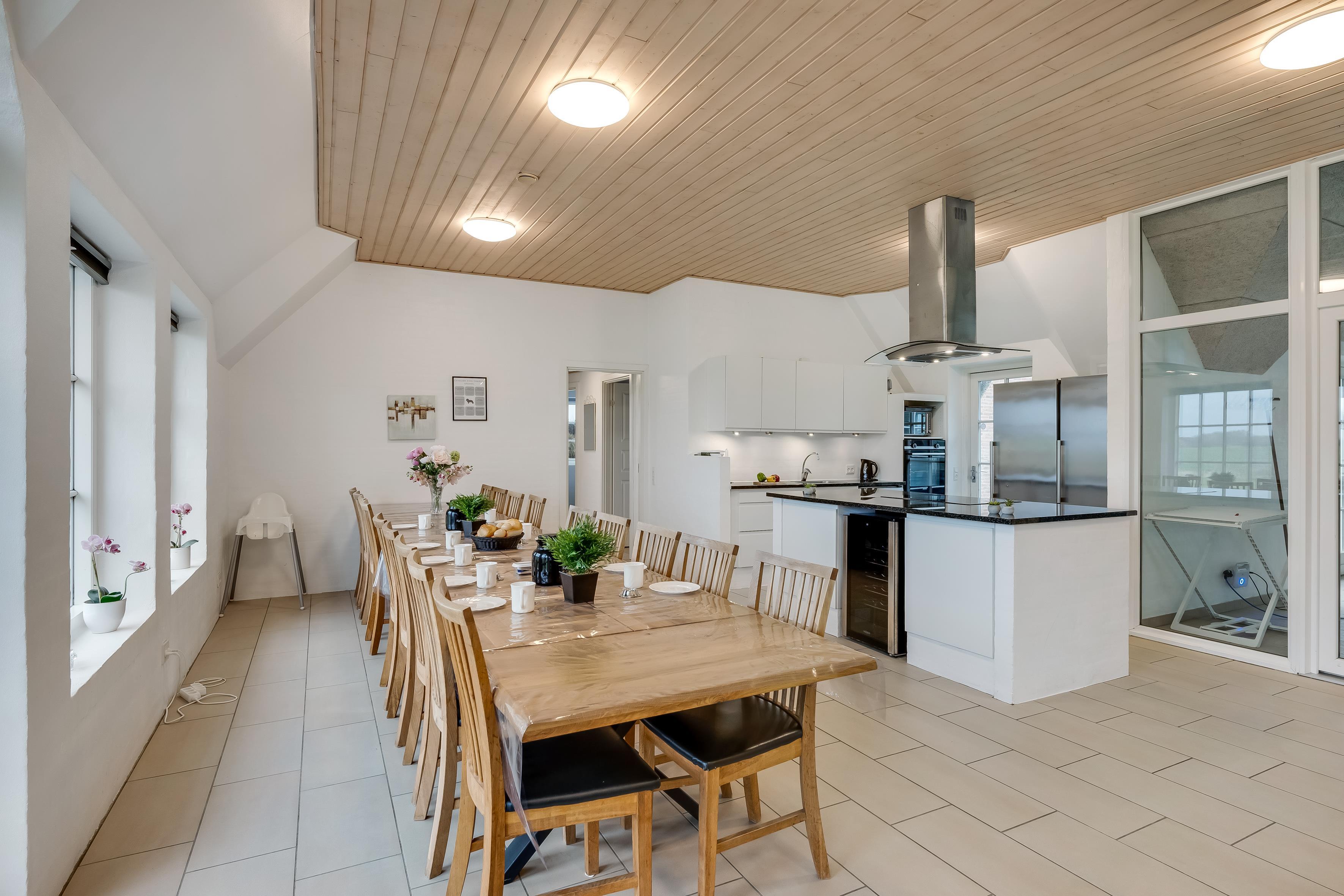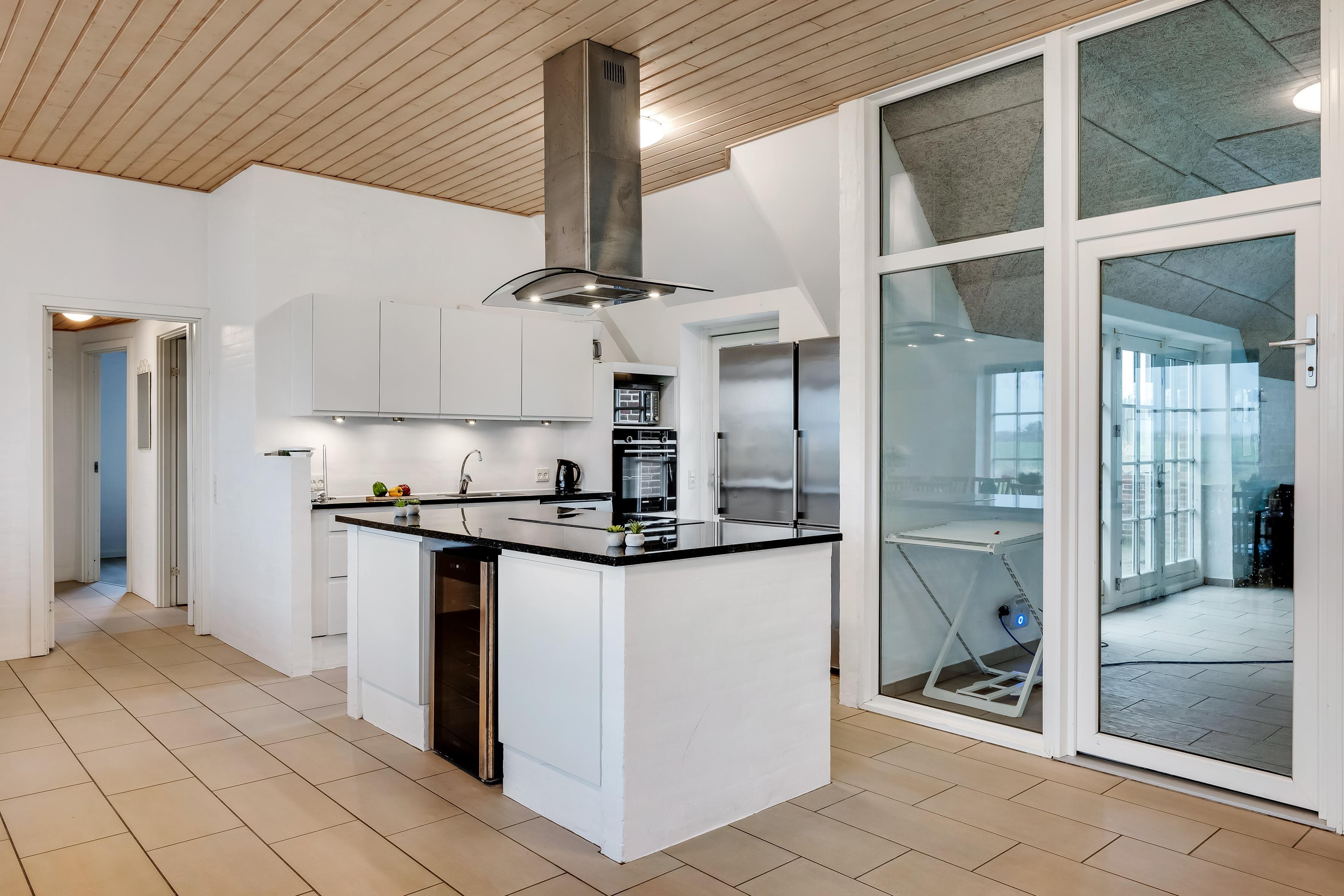 For dem, der elsker at tilberede mad, er køkkenet udstyret med moderne faciliteter, herunder en mikrobølgeovn, keramisk komfur, ovn, opvaskemaskine og et vinkøleskab. Der er også to køleskabe med med en samlet frysekapacitet på over 100 liter, så du kan opbevare alle dine madvarer. Det åbne køkken er perfekt til at samle familien omkring, mens du tilbereder lækre måltider.