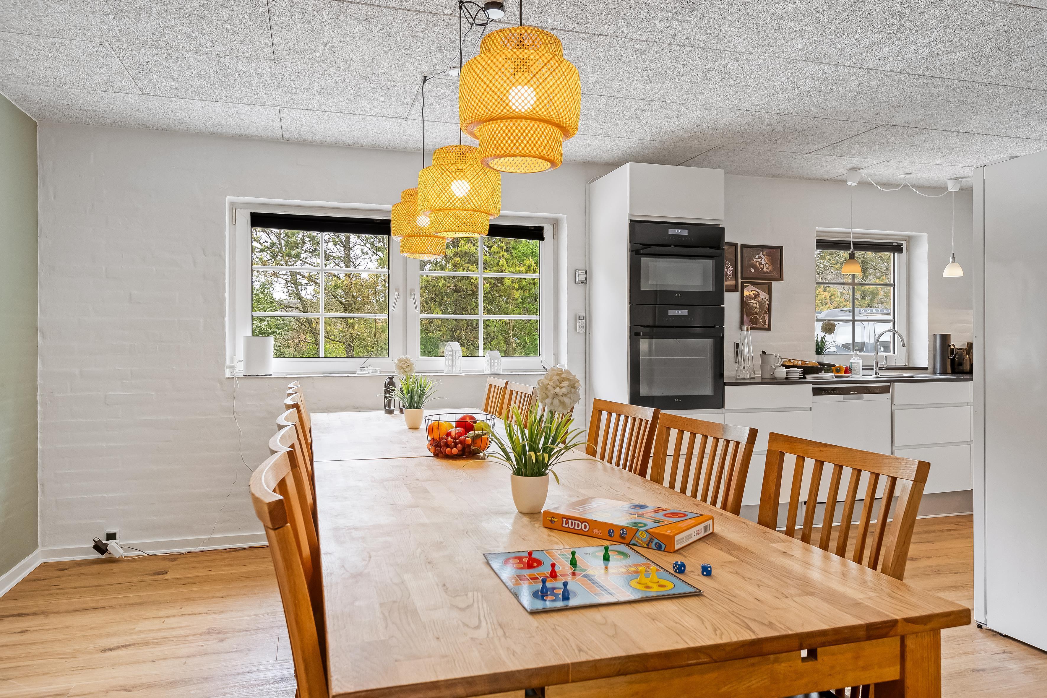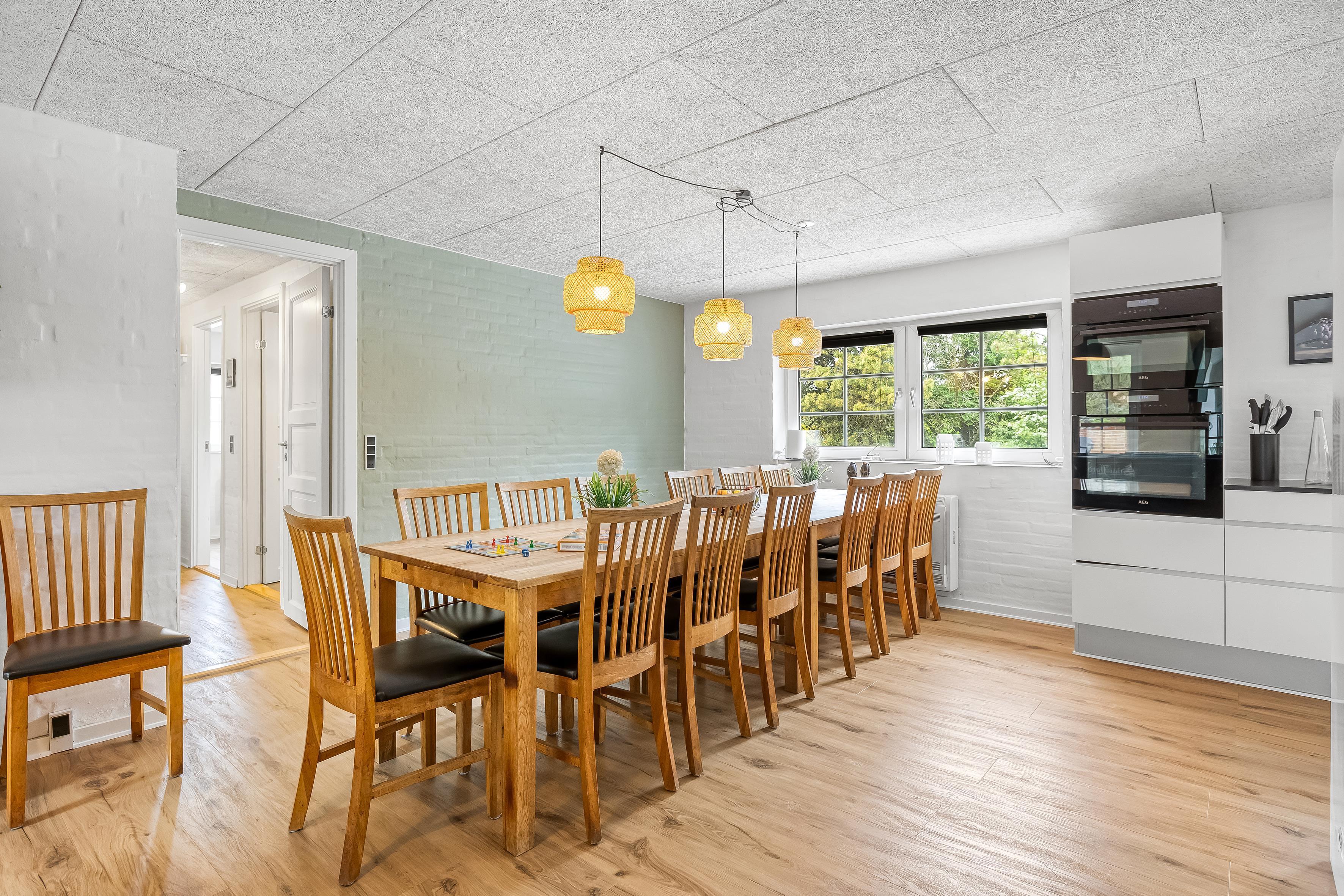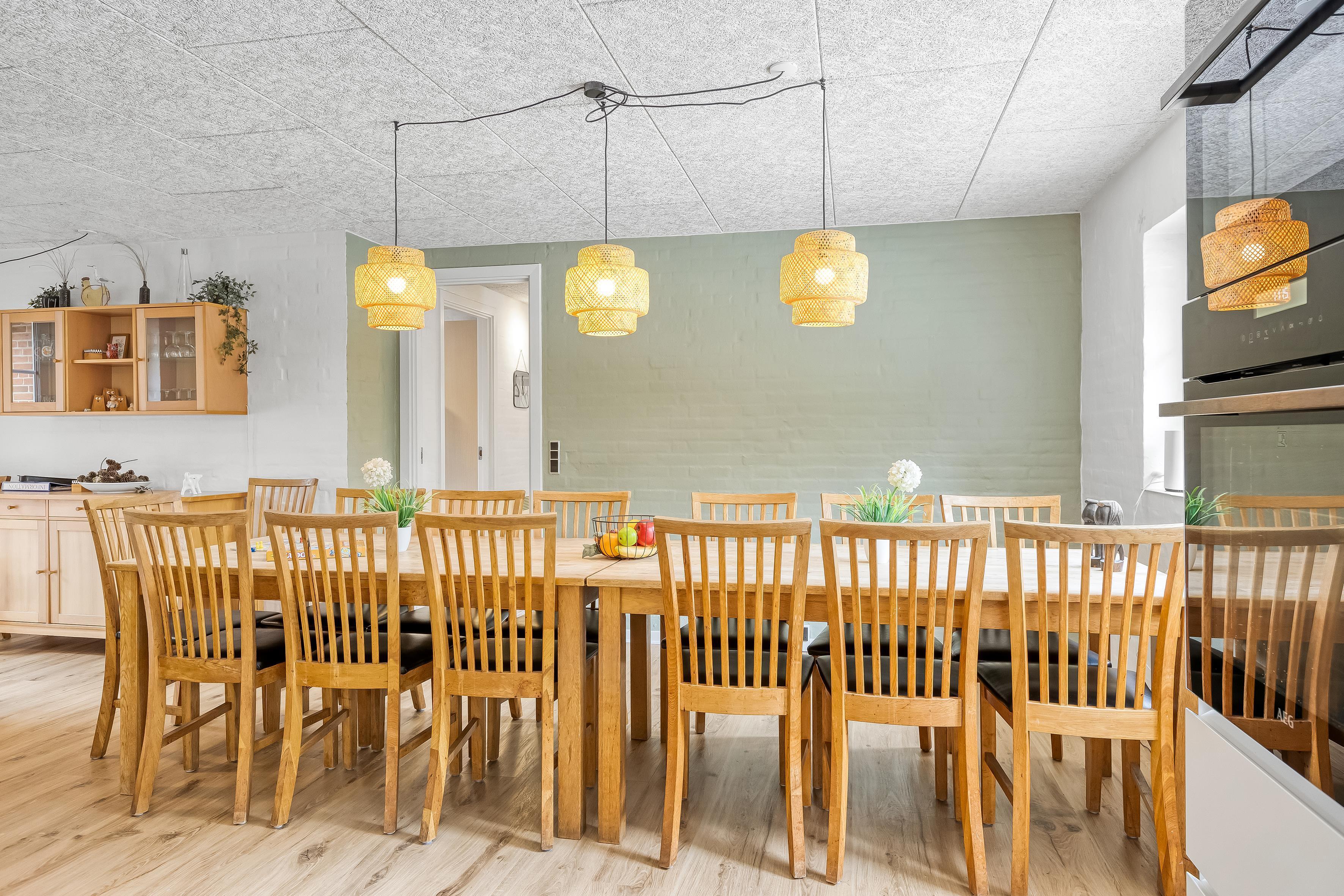 Huset er perfekt til både afslapning og sjov. Det har hele syv soveværelser, herunder fem med dobbeltsenge (et af dem er uden vindue) og to med køjesenge, hvilket gør det muligt for alle at finde et behageligt sted at sove. Der er i alt 18 sovepladser, så ingen behøver at sove på sofaen. Huset er også udstyret med tre badeværelser, hver med toilet, bruser, og gulvvarme, så du kan nyde varme fødder, selv på de koldeste dage.