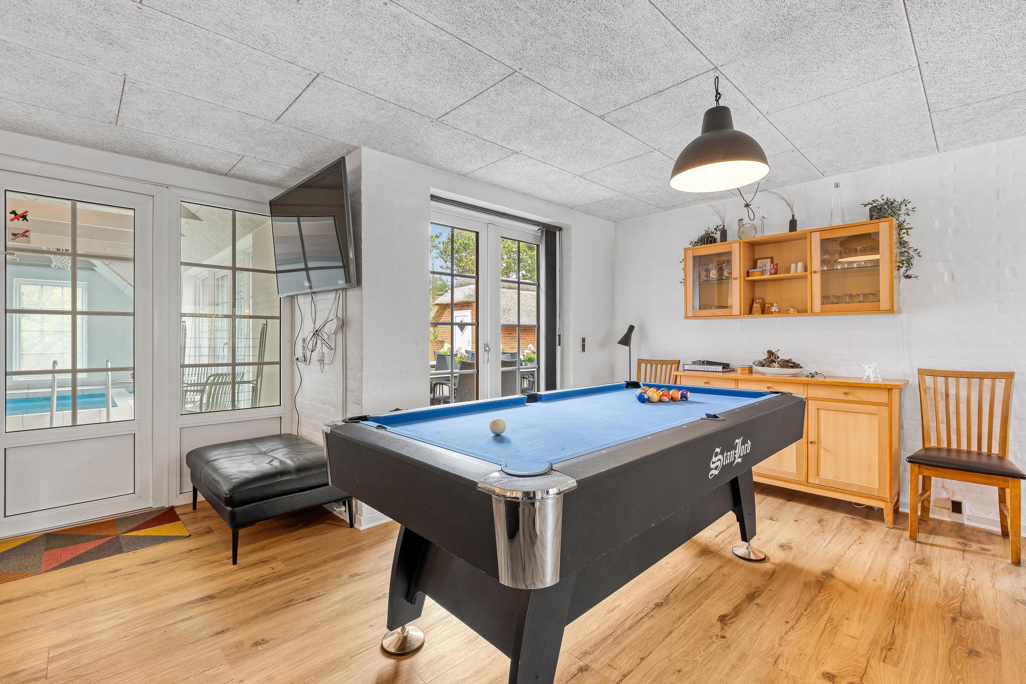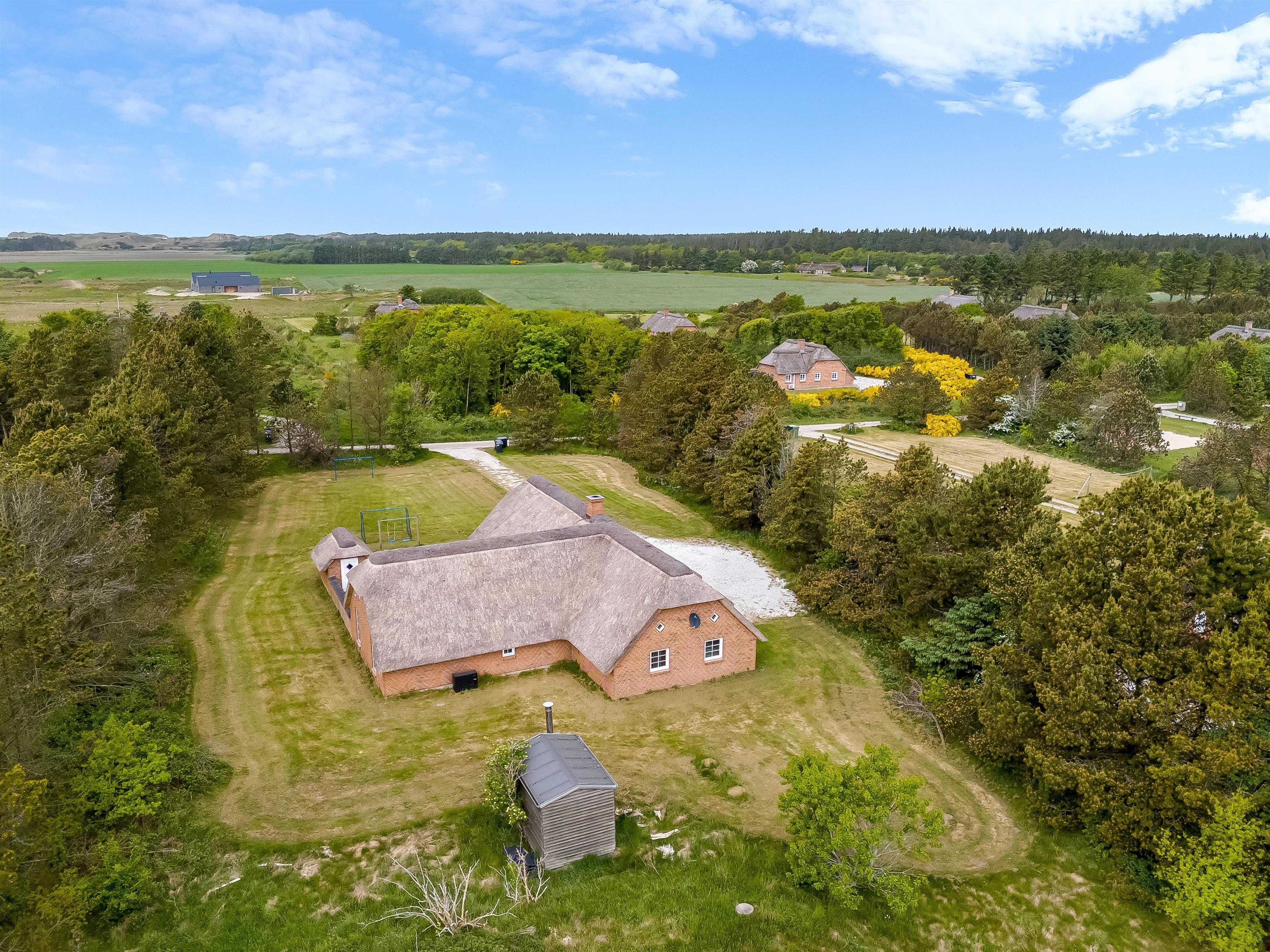 Men det stopper ikke her! Denne ejendom har også en privat pool med vandrutsjebane, så du kan svømme året rund. Der er desuden et indendørs spa, der kan rumme op til fire personer i poolrummet, samt en sauna for dem, der ønsker at slappe af og forkæle sig selv. Den store grund giver også mulighed for at nyde naturen og de omkringliggende områder, med Vesterhavet kun 1500 meter væk.