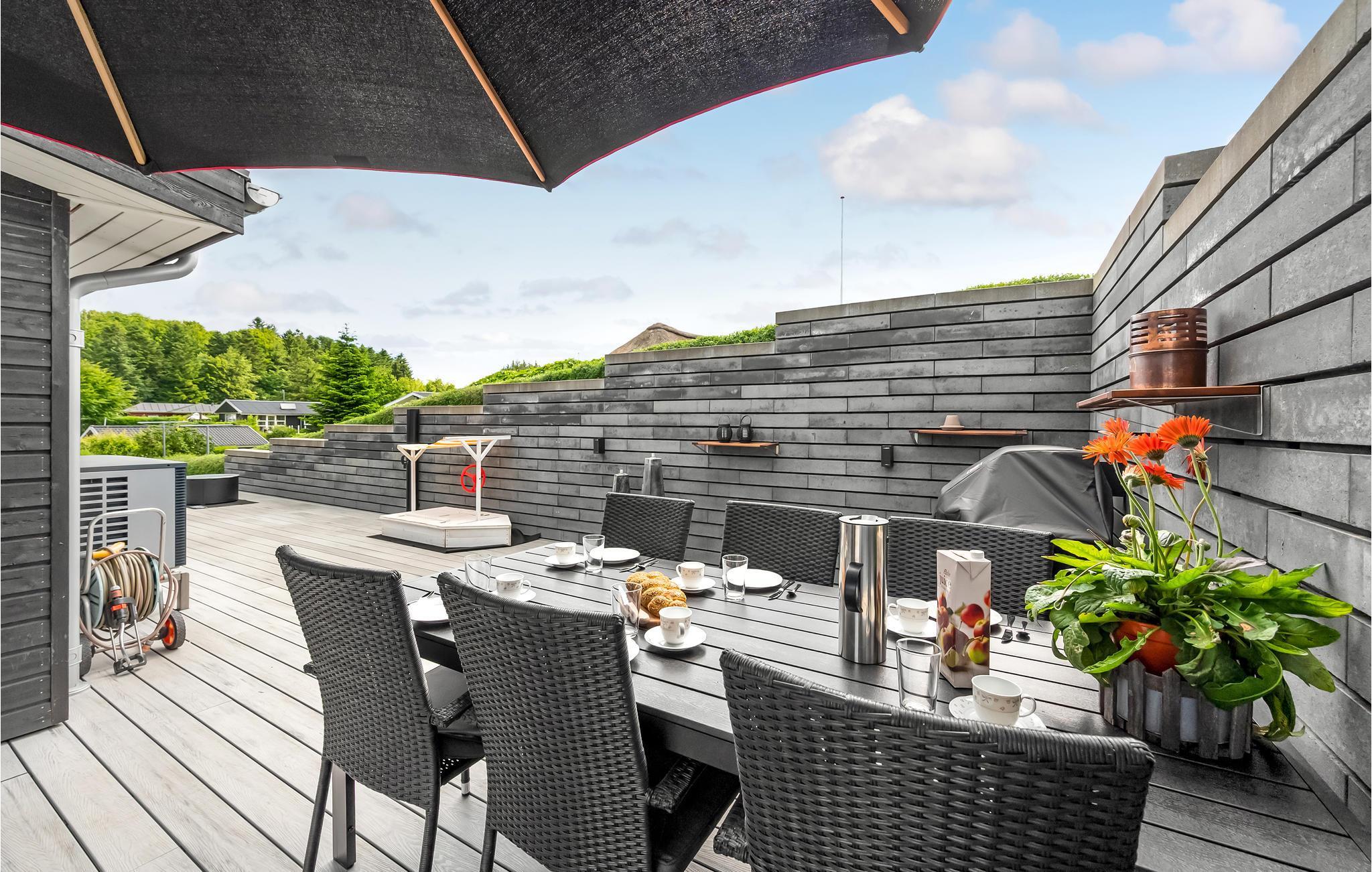 Luksuriøst sommerhus i Hvalpsund med stor terrasse, havudsigt og moderne faciliteter, perfekt til en afslappende ferie i Nordjylland.