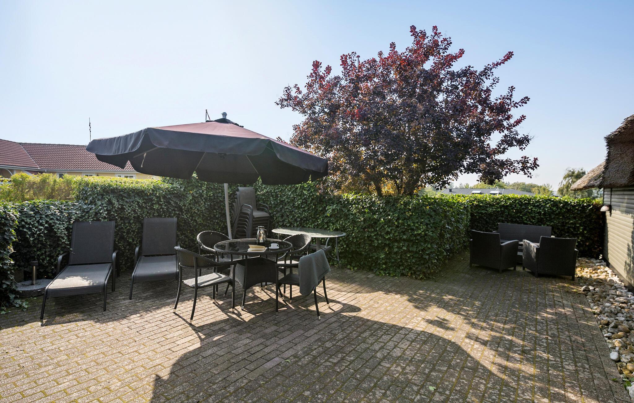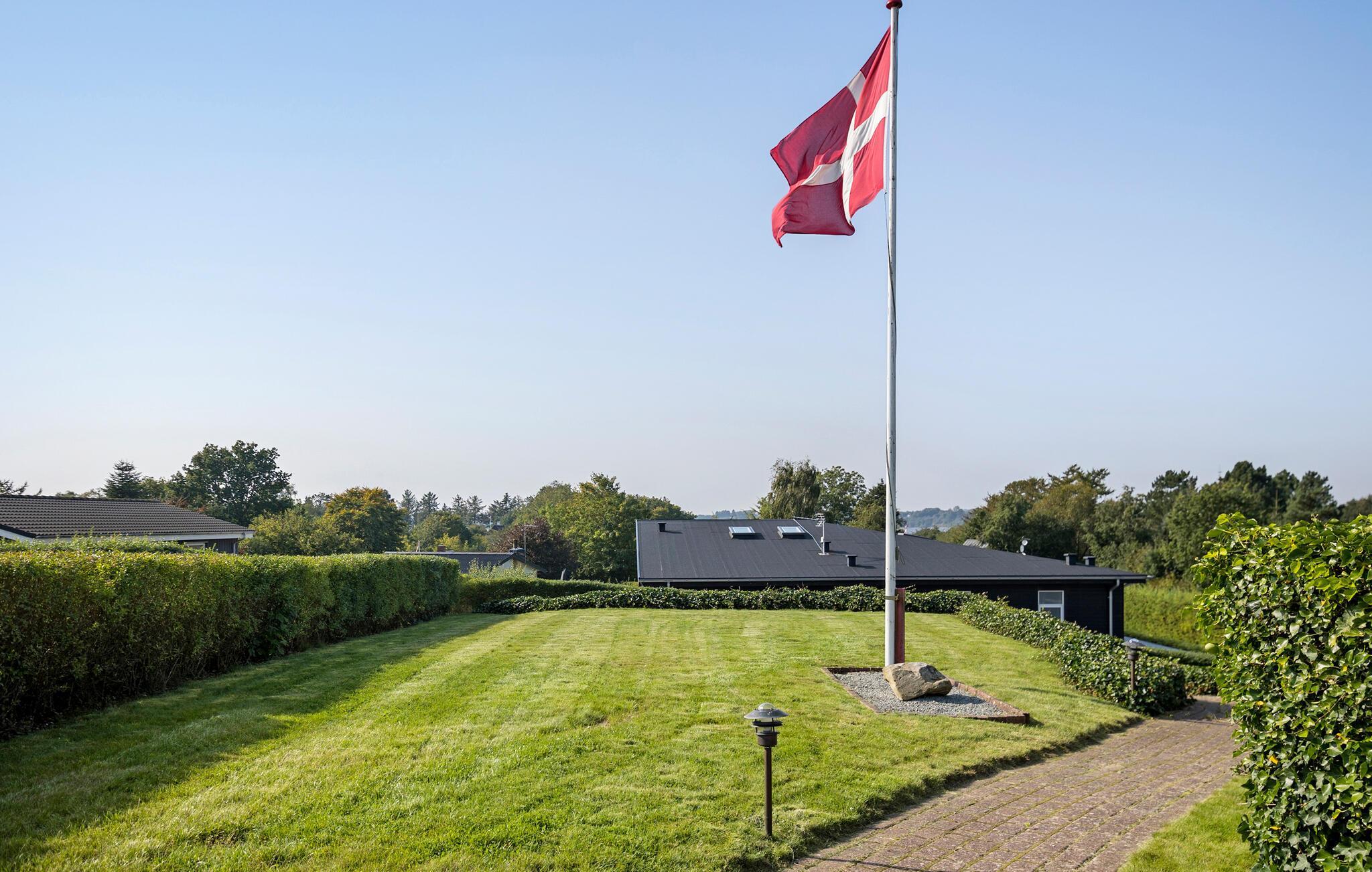 På en lun dag kan I tænde op i grillen og sætte jer ud på terrassen, som er flot indrammet af den grønne have.