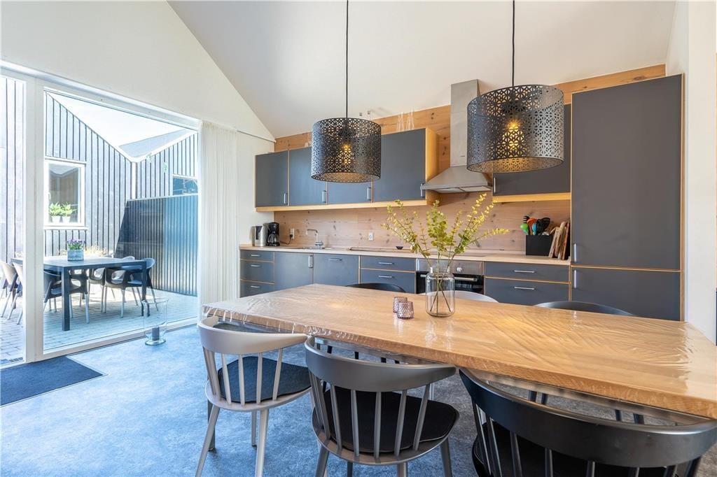 Ved siden af grovkøkkenet ligger en garage, og her er det muligt at oplade elbilen, hvis I selv medbringer et kabel. Når bilen står trygt parkeret, kan I selv slappe af under åben himmel, og det kan enten foregå i den aflukkede solgård eller på den sydvendte terrasse. Netop terrassen ligger så tæt på fjorden, at I kan følge med i bådenes sejlads og spotte sæler, der lokkes til af de mange fisk nær slusen.