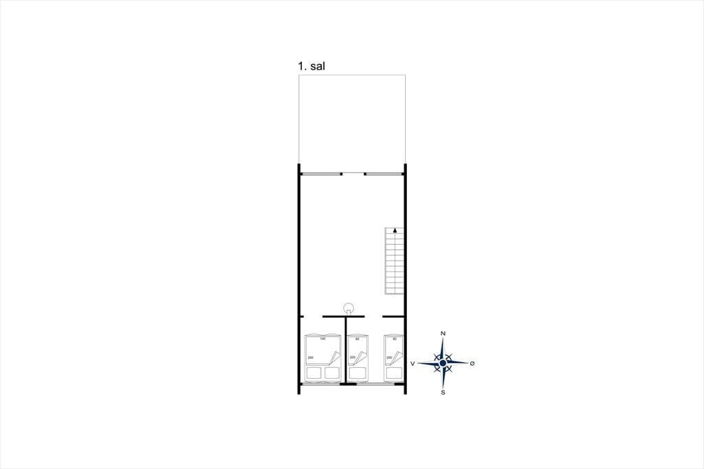 På 1. salen er stuen med panorama udsigt til fjorden og med brændeovn. Der er desuden 2 lyse sydvendte soveværelser, et med to enkeltsenge og et med dobbeltseng. Der kan sove i alt 6 personer i husbåden. Hunden er også velkommen ombord.