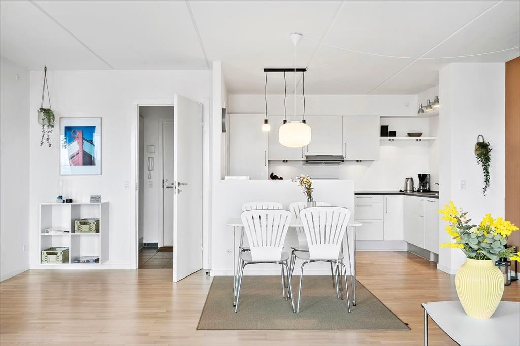 Ejendommen ligger midt i Hvide Sandes hyggelige centrum, der især i sommermånederne summer af liv og byder på en hyggelig, maritim atmosfære. Indkøb klares let i det nærliggende supermarked og hos de spændende specialbutikker, og I har kun en kort gåtur til mange gode spisesteder, uanset om I vil spise ude eller hente lækker takeaway. Det er oplagt at gå en hyggelig solopgangstur langs havnebassinerne hen til fjorden eller til stranden, mens solen synker orangerødt mod horisonten. Surfpladserne ved Vesterhavet og fjorden giver mulighed for at dyrke vandsport, og ved Afvandingsslusen kan I fiske. Har I cykler med, er det oplagt at tage på udflugt på cykelstierne, der bugter sig mellem Holmsland Klits lyngklædte klitter. Samtidig har I et væld af oplevelser i vente, hvis I tager en køretur omkring fjorden, uanset om I vil hygge i Ringkøbings charmerende gader og stræder eller nyde den spektakulære natur ved Skjern Enge.