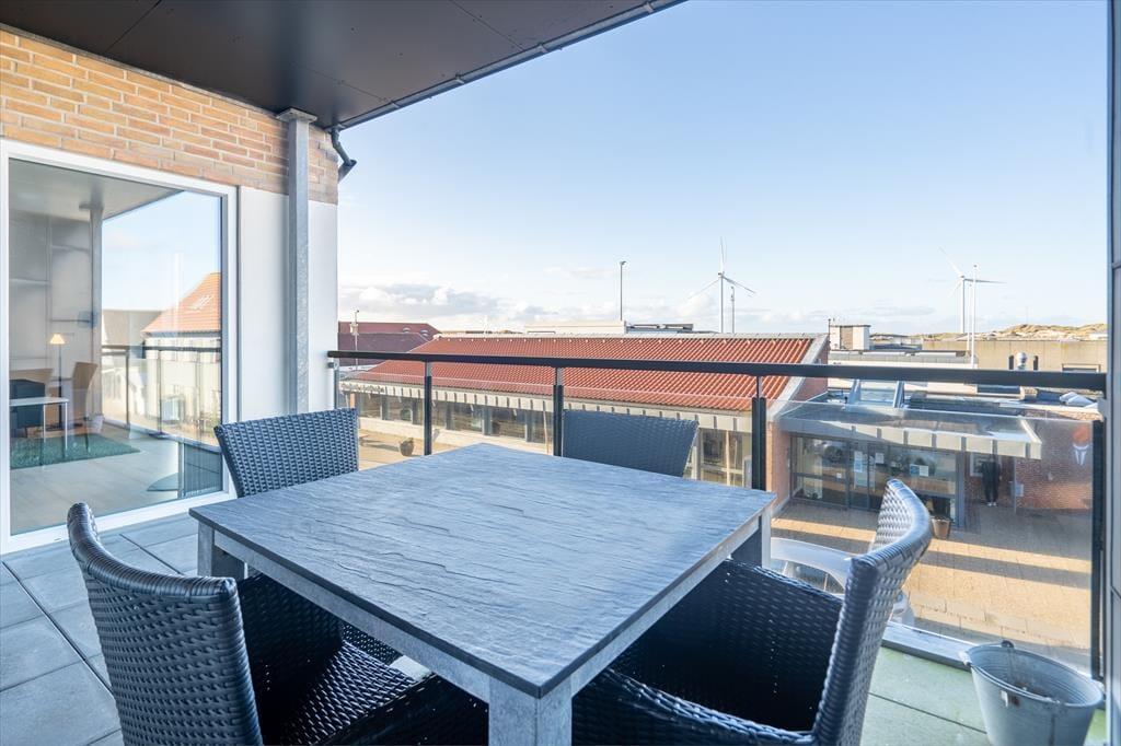 Den vestvendte, overdækkede terrasse er stedet, hvor måltider og dagens kølige drikke kan serveres i den friske luft. Herfra har I et skønt vue over byens tage og klitterne ved Vesterhavet.