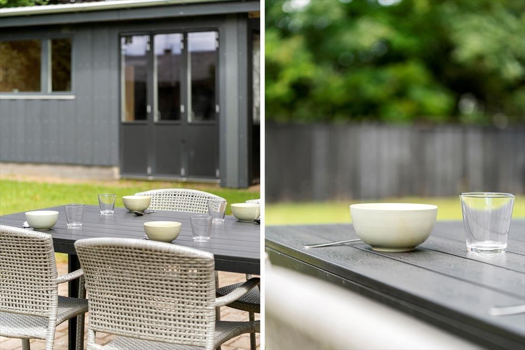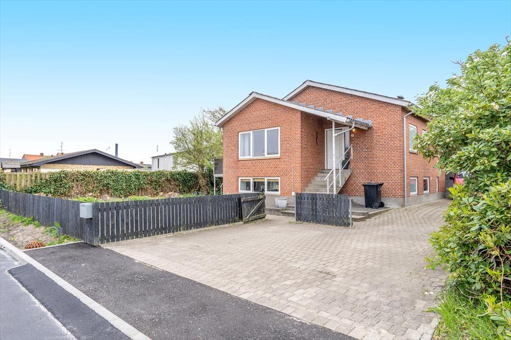 Når solen står højt på himlen over Hvide Sande, er det selvfølgelig fristende at bruge en stor del af ferien ude i den friske luft – og så er det herligt at kunne sætte sig ud på lejlighedens terrasse eller at hygge sig med at lege på græsplænen. Ejendommens udearealer er opdelt, så den hævede altan og forhaven hører til stuelejligheden, mens du kan råde frit over den lukkede baghave. Indkørslen og et skur er til fælles afbenyttelse for de to boligenheder. I baghaven har du havemøbler og liggestole til rådighed, så du kan få det komfortabelt, og hvis du vil sidde i skyggen af en parasol eller tilberede aftensmaden på en kulgrill, kan det også sagtens lade sig gøre.