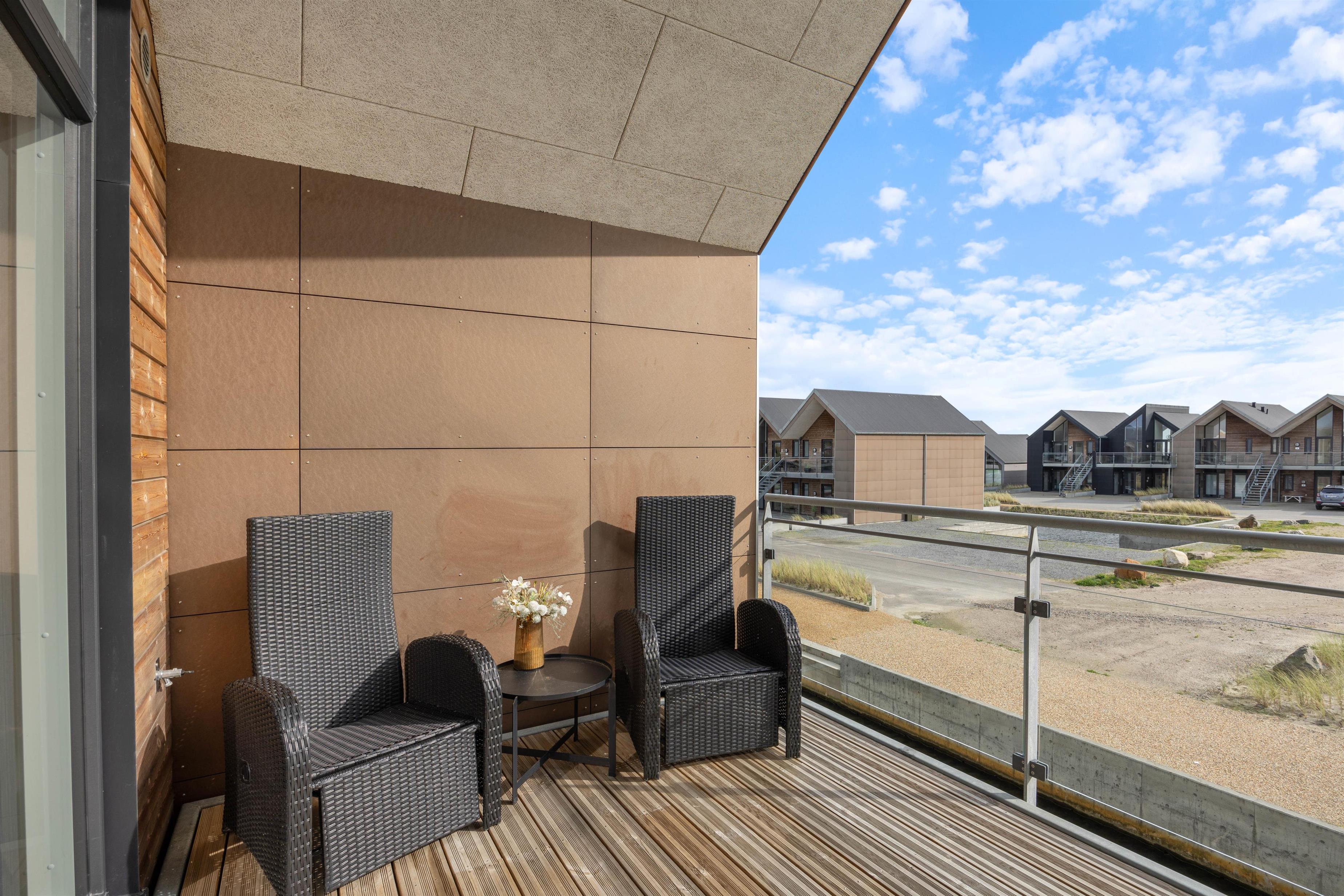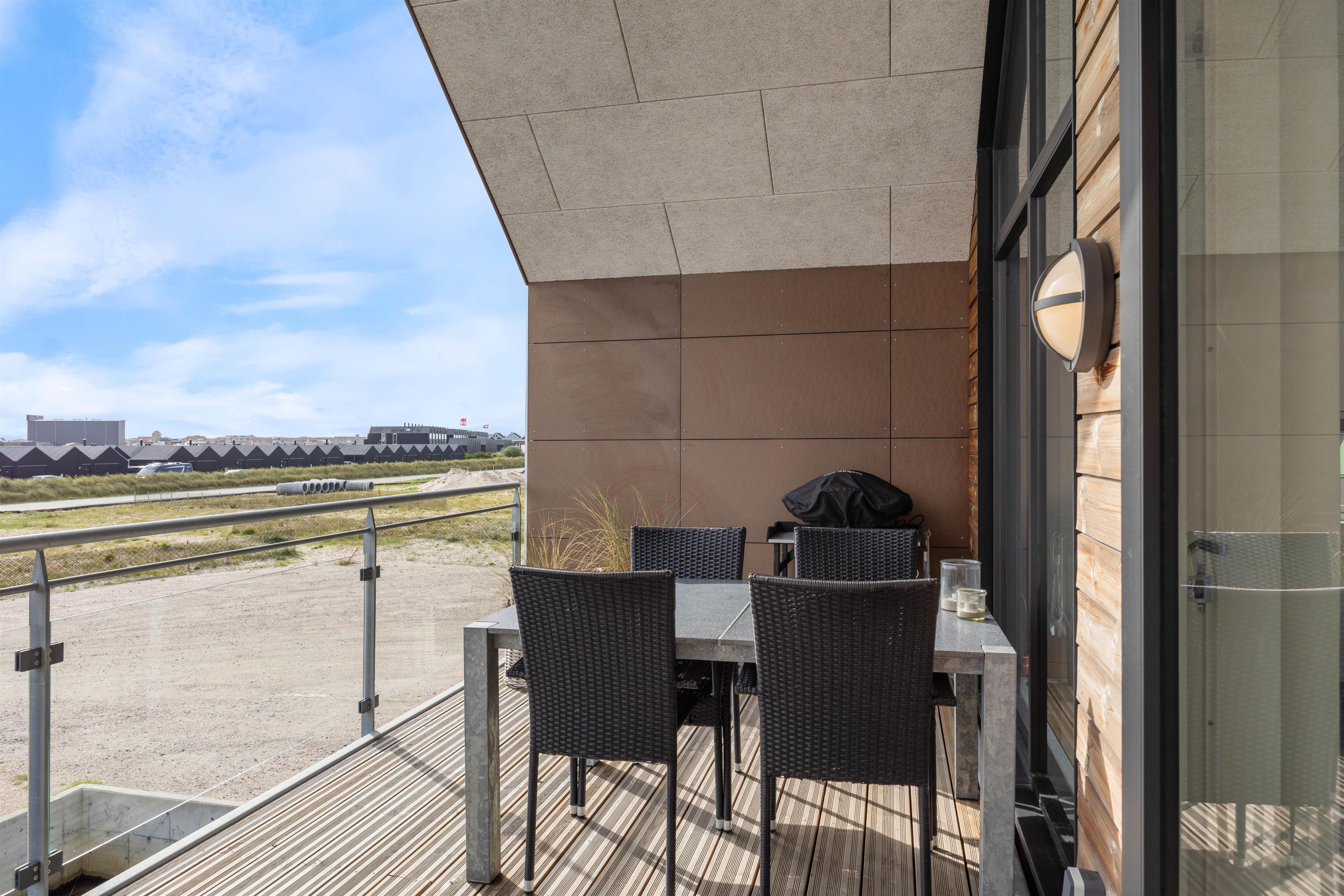 Ferielejligheden har en fin altan, hvor I kan sætte jer til rette i havemøblerne med en spændende bog eller en god kop kaffe. På altanen kan I også finde grillen frem og tilberede en lækker middag, som I kan nyde med et godt glas vin og en god udsigt – faktisk har ferielejligheden udsigt i hele 3 retninger.