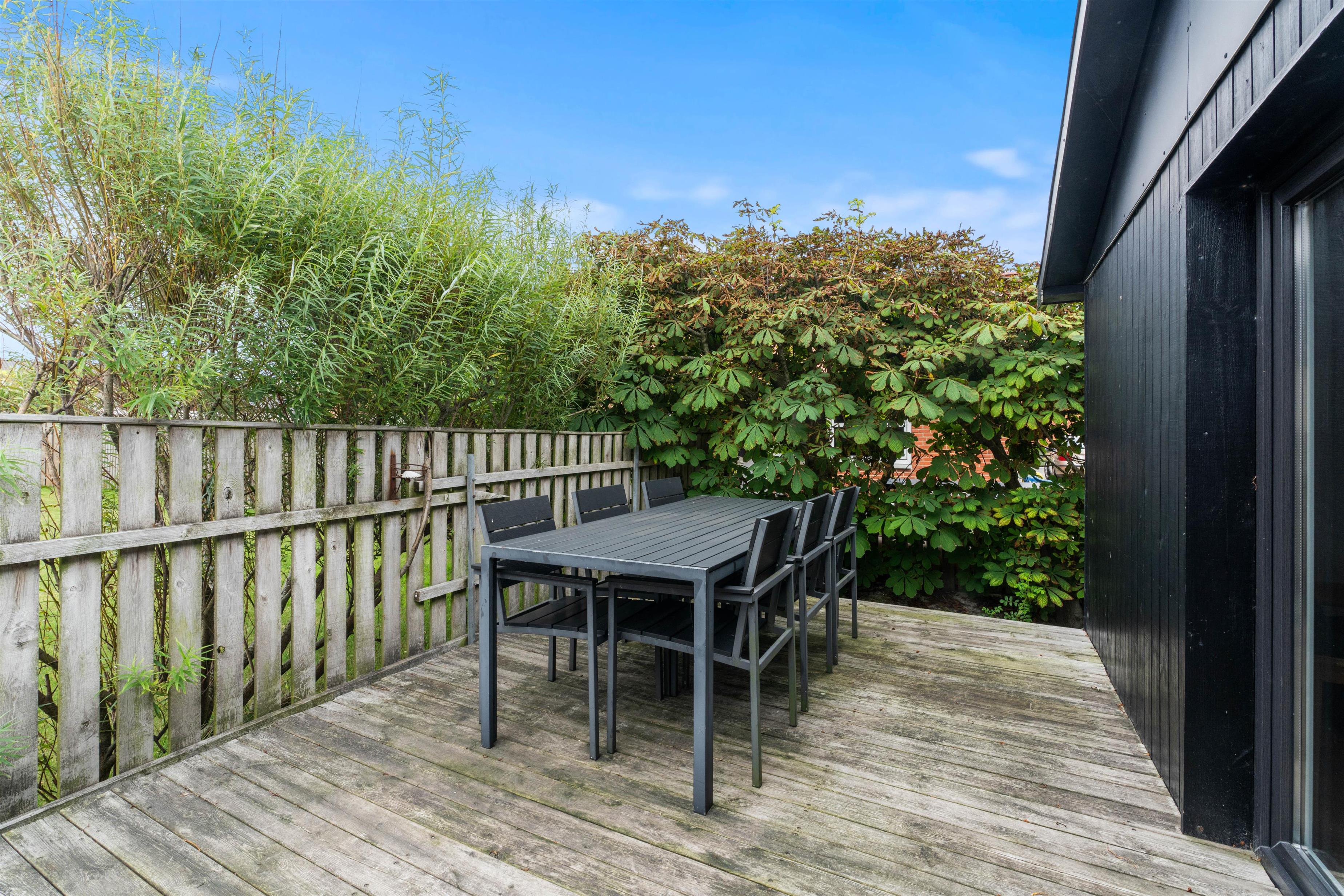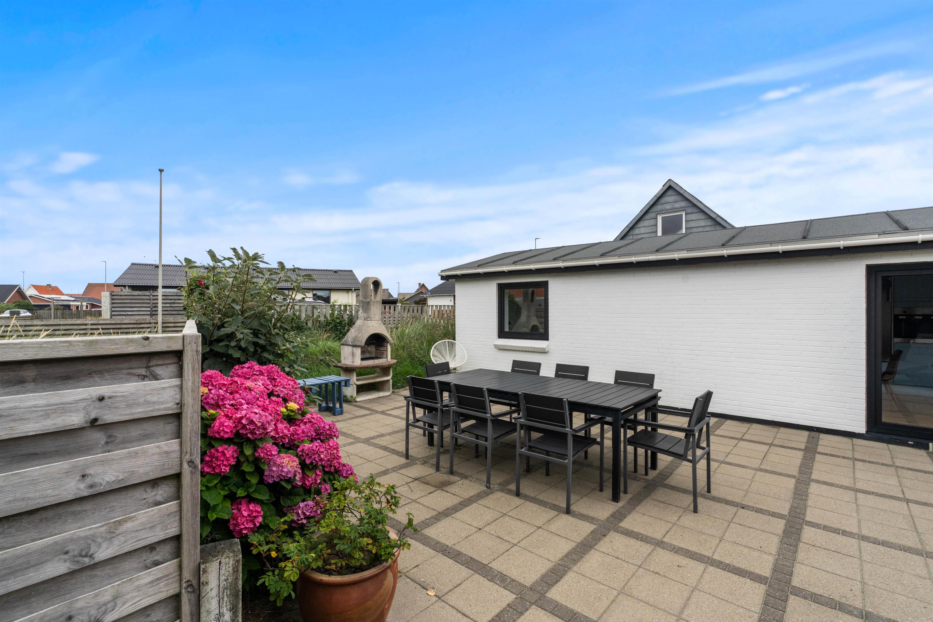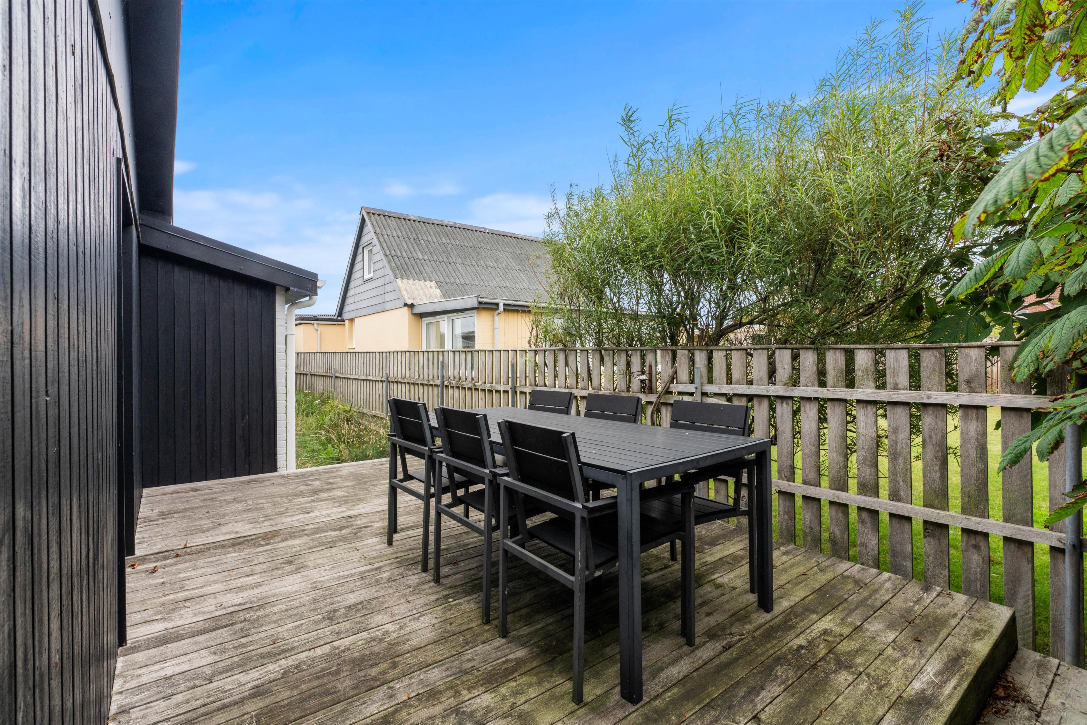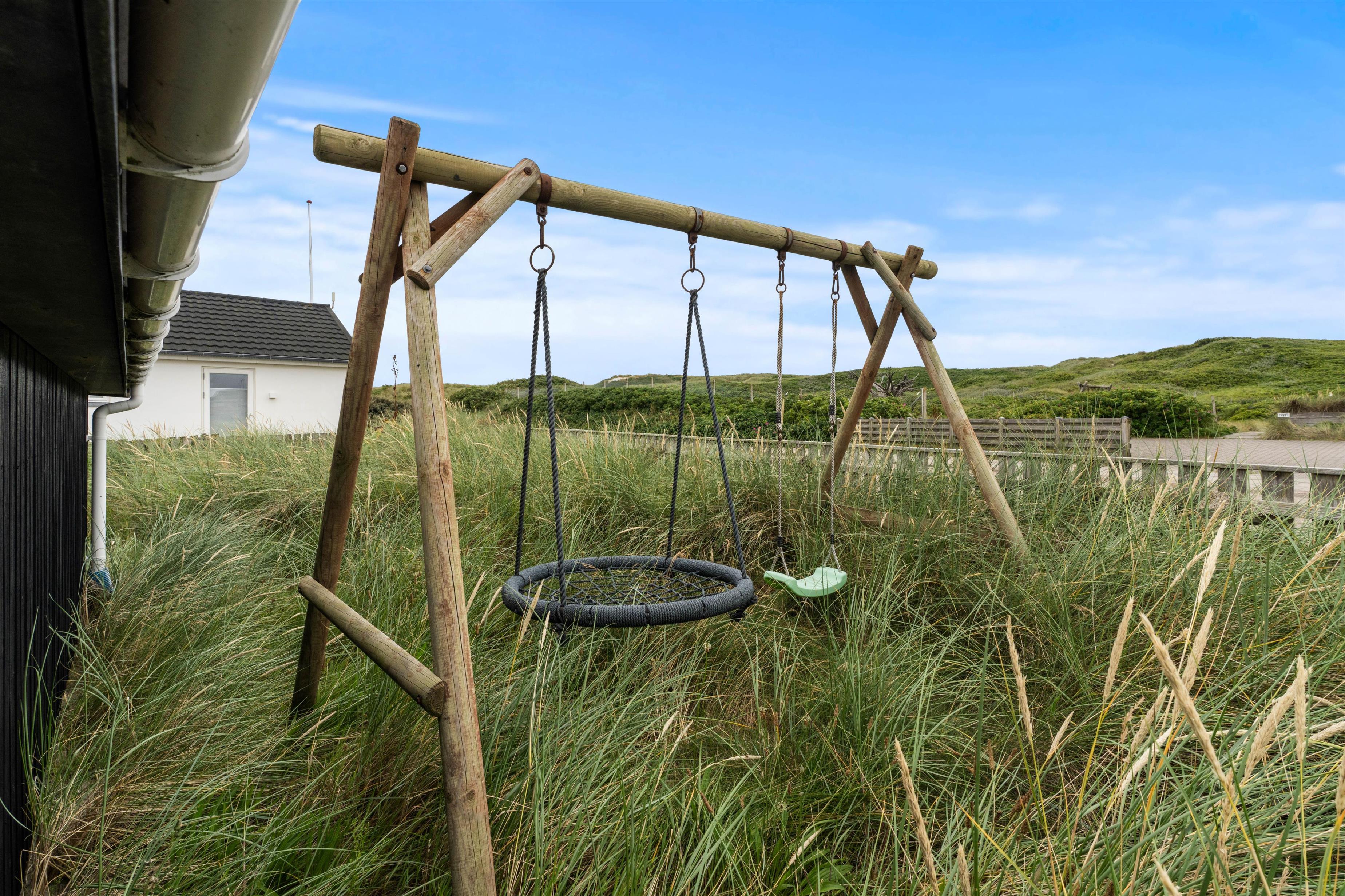 Der er to lukkede terrasser rundt om huset, hvor I kan sidde og nyde det gode vejr i ro og fred. Der er havemøbler, liggestole og en grill til de lune sommerdage, og til de yngste feriegæster er der sat et gyngestativ op.