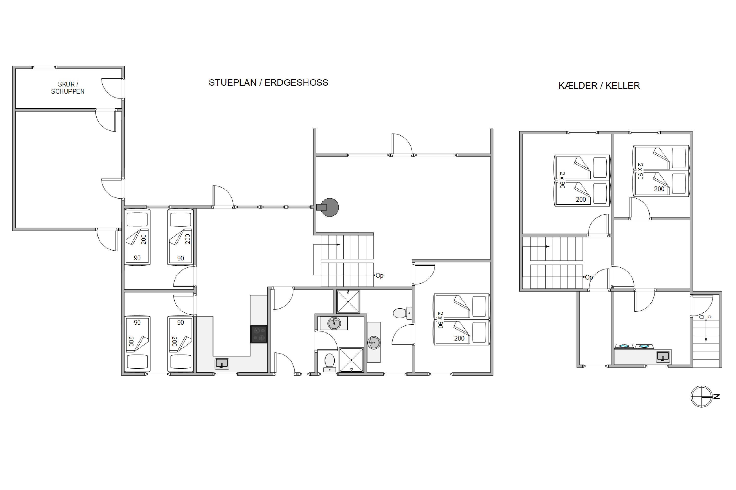 Feriehuset har desuden 2 badeværelser med gulvvarme, hvilket sikrer en behagelig start på dagen, selv i de køligere måneder. Vaskemaskine og tørretumbler er også tilgængelige, så I kan holde styr på vasketøjet under ferien.