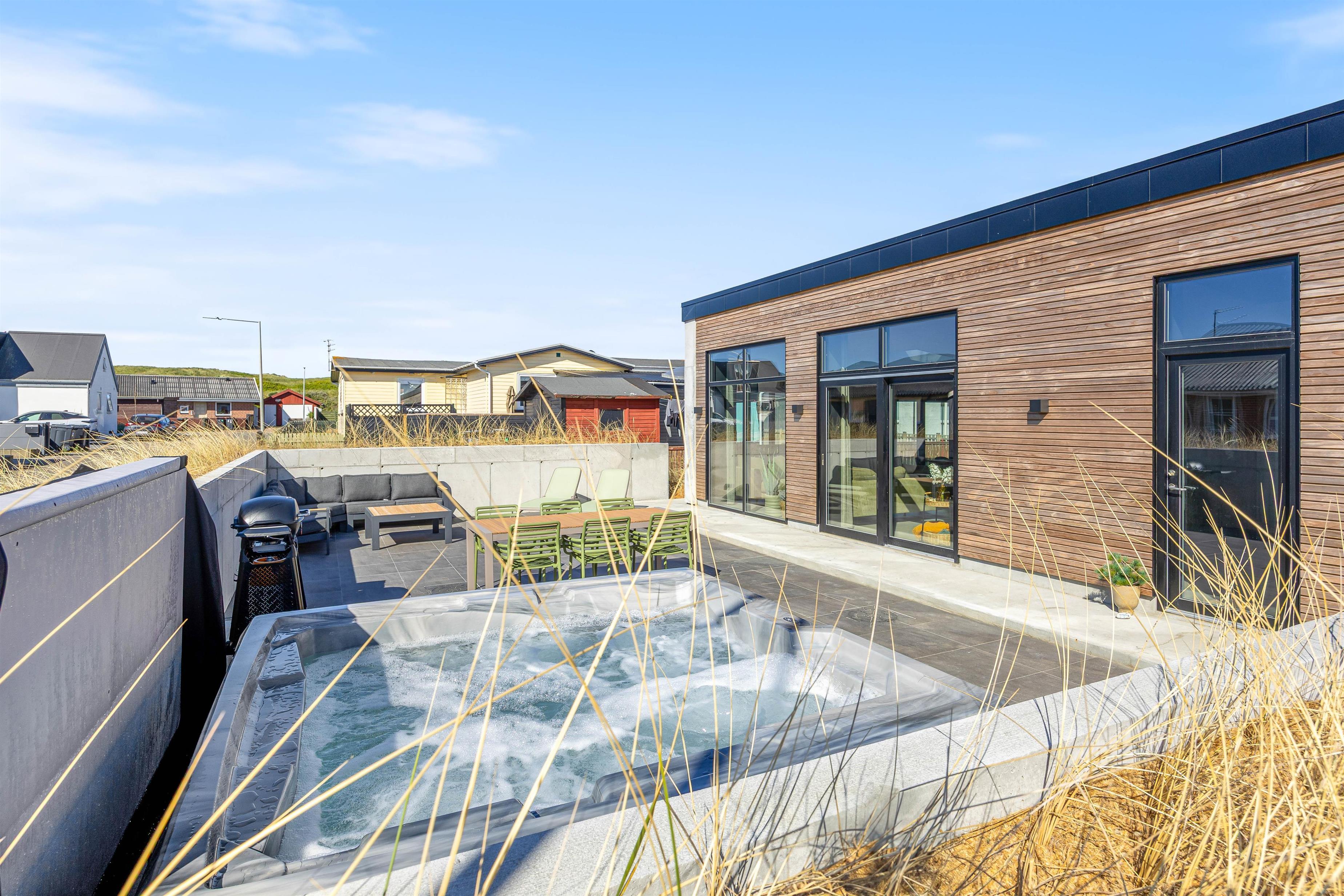 På Vesterhavsvej 8 i hjertet af Hvide Sande, finder I dette flotte og rummelige sommerhus kun 250 meter fra det brusende Vesterhav. Feriehuset, der er opført i 2025, er udstyret med alt, man kunne tænke sig og kun huse 6 feriegæster og deres firbenede venner. På terrassen finder I udespaen, og med den centrale placering er både stranden og indkøb blot få minutters gang fra døren.