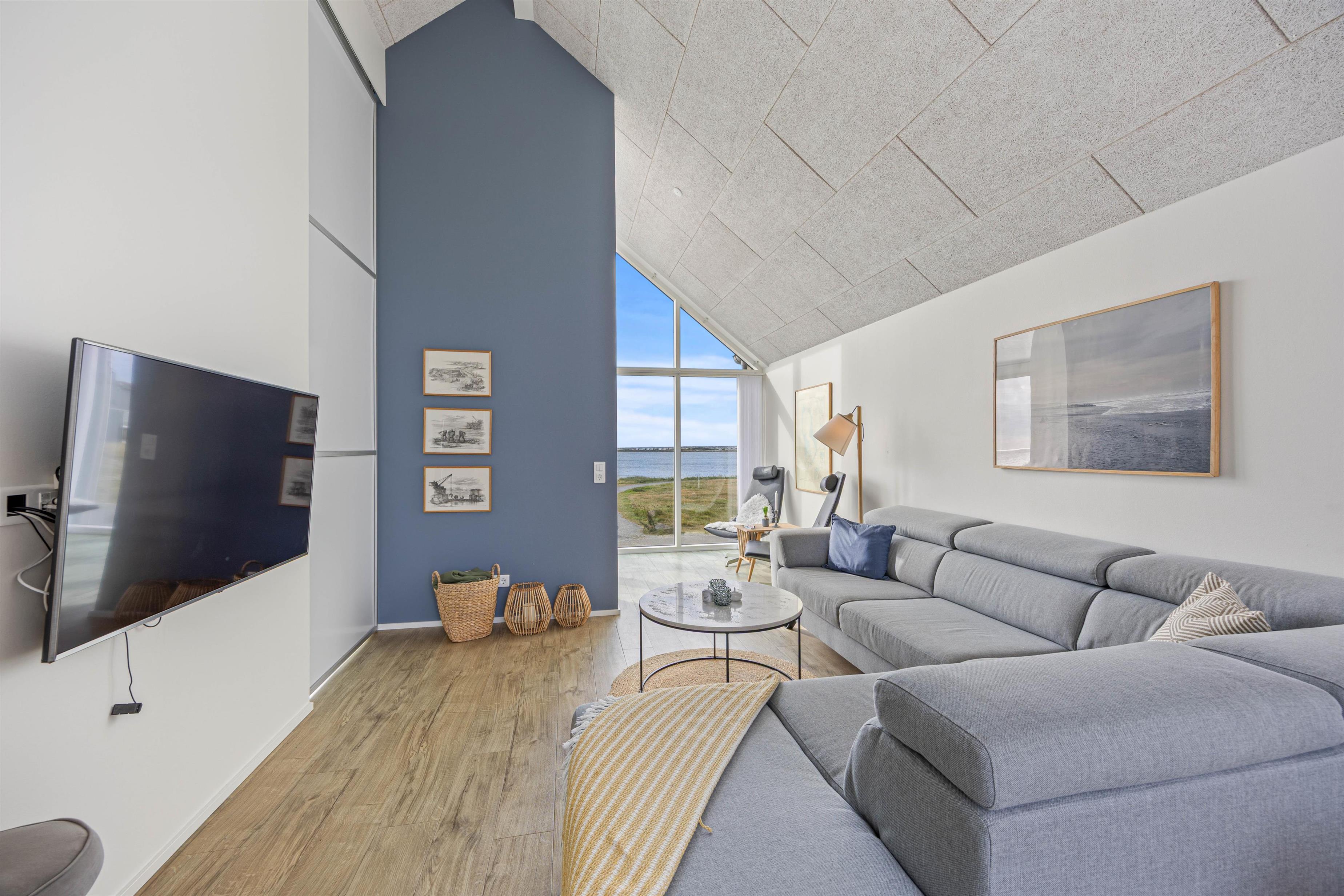 Kom med indenfor - vi byder velkommen på Langsand 100, som har 96 m² (fordelt på to etager) og plads til 6 personer. Indretningen er moderne med lyse farver bl.a. i soverummene og store vinduespartier, der inviterer de naturskønne omgivelser indenfor og giver et fantastisk lysindfald - og så kan I stå op til de smukkeste solopgange.