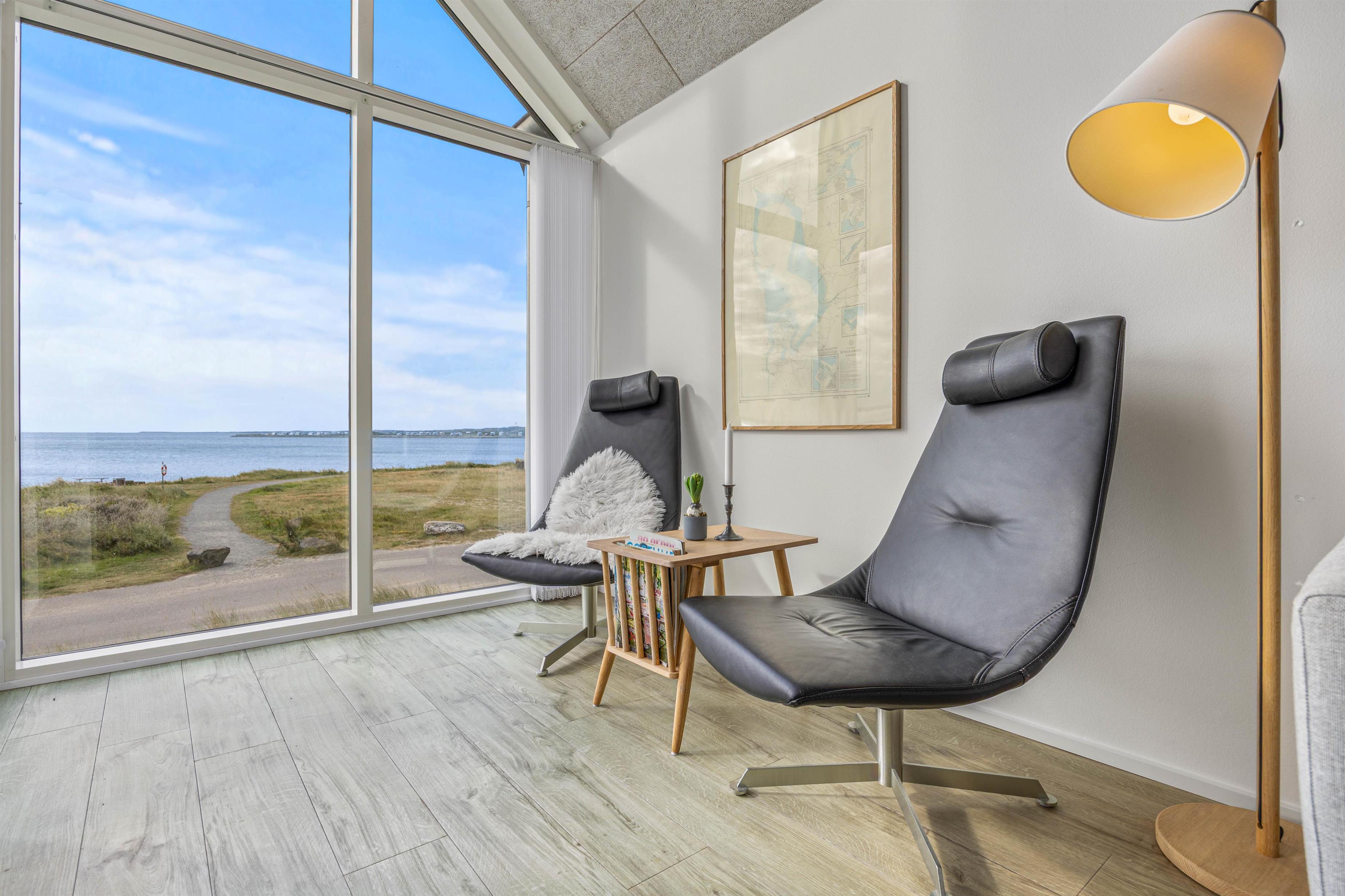 Ferielejligheden er udstyret med 2 badeværelser med gulvvarme, så I slipper for lange toiletkøer og kolde fødder om morgenen. Med en hurtig og stabil internetforbindelse kan I alle være online på ferien og streame film på de medbragte iPad's og computere. Her er desuden placeret 2 gode lænestole, i en dejlig hyggekrog med udsigt udover fjorden. Her kan man læne sig tilbage og nyde ferieroen sænke sig.