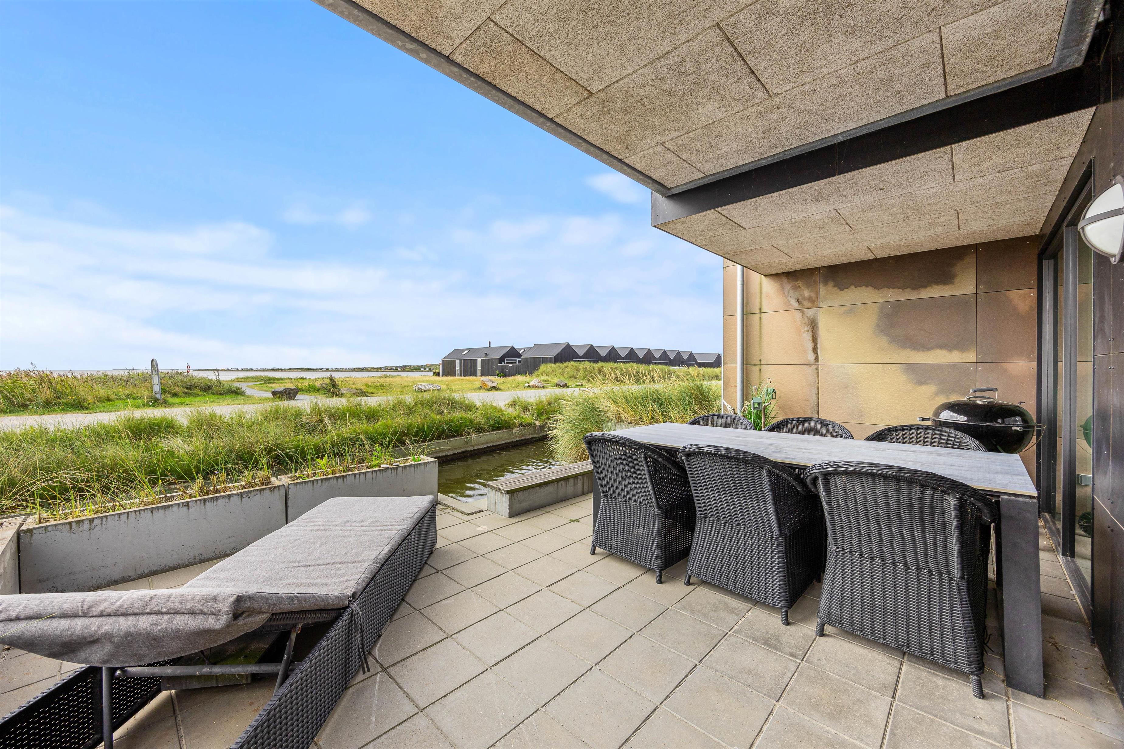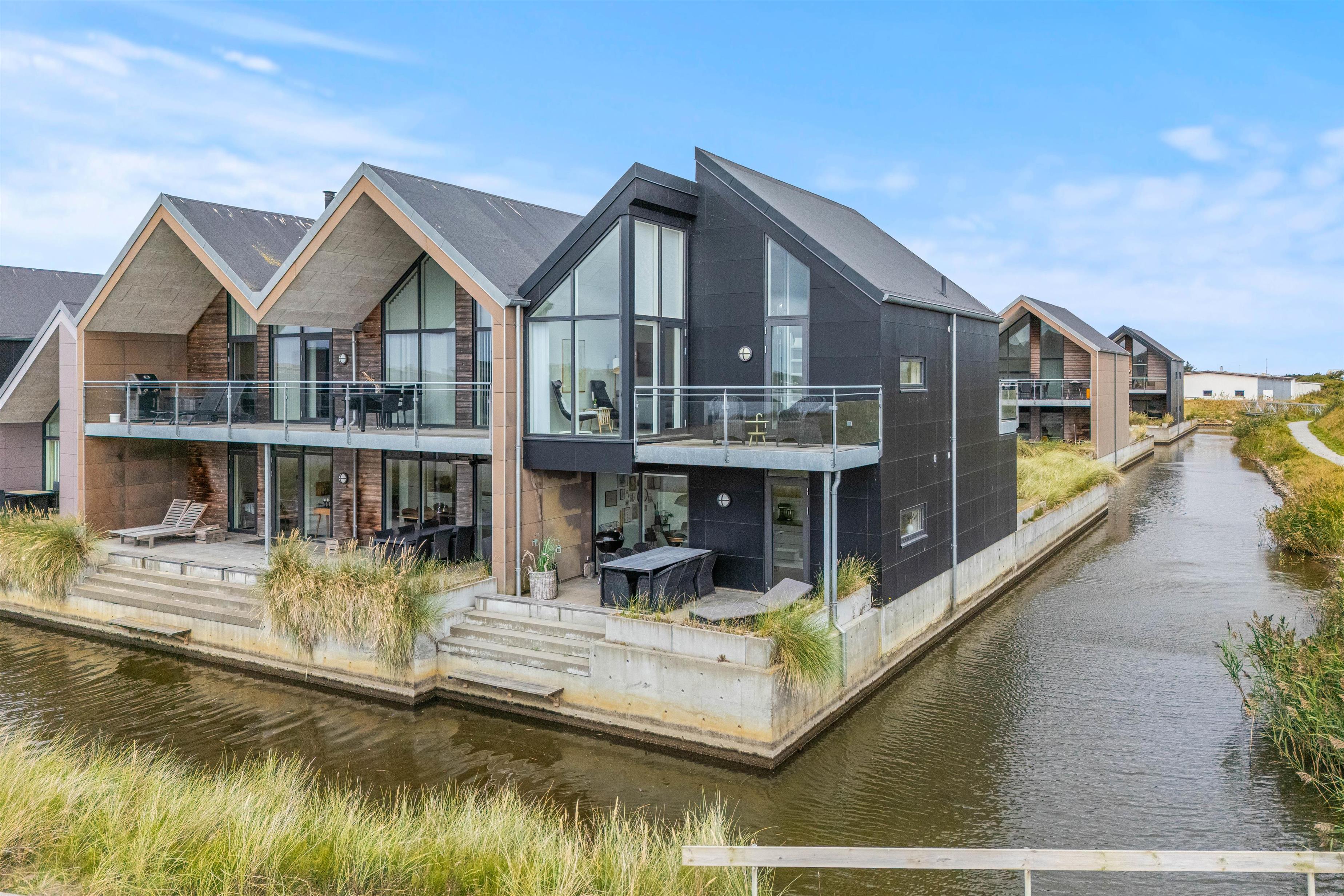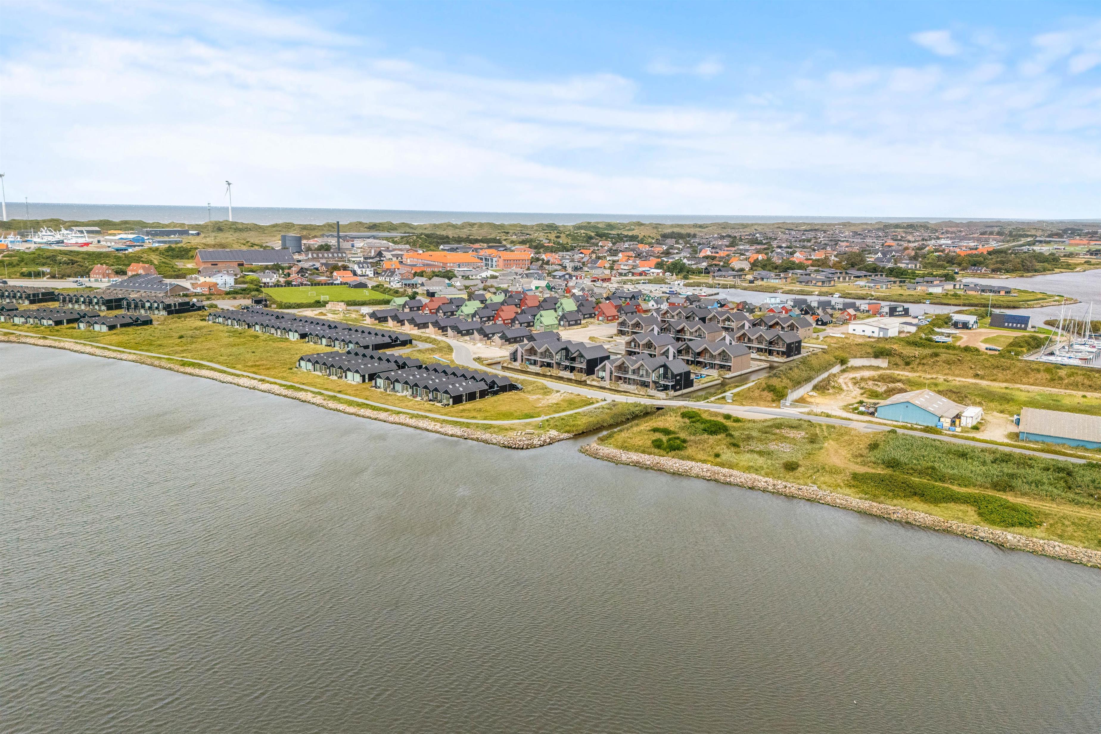 Denne flotte, nybyggede (2019) ferielejlighed på fjordsiden i Hvide Sande, er en sand perle. Ferieboligen ligger i et helt nyanlagt ferieområde ved Ringkøbing Fjord, og der er en fantastisk udsigt fra alle terrasserne. Hvide Sandes charmerende centrum ligger 10 minutters gang væk!