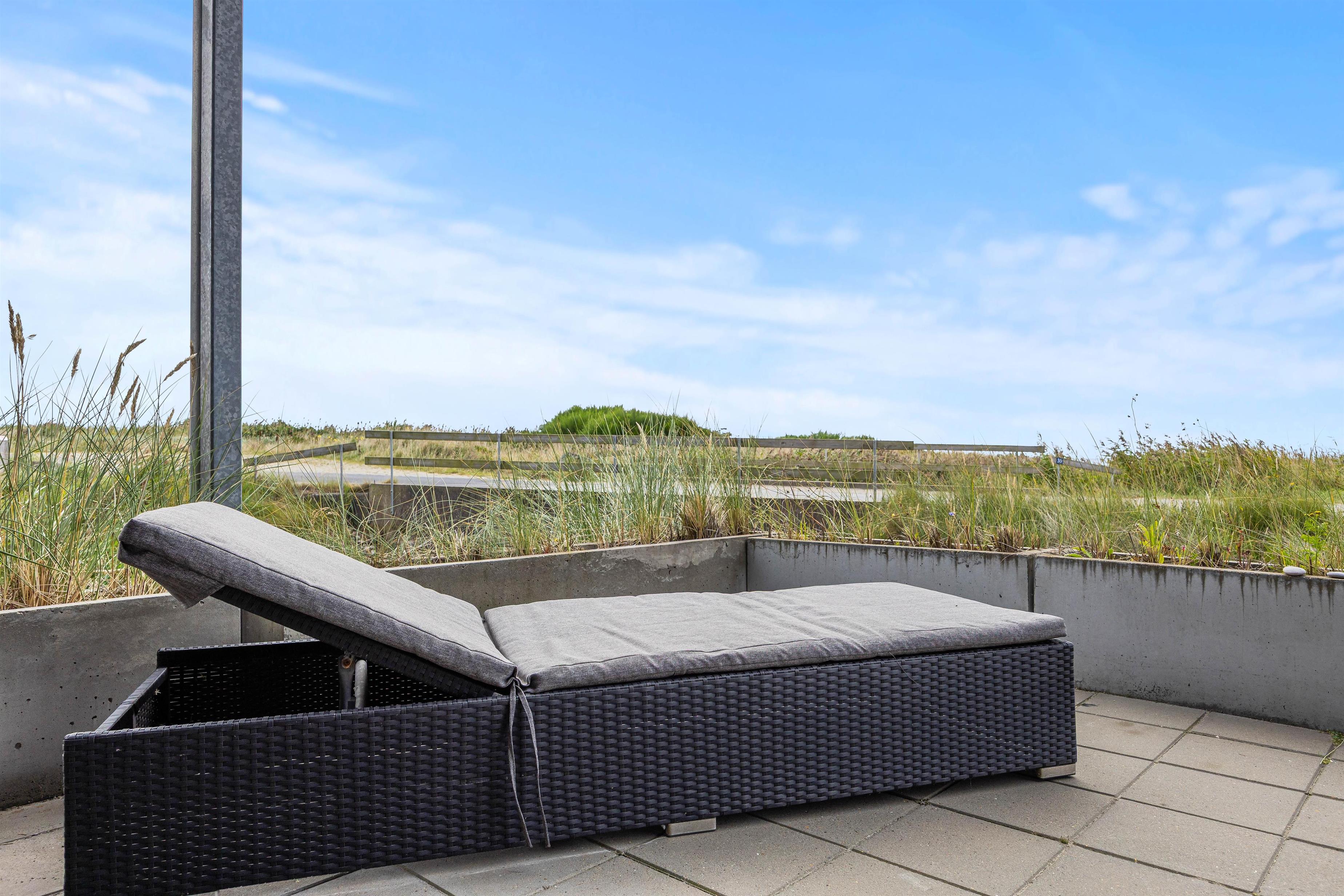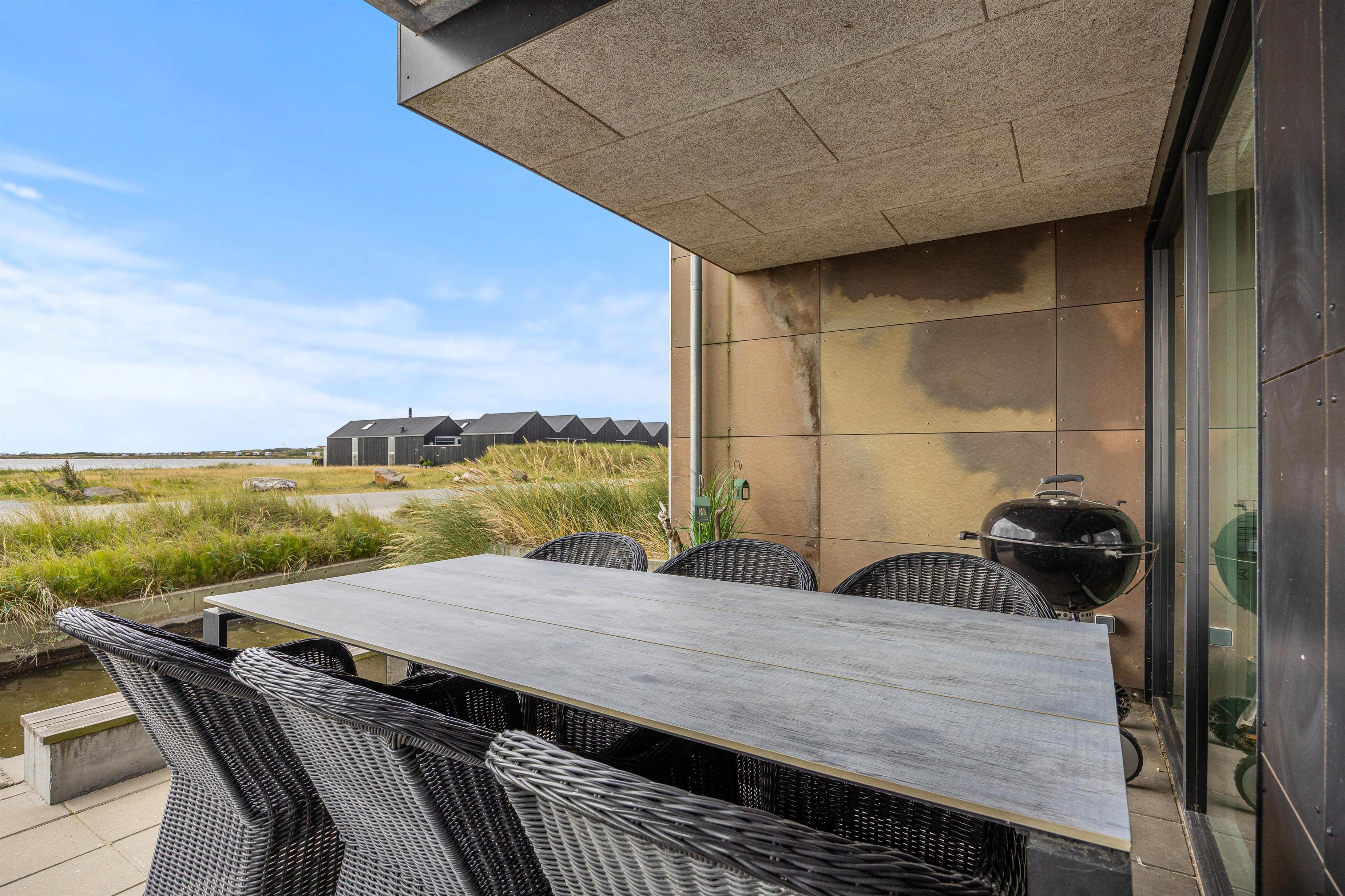 De skønne sommerdage skal selvfølgelig også bruges udenfor, og I får intet mindre end 4 fantastiske terrasser. Sæt jer godt til rette i de gode havemøbler og nyd solens stråler og den smukke udsigt hen over vejen til det naturskønne ferieområde ved Langsand. Når dagen går på hæld, kan I tænde op i grillen og spise en lækker middag i den gyldne aftensol.