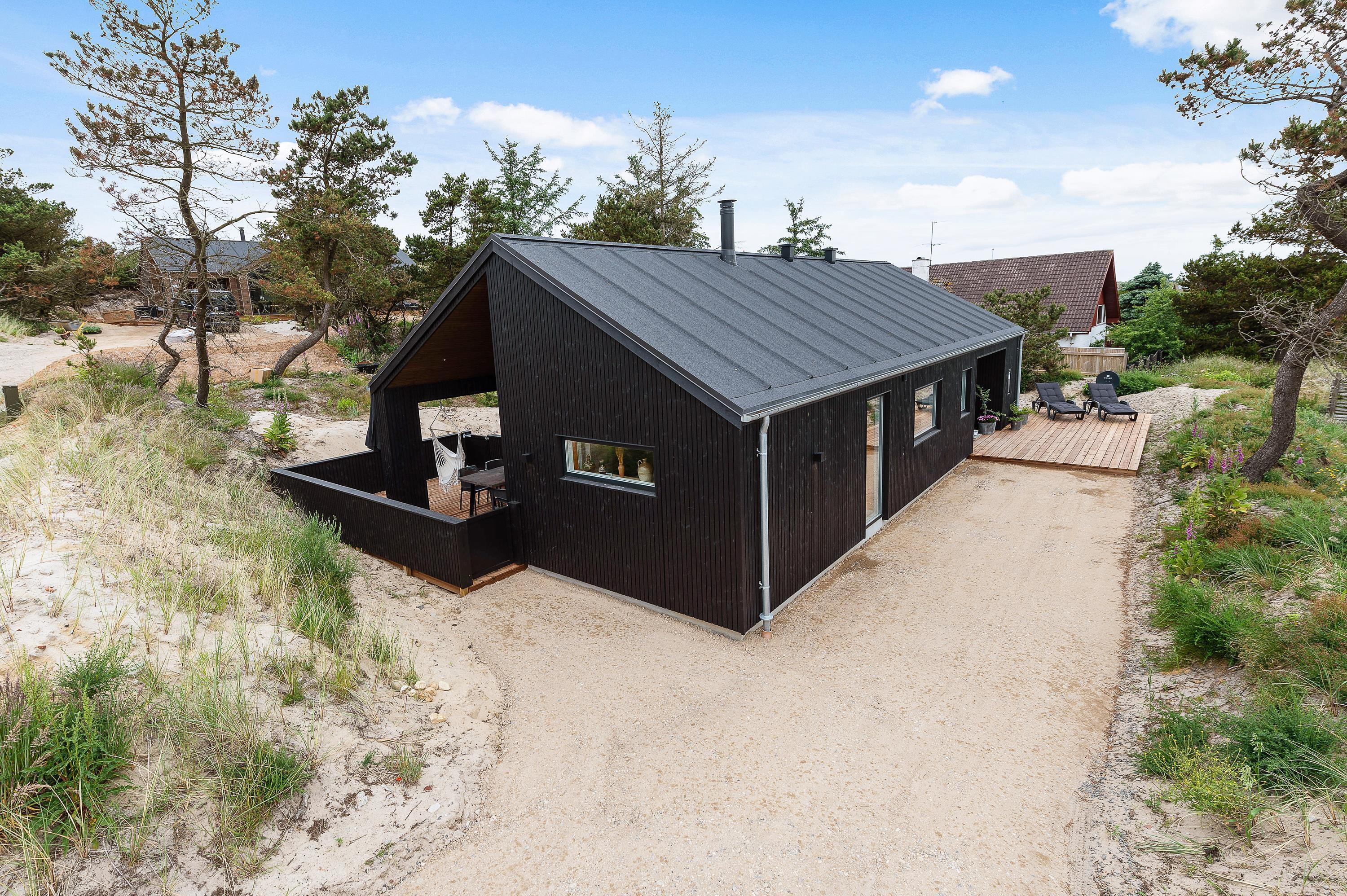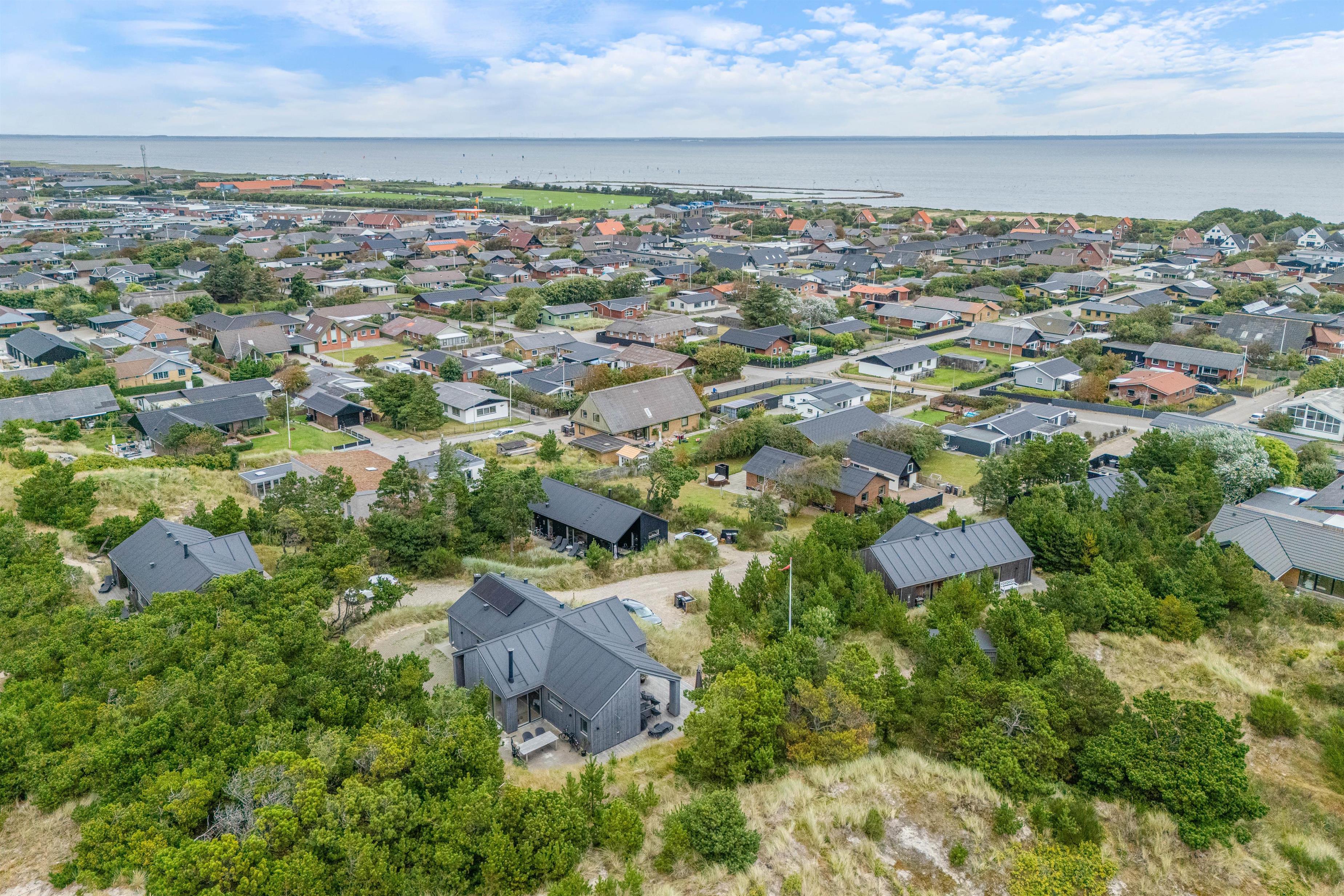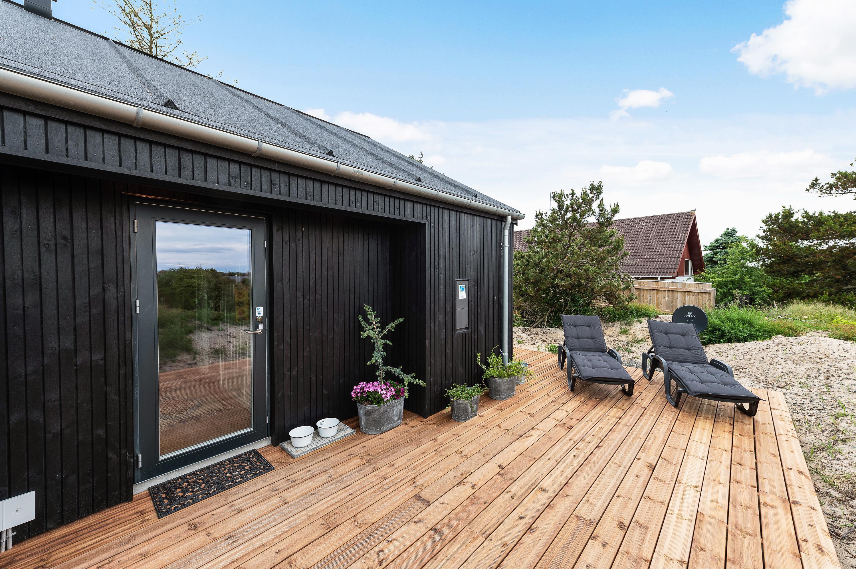 Denne skønne ”sommerdrøm” i udkanten af Hvide Sande og på kanten af en klit har en dejlig østvendt terrasse, hvor I kan nyde morgenkaffen, mens I nyder solopgangen over Ringkøbing fjord.