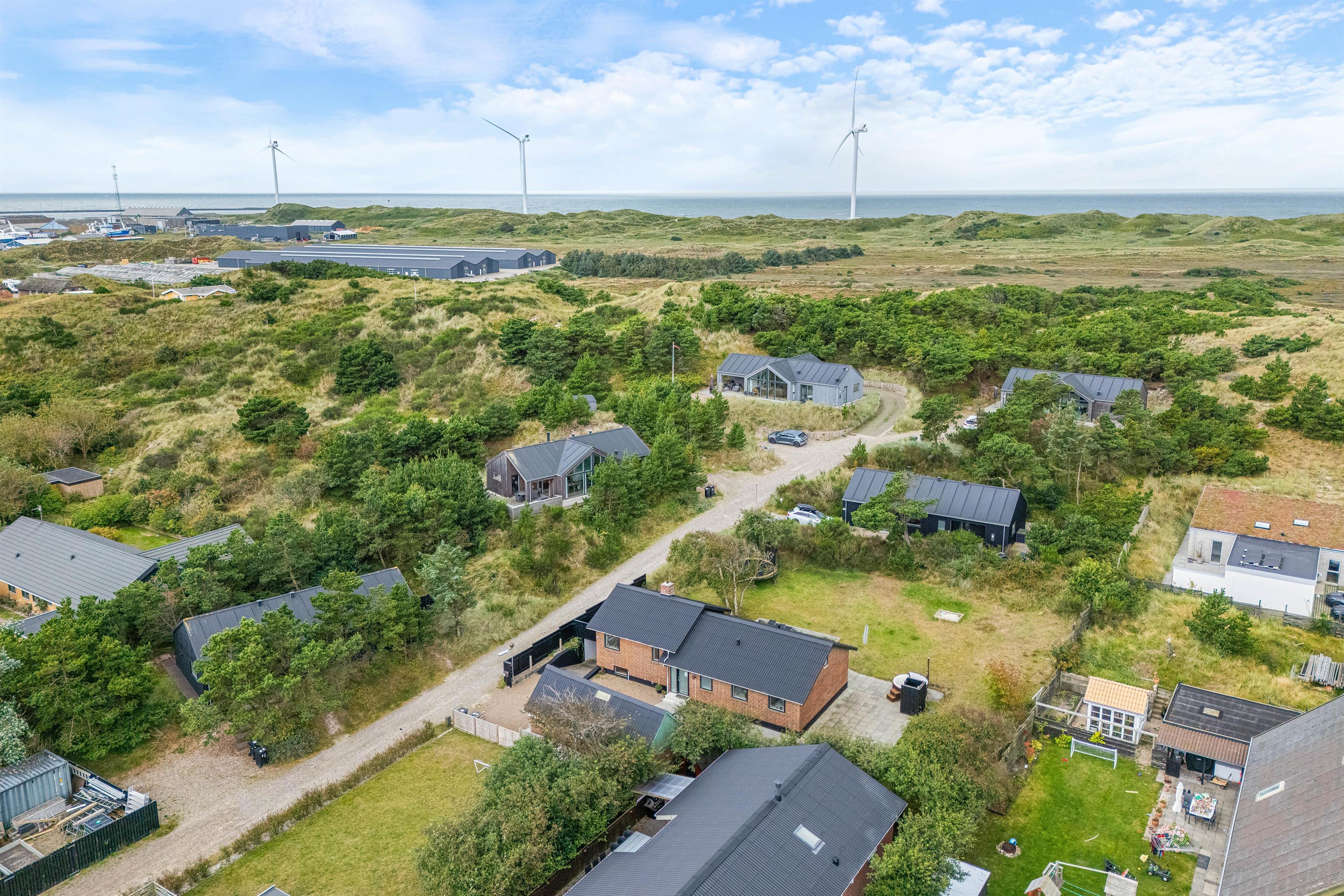 I bor her i midten af byen, men dejligt fredeligt ud til heden og klitterne - og havet. Lige nedenfor bakken ligger Hvide Sande by med ca. et kvarters gang til havnen, som er byens hjerte. Her mærker I rigtigt pulsen i byen; I kan se fiskekutterne komme ind, opleve en fiskeriauktion eller bare nyde livet på havnen, evt. fra en cafe eller restaurant.