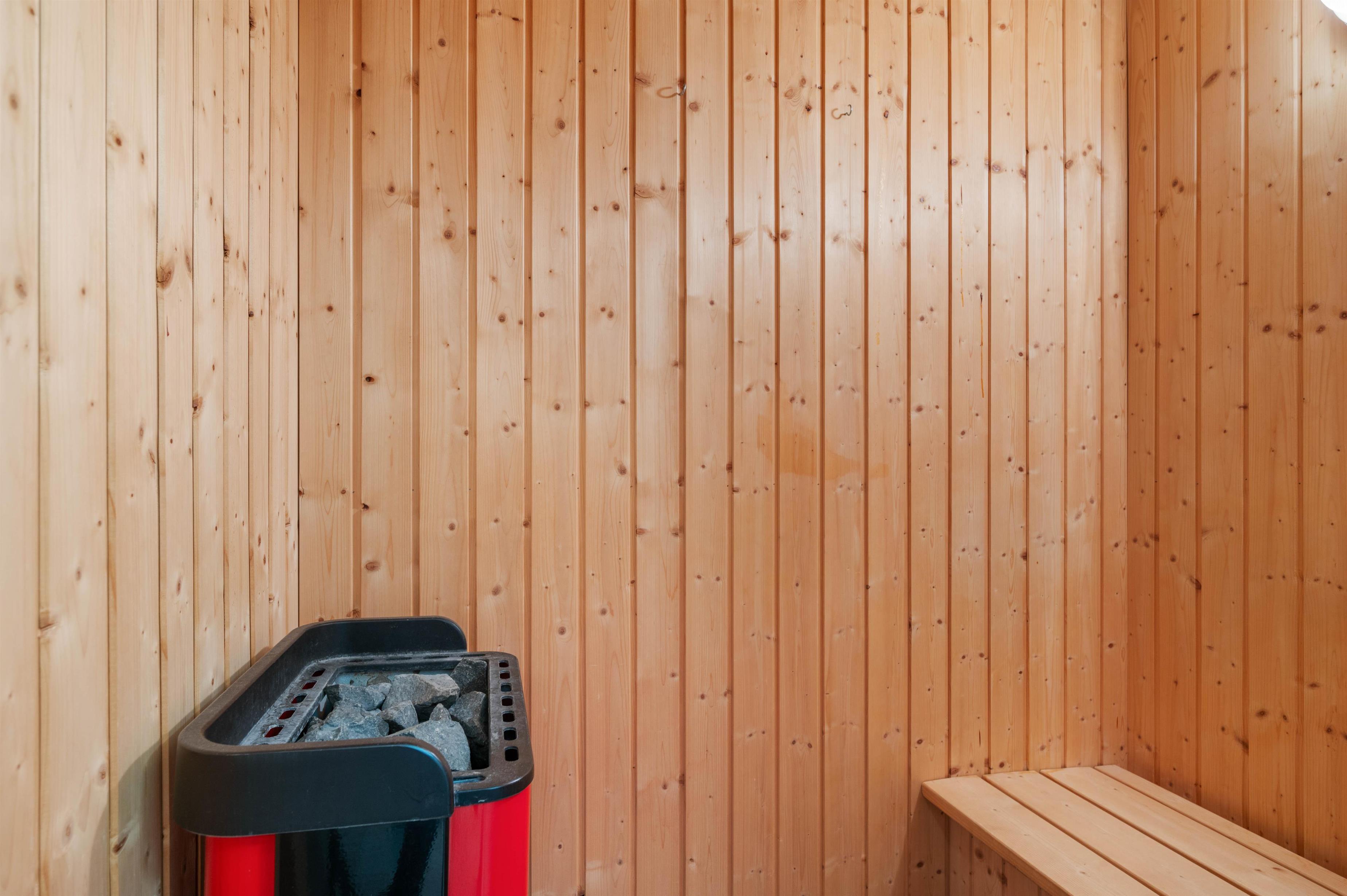 Der er lagt stor vægt på, at I skal kunne slappe af og nyde ferietiden. På øverste etage står brændeovnen klar til at sprede feriestemning og varme, og nedenunder kan I nyde godt af lidt ekstra wellness i saunaen og spabadet.