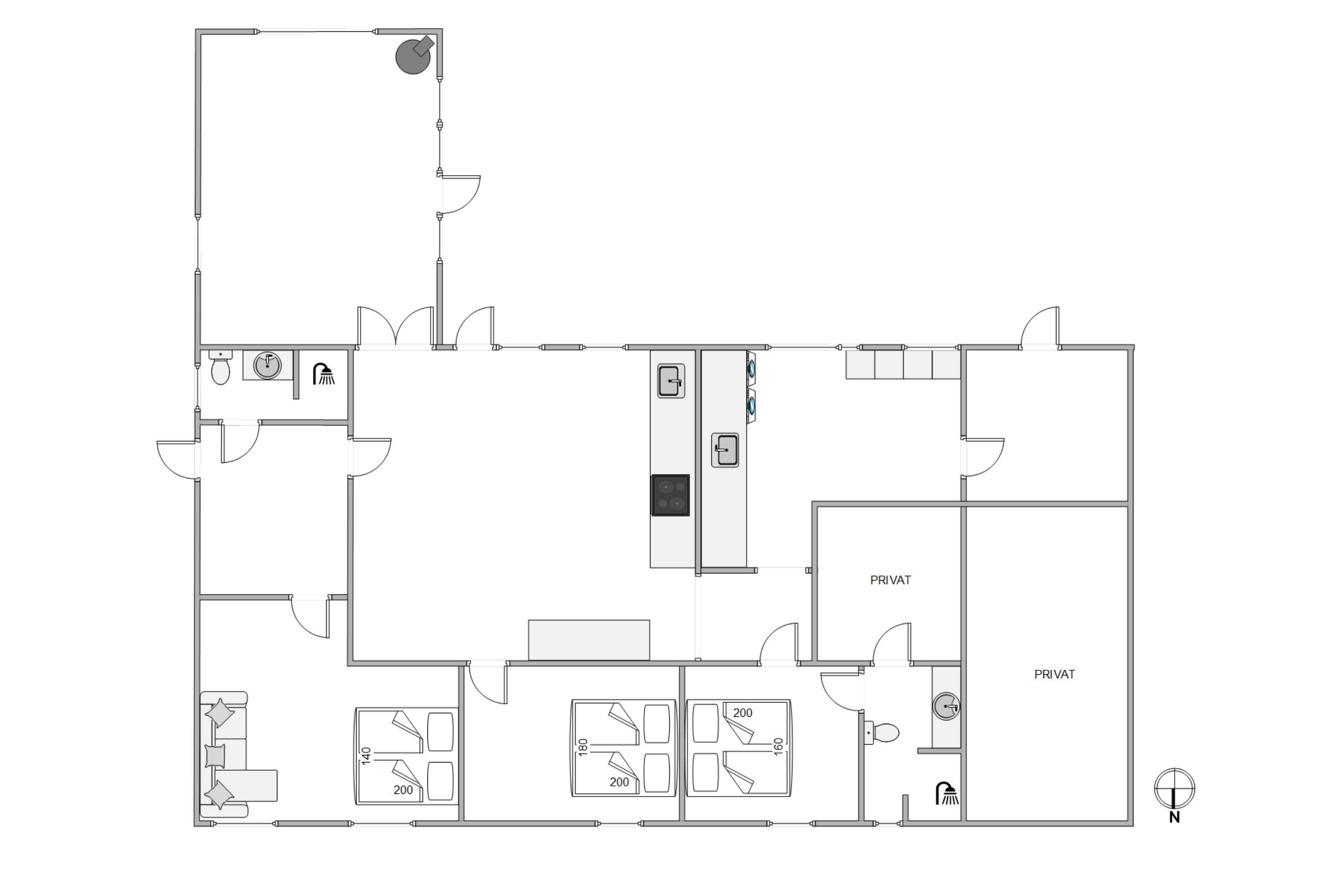 Kaniavej 37 har et stort boligareal på 152m², som er godt udnyttet. Feriehuset er i ét plan, hvilket bestemt er meget behageligt for en børnefamilie. I vil helt sikkert føle jer hjemme her fra første øjeblik, da dette stenbyggede feriehus, ikke blot byder på en hyggelig atmosfære, men også en masse velvære. Samlepunktet her er det smukke køkken, som har alt, hvad du kender hjemmefra. Ovenlysvinduet lukker masser af lys ind, så rummet fremstår meget større. I vil helt sikkert bruge meget tid her, enten med at lave mad sammen eller nyde en hyggelig aften med spil ved det store spisebord.
