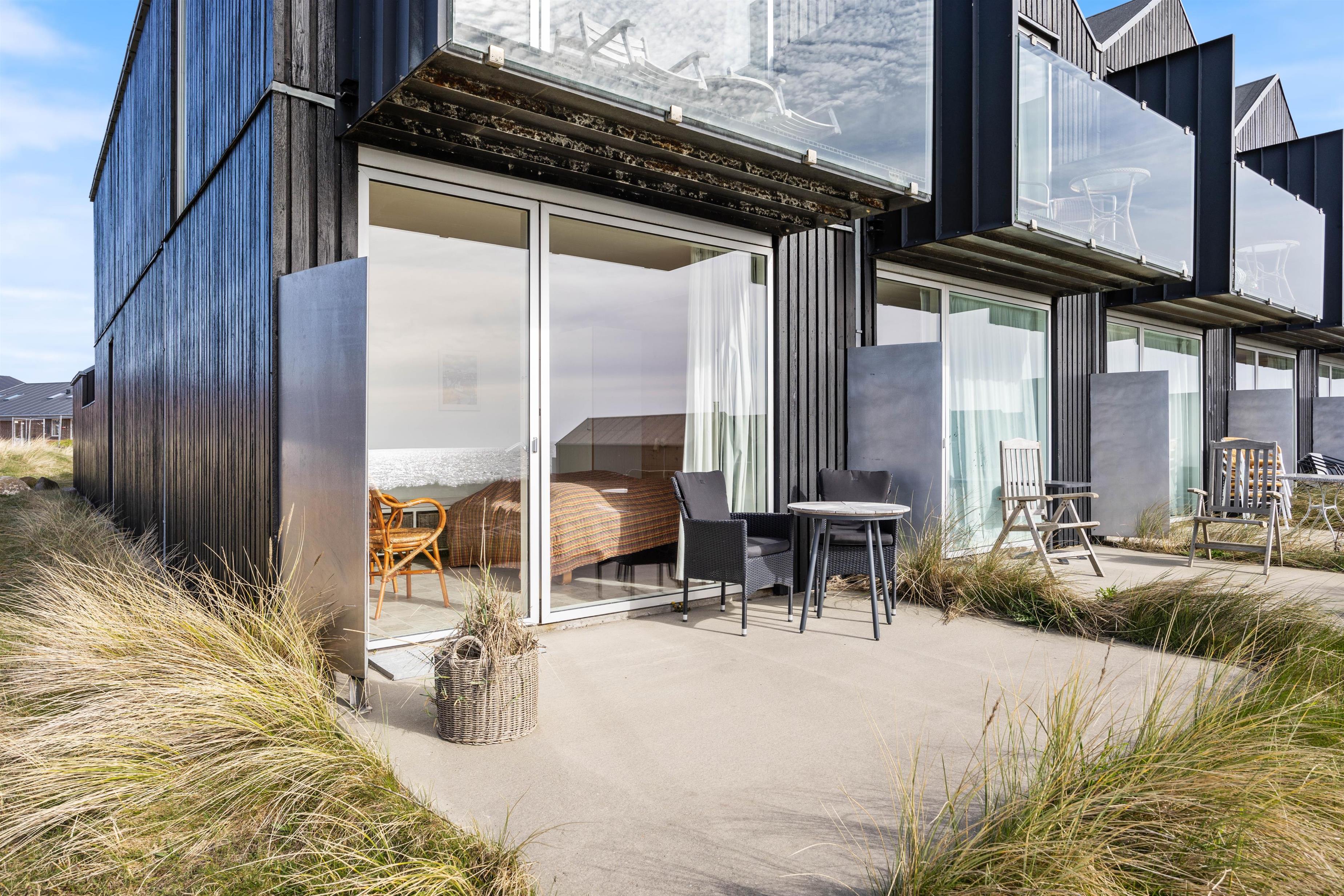 Lejligheden er den yderste i lejlighedskomplekset. Den gode beliggenhed betyder, at du fra ferielejligheden har en smuk udsigt over Ringkøbing Fjord fra stuen og det ene værelse med dobbeltseng. En udsigt du kan nyde, mens du får morgenmad på den sydlige terrasse, nyder solens varme i liggestolen eller langsom vågner fra sengen. I ferielejligheden findes to værelser, og på begge værelser er en dobbeltseng – perfekt til den lille familie eller to vennepar, der gerne vil tilbringe en uge sammen og slappe af! På badeværelset finder I sauna og spabad, hvor I kan få slappet af og ladet batterierne op.
