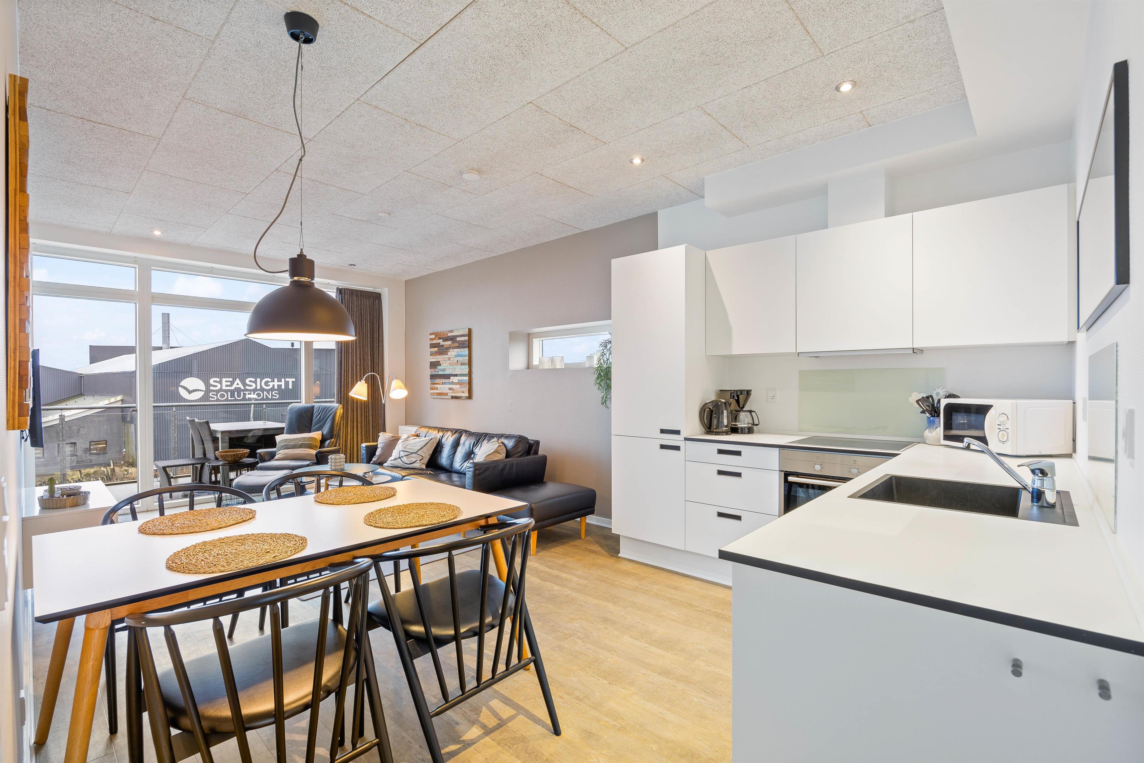 Denne moderne ferielejlighed i hjertet af Hvide Sande er et oplagt valg til jer, der gerne vil holde ferie tæt på både hav og by. Her kommer I til at bo i en flot og velindrettet ferielejlighed med udsigt til den charmerende havn, og med få minutters gang til både centrum og Vesterhavet. Strømforbruget er tilmed inkluderet i lejeprisen!