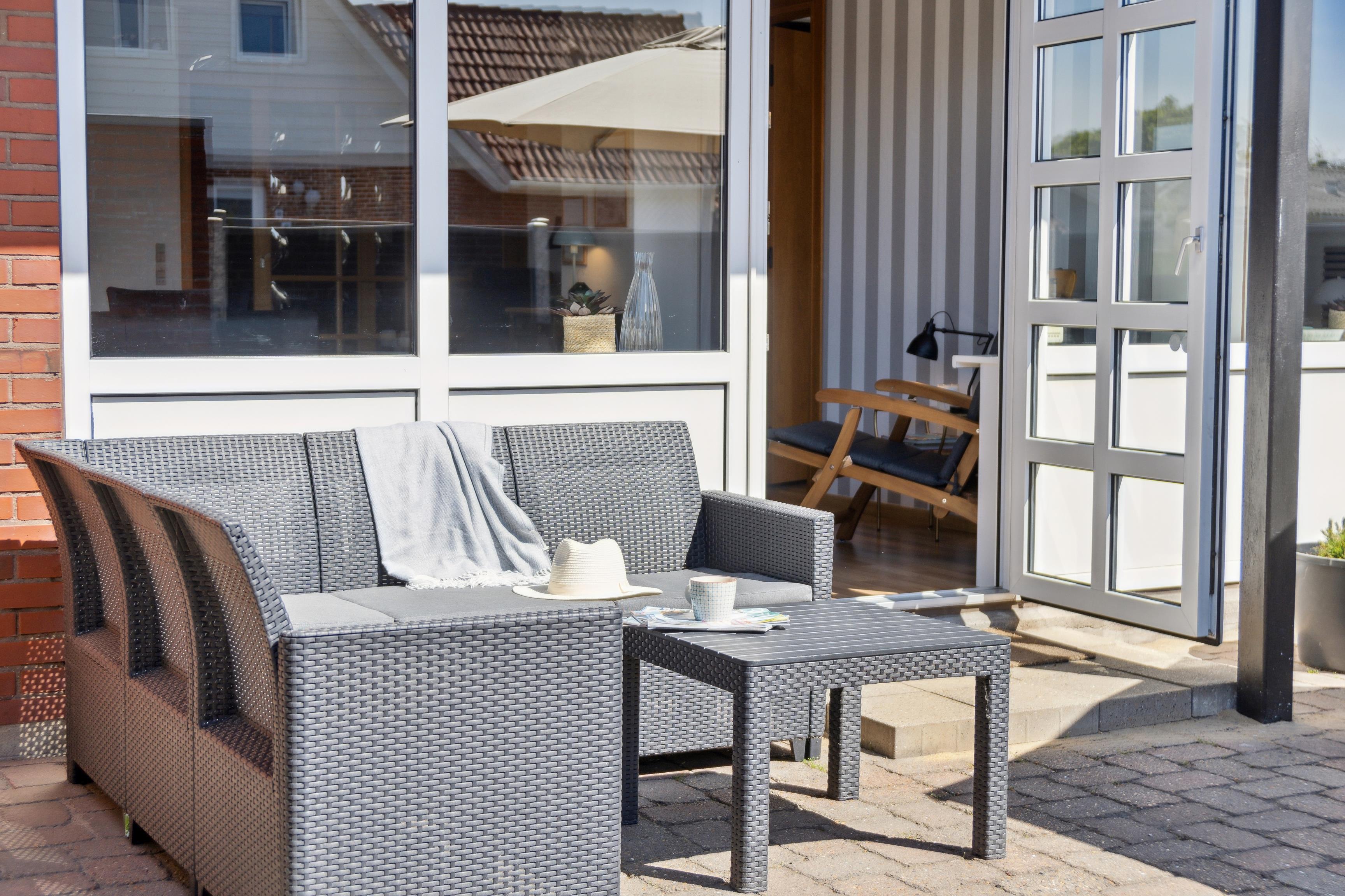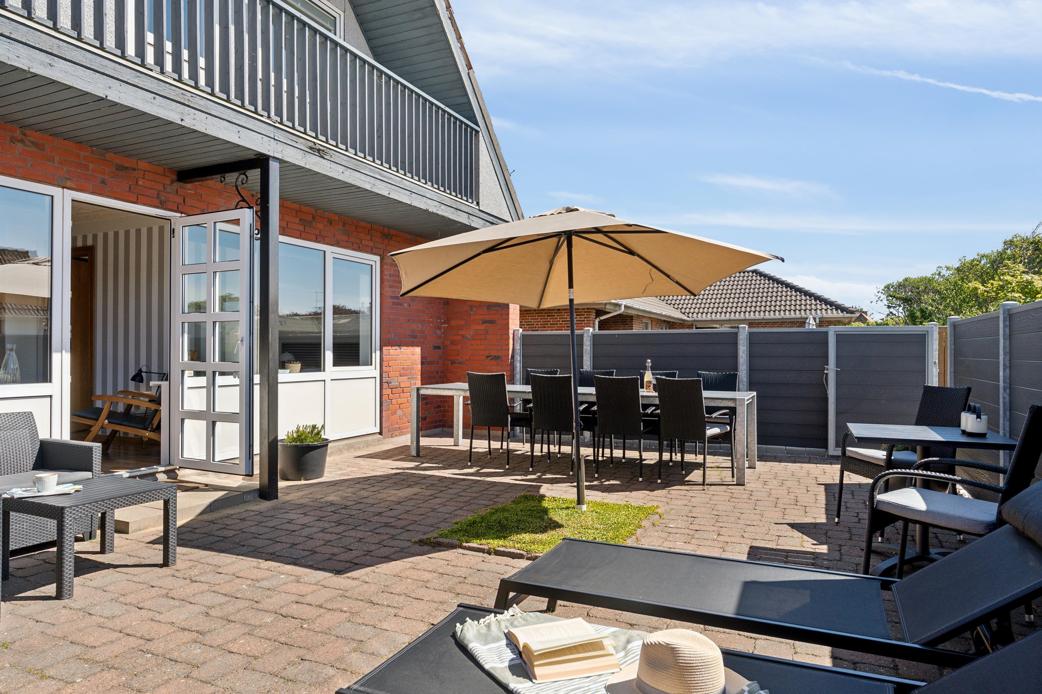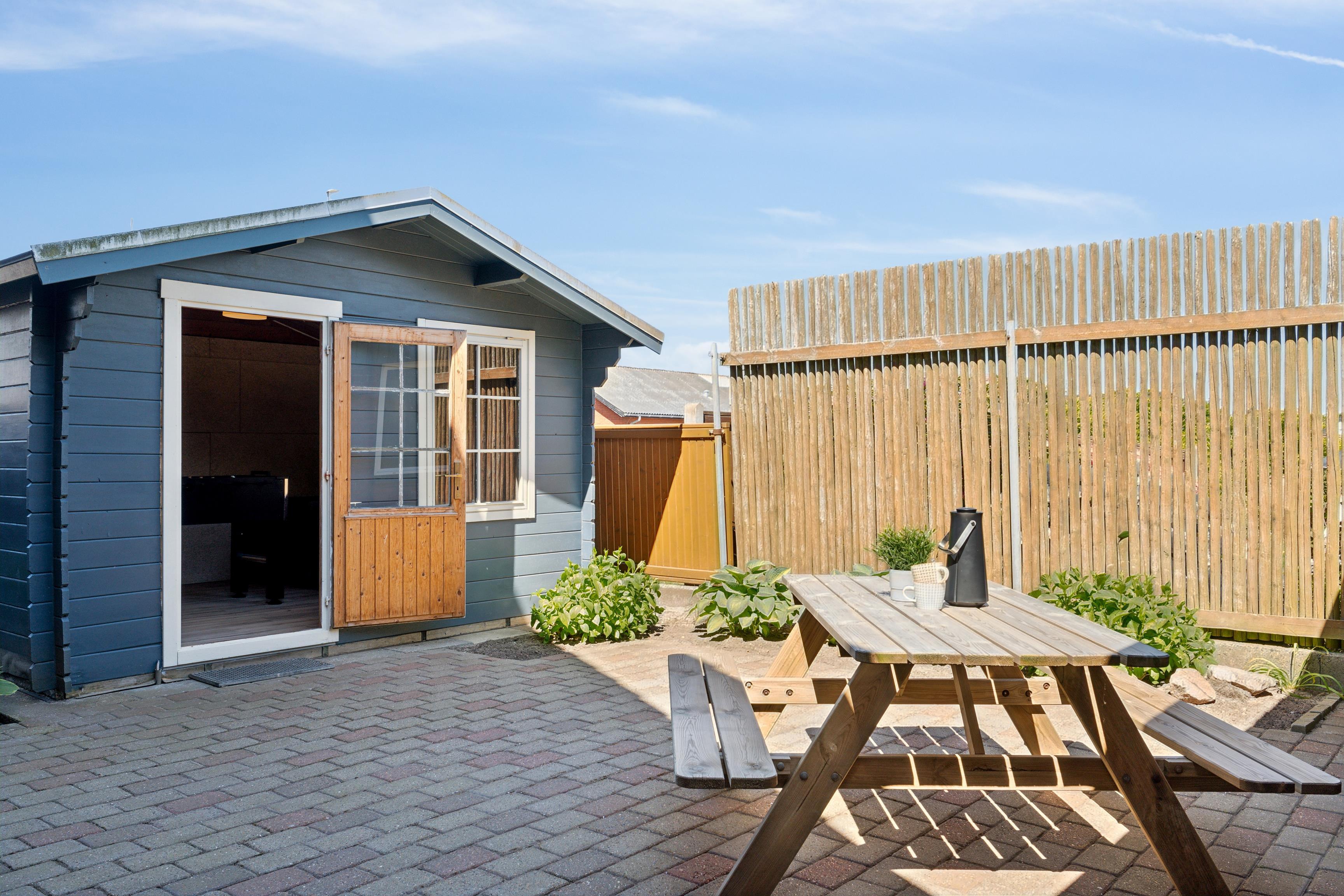Den nordvestvendte gårdhave møder I annekset, hvor bordfodbold og dart kan udfordre jer til en ferie dyst. Garage til fri afbenyttelse, hvor cykler og andet udstyr kan stå aflåst. God parkeringsforhold på grunden.