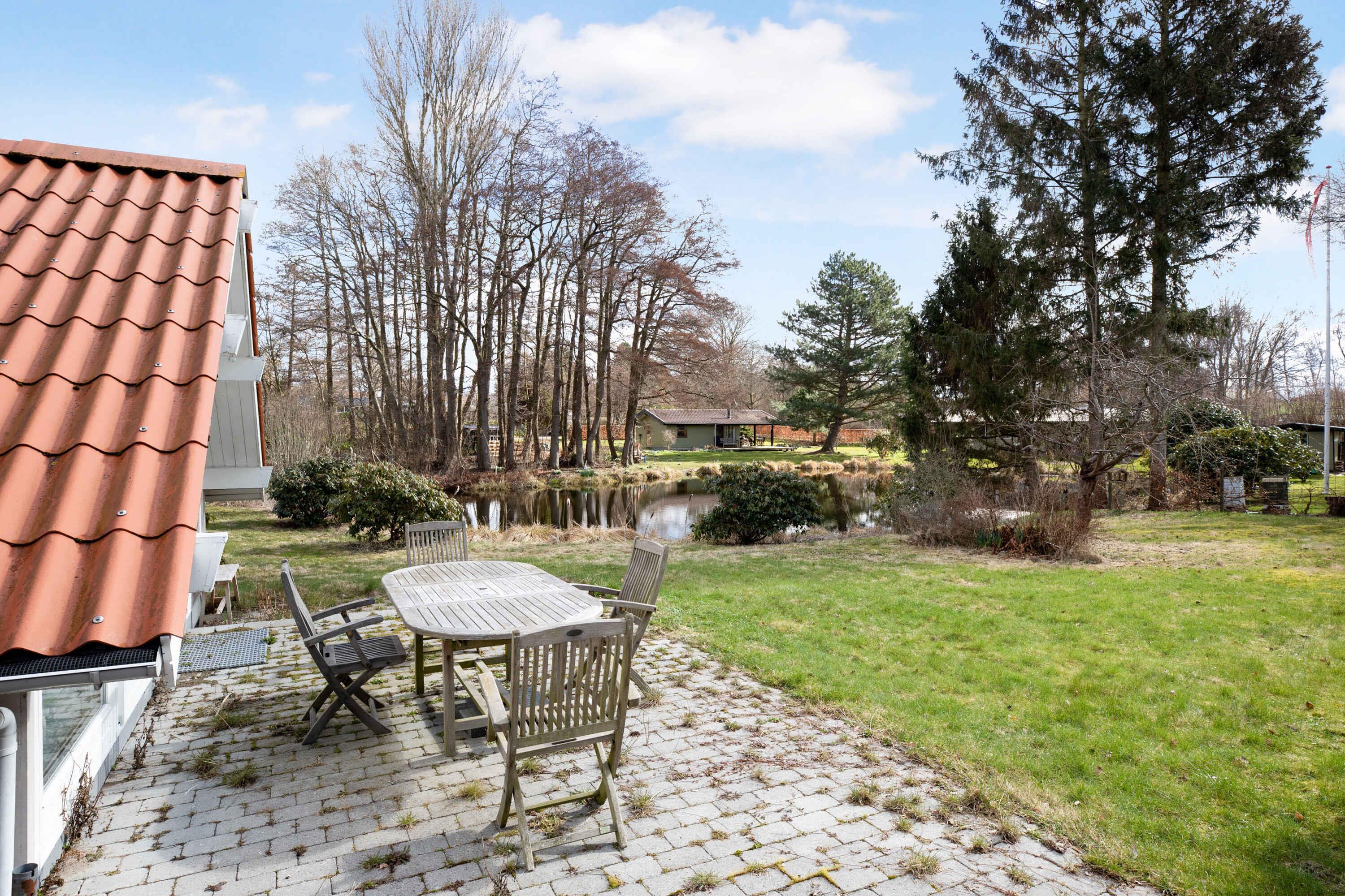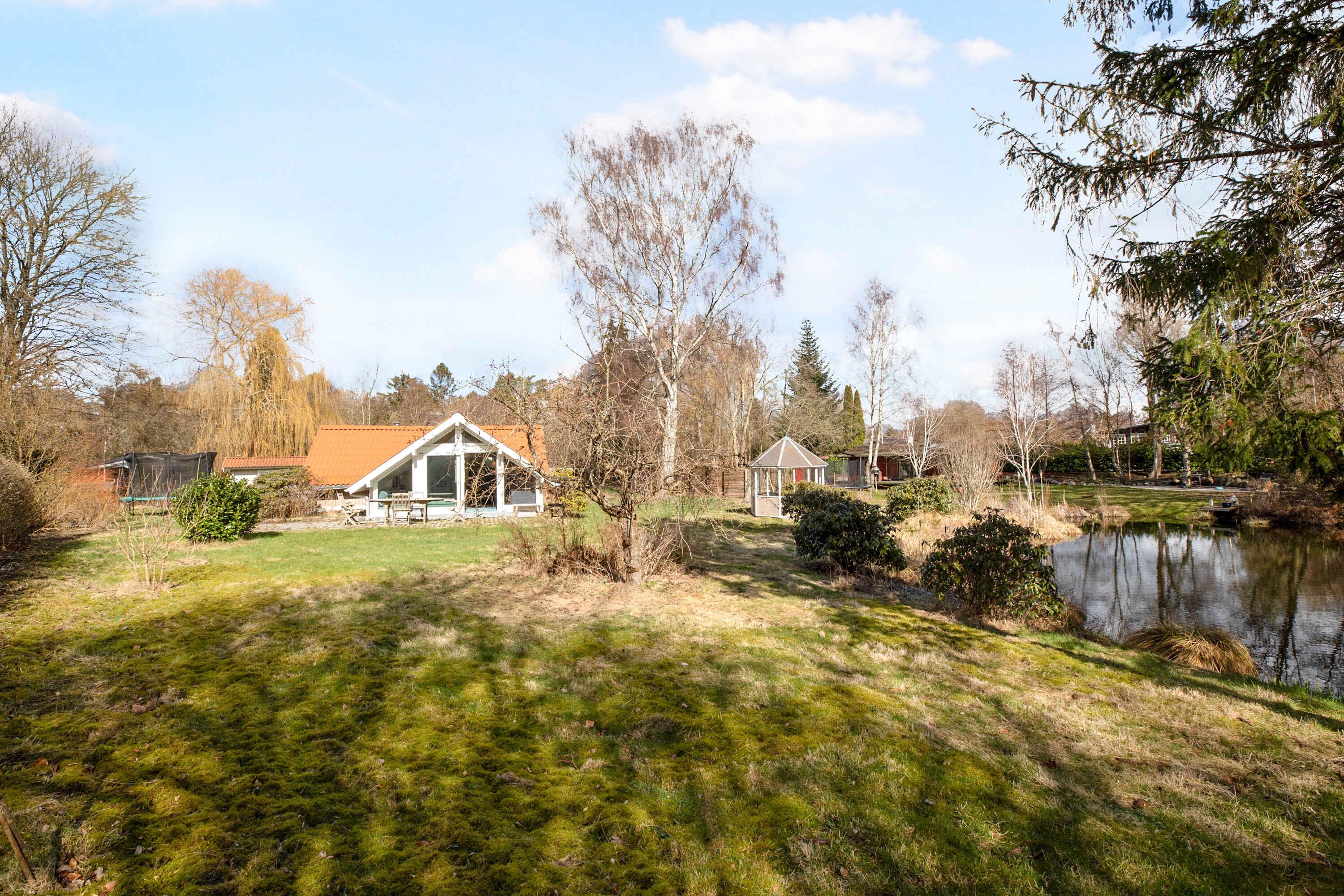 Fredfyldt sommerhus med egen sø, pavillon, terrasser og fem sovepladser. Der er fibernet, brændeovn og kun 600m til vandet, som er meget børnevenligt, med lavt vand langt ud.