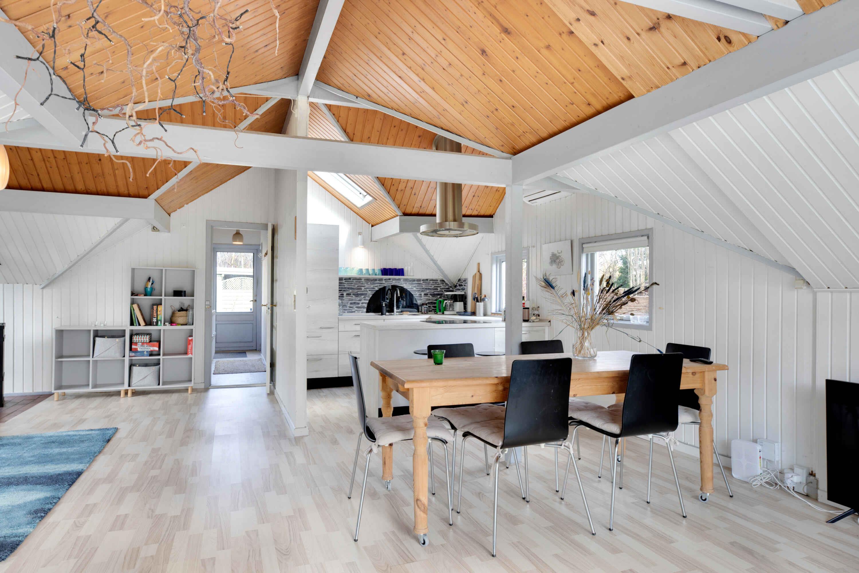 Slap af med hele familien i denne fredfyldte perle af et sommerhus. Her er der mulighed for at komme helt ned i gear. Nyd morgenmaden på terrassen eller i pavillonen med udsigt til søen. Der er mulighed for at nyde aftensolen på den anden terrasse, så aftnerne ude kan blive lange og ungerne kan frit lege i den store have med trampolin. Der er fibernet, brændeovn og kun 600m til vandet, som er meget børnevenligt, med lavt vand langt ud. Boligen: Super hyggeligt træhus med ægte sommerhusstemning. Nyt køkken, med spiseplads til 6 personer. Fra køkkenet er der åben forbindelse til stuen, som har udgang til begge terrasser. Stuen har stort vindue, der vender mod den store terrasse og har udsigt ud over den store have og søen. Der er brændeovn i stuen, som hurtigt kan varme hele huset op i den kolde tid. Man kan bruge huset hele året. Der er et lille værelse med køje-udtræksseng og soveplads til 4 personer og anneks med dobbeltseng. I alt plads til 5 personer. Badeværelset har et charmerende toilet med bruseplads. Der er stort fjernsyn overfor sofaen og fibernet med 1000/1000 mbit, (pr 1/1-23) så der kan sagtens streames på egne devises og derfor kan man også bruge huset i forbindelse med arbejde. Udendørs: Haven støder op til tre andre grunde, som deler søen i midten. Der er ca. 600m til dejlig børnevenlig og hundevenlig badestrand, hvor der er lavt vand langt ud. Andre ting, der er værd at bemærke: Strømmen vil blive afregnet ved aflæsning af måler og koster 5kr. pr. KWh. Der vil ikke blive afregnet for yderligere forbrug. Brændeovnen giver utrolig dejlig varme til hele huset og der vil være fyldt op i brændekurven og det brænde kan bruges gratis. For længere ophold i den kolde tid er det en god ide selv at medbringe brænde. Det vil også være muligt at tilkøbe brænde i begrænset omfang. Forhør jer nærmere.